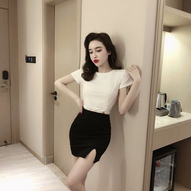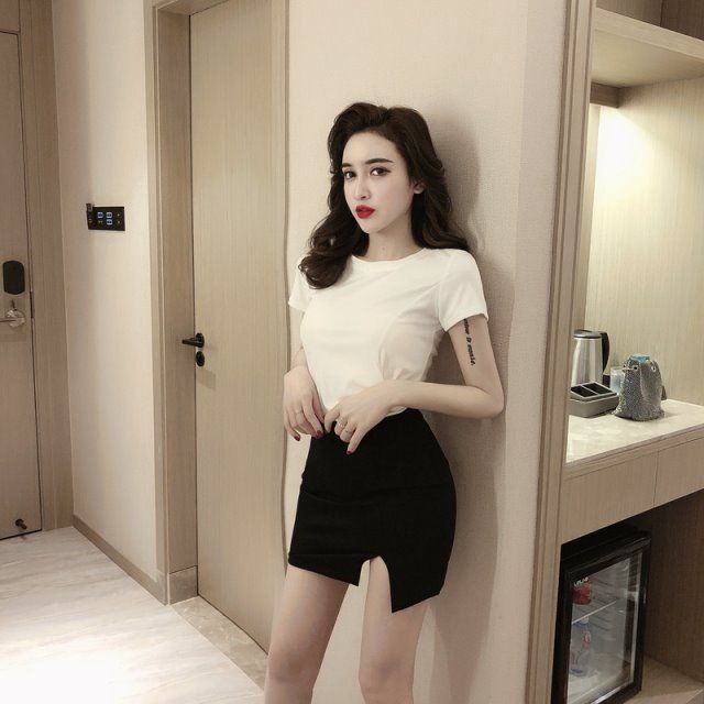 slit hip skirt sexy A-line short skirt careful hot girl skirt women's spring and autumn new tight black