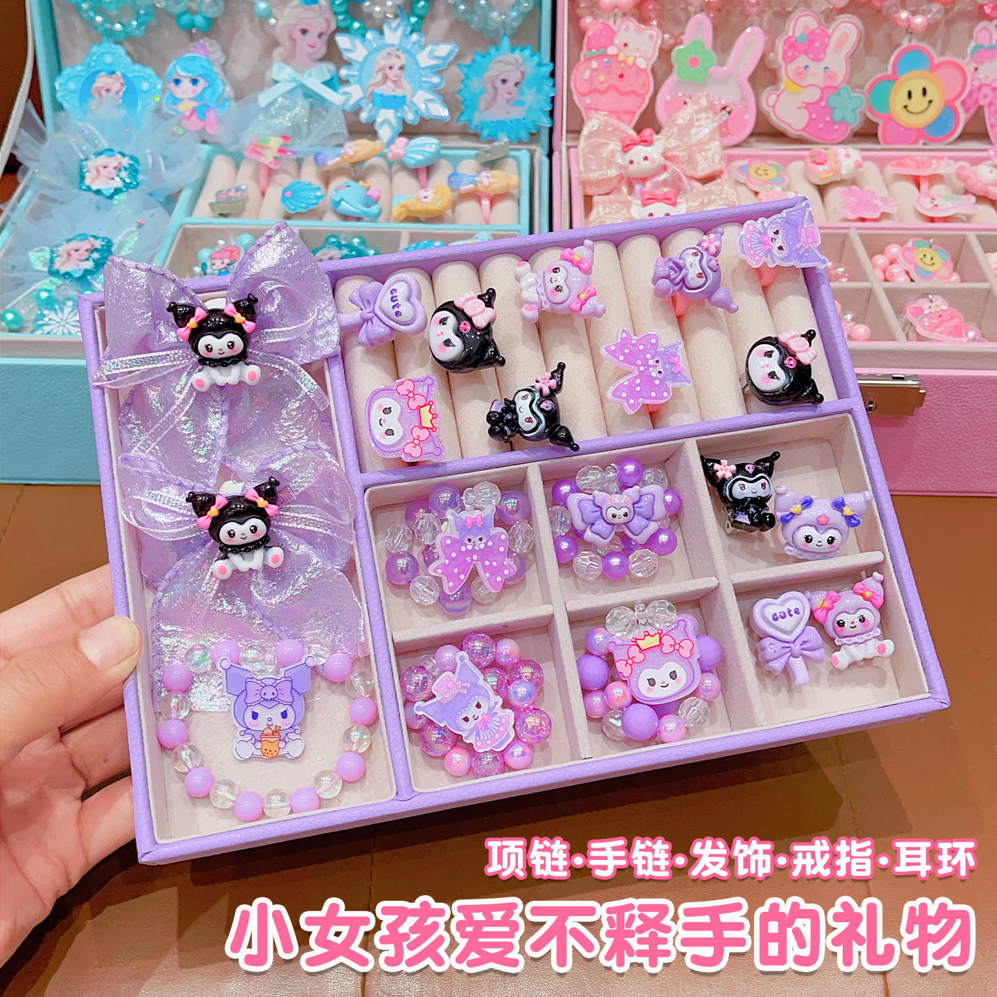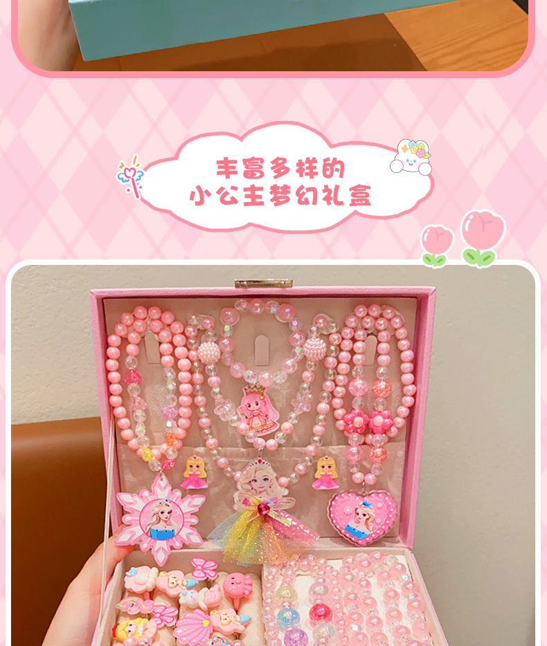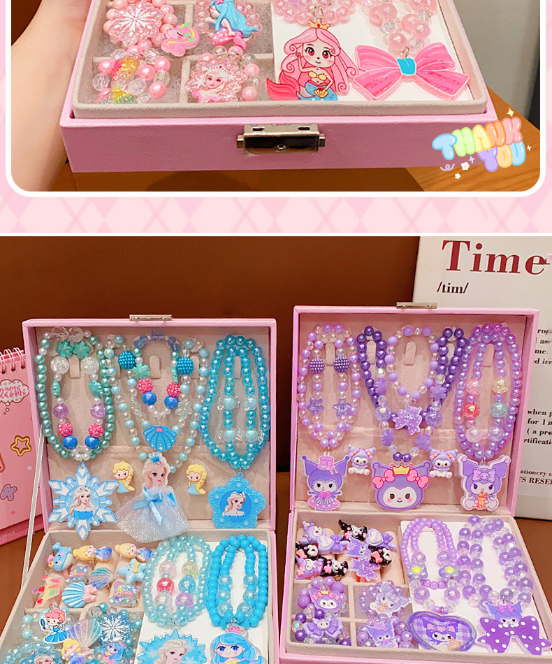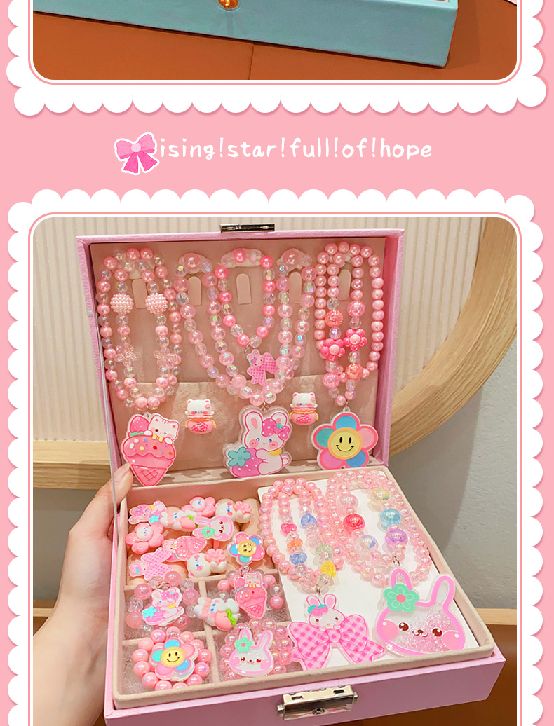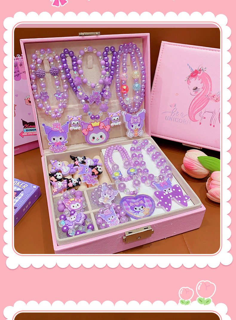 Kulomi Kids Necklace Gift Box Set Cute Girl Bracelet Ring Earrings Jewelry Box Girl Accessories Sixty One