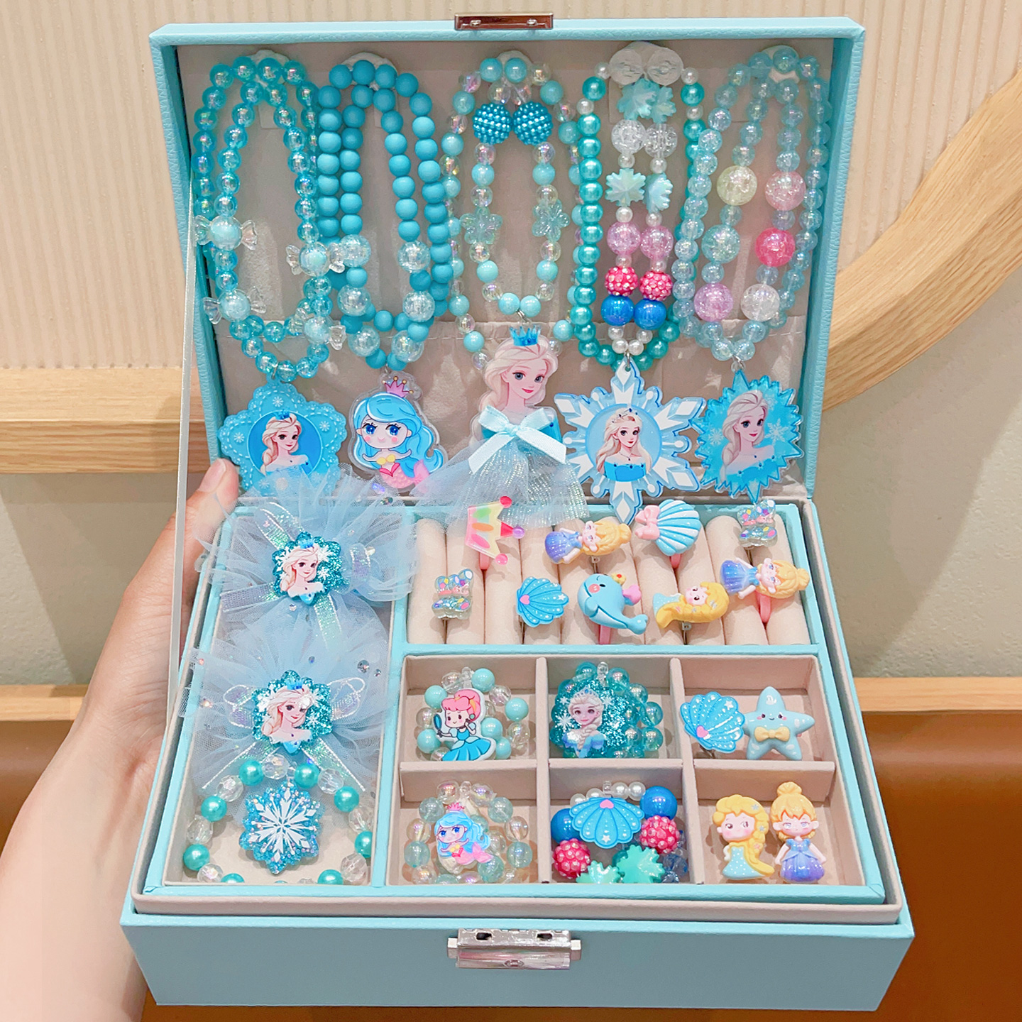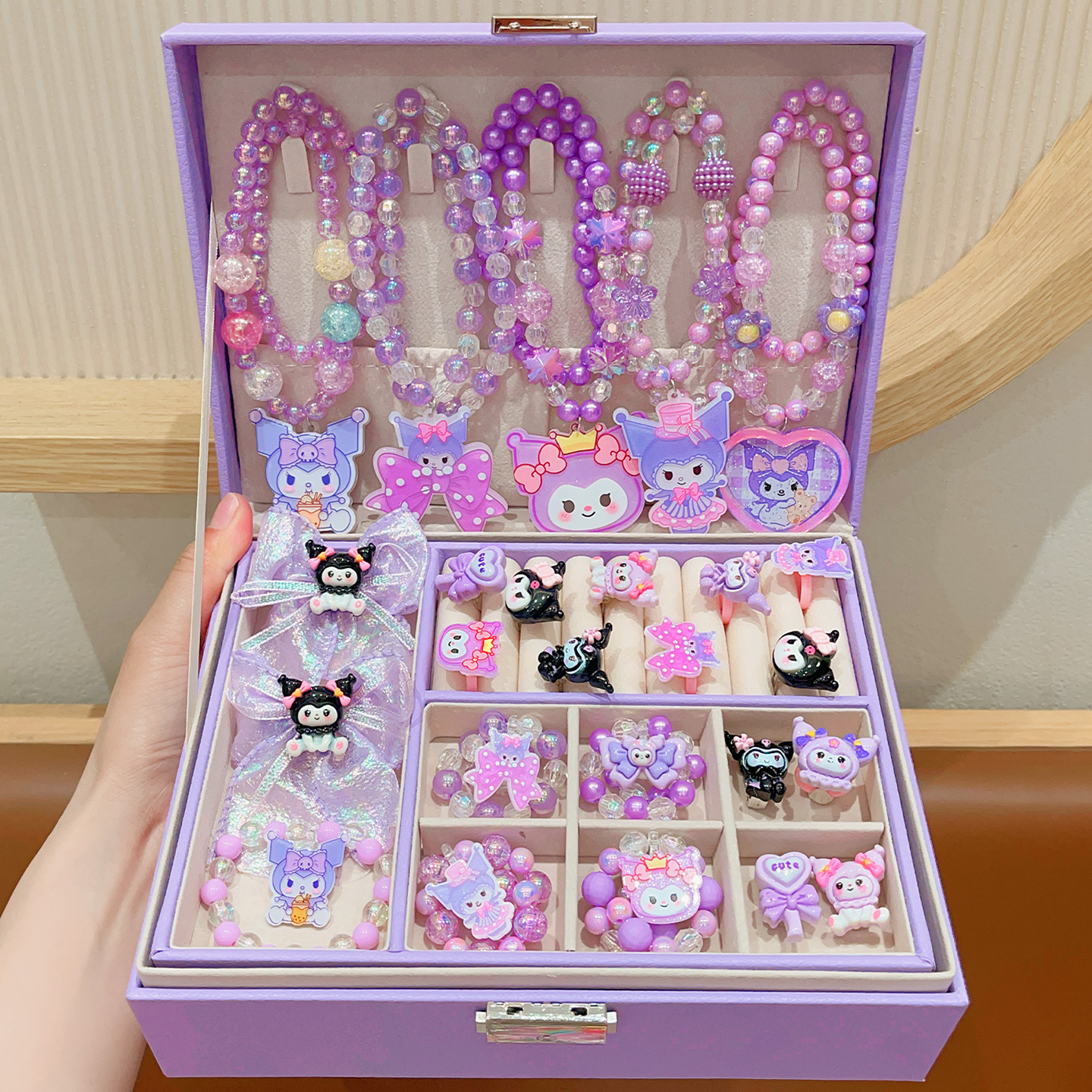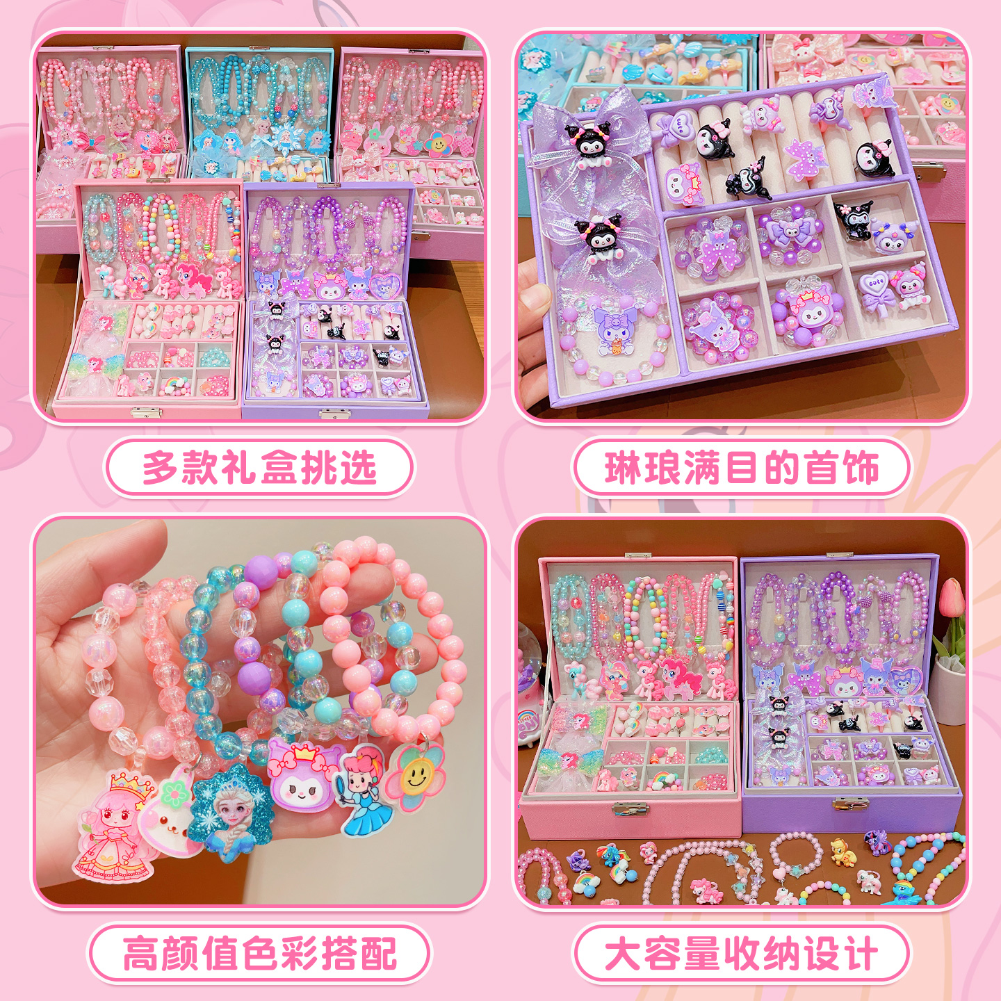 Kulomi Kids Necklace Gift Box Set Cute Girl Bracelet Ring Earrings Jewelry Box Girl Accessories Sixty One
