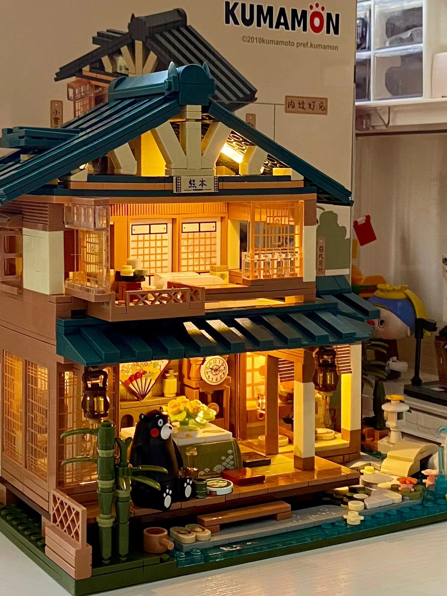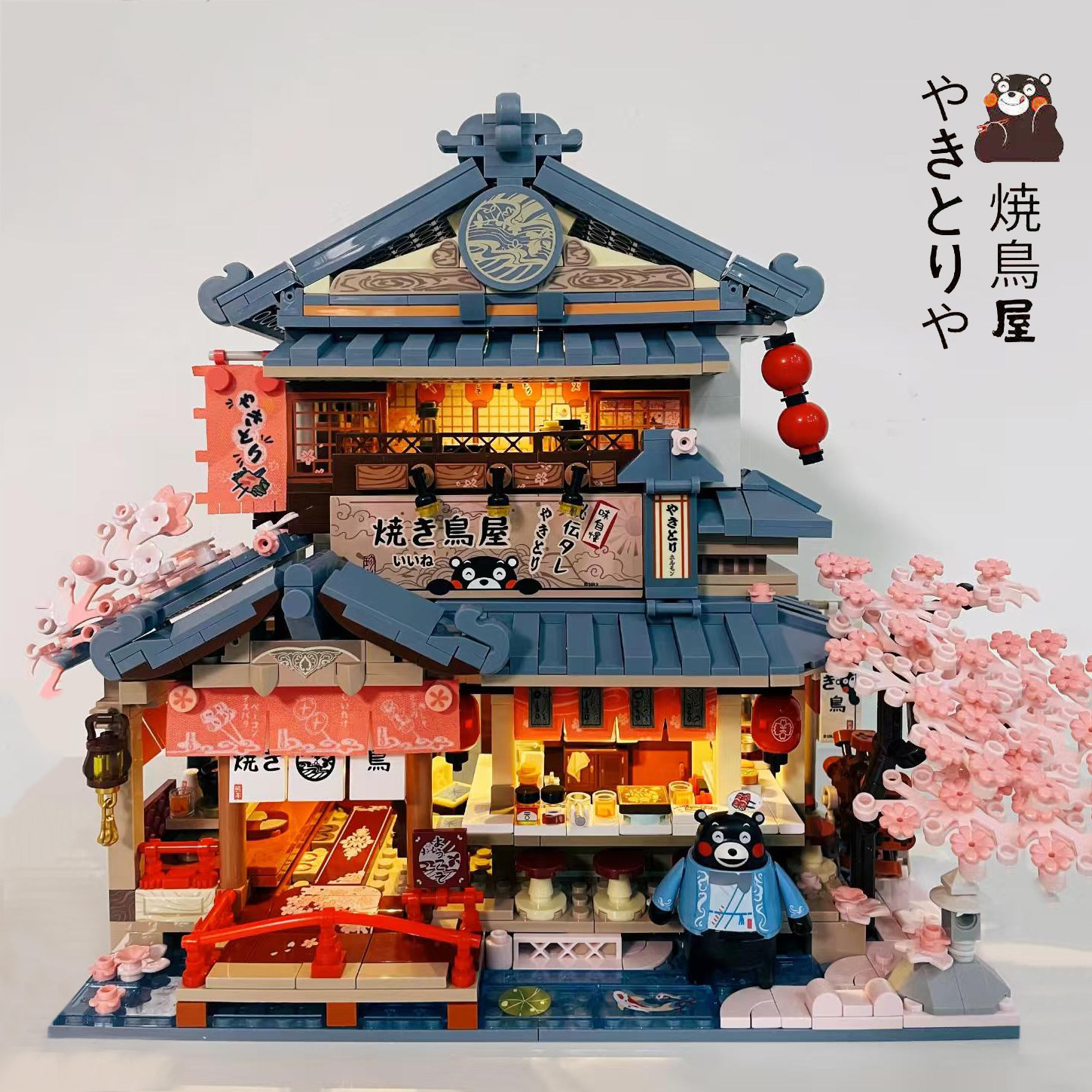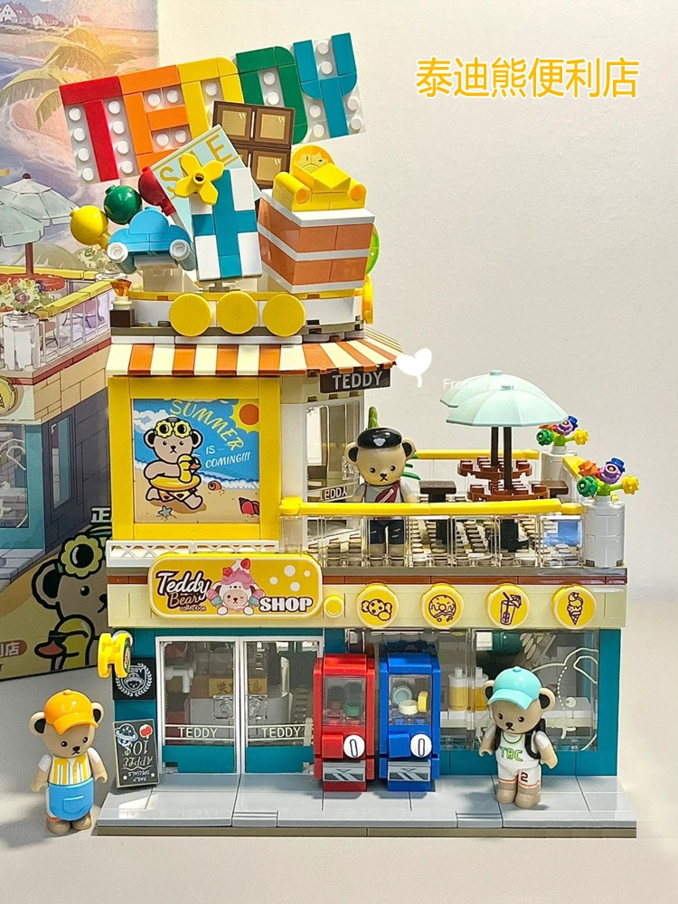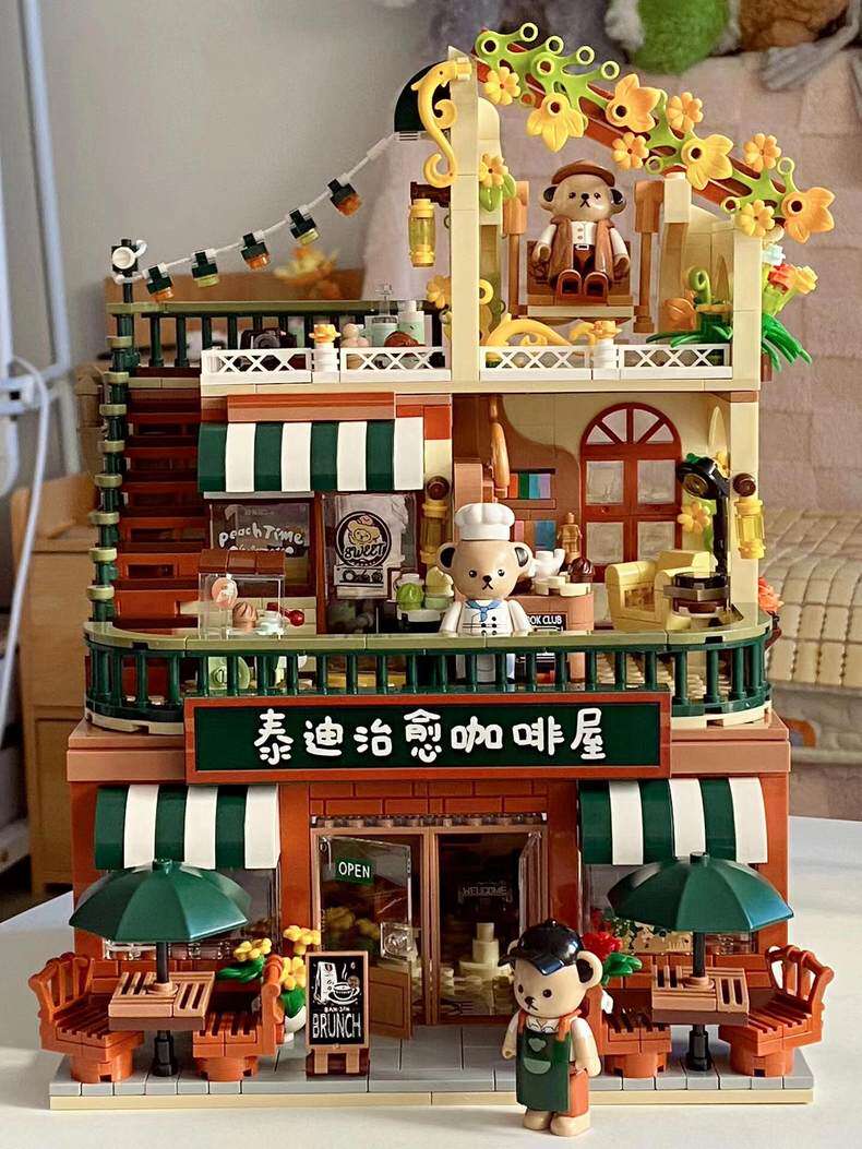 Kumamon street view building blocks japanese hut coffee house villa model girls DIY assembly kids educational toys