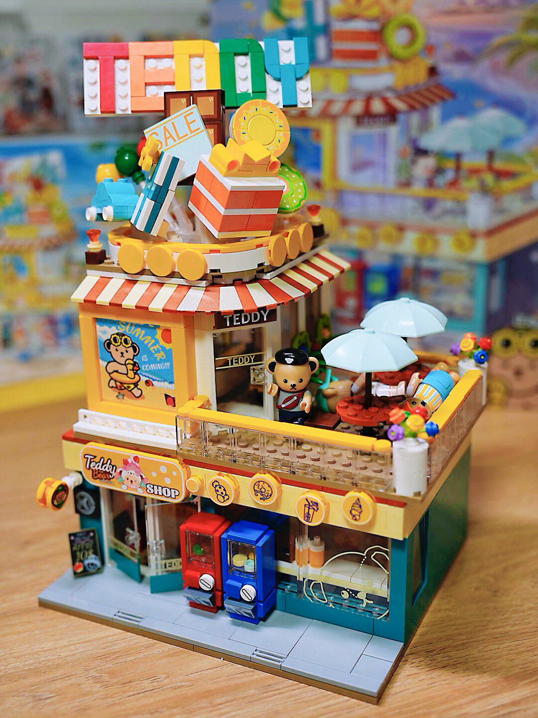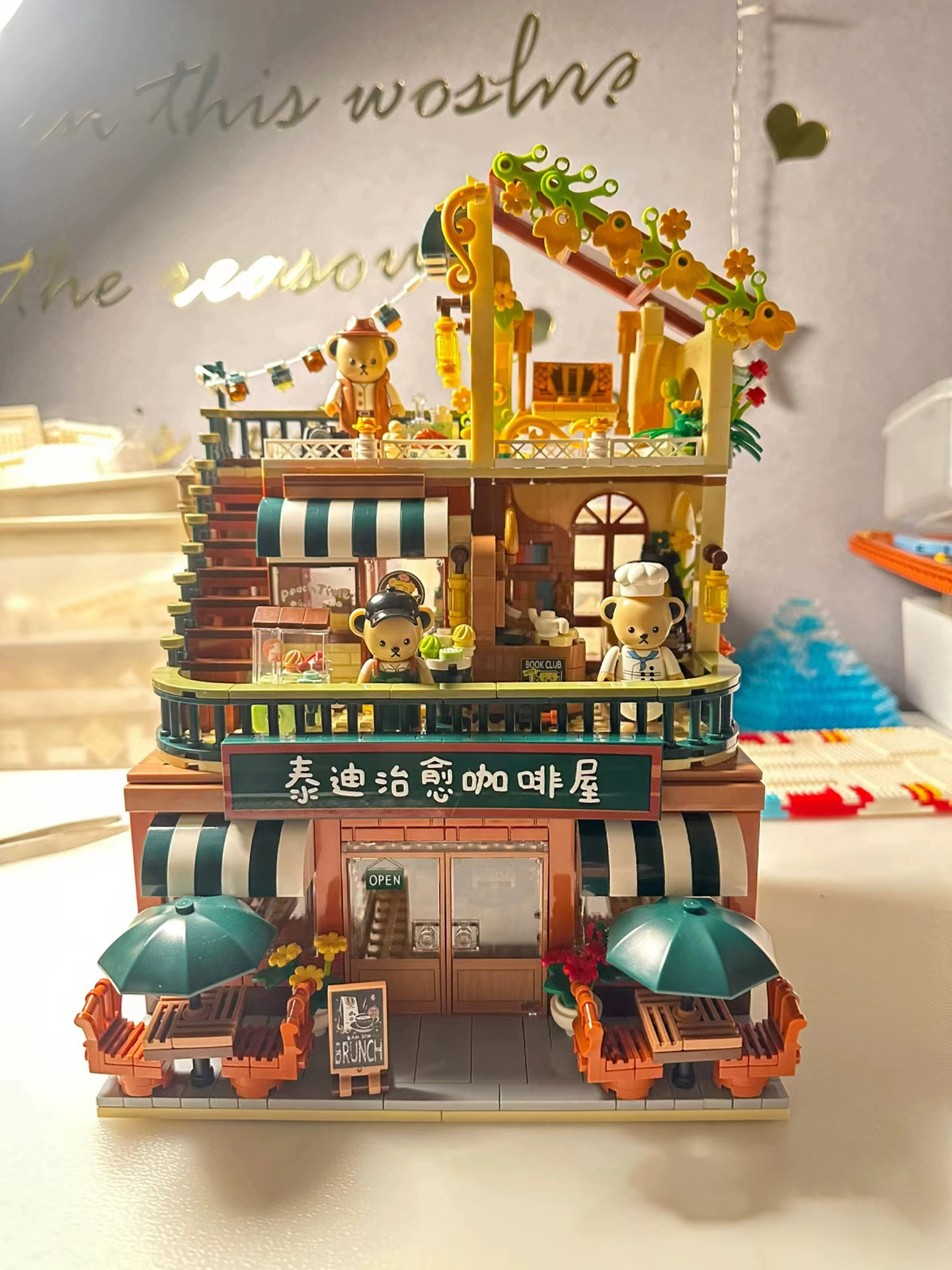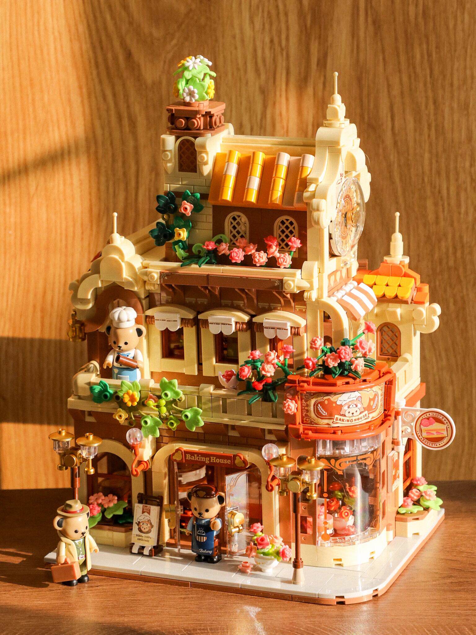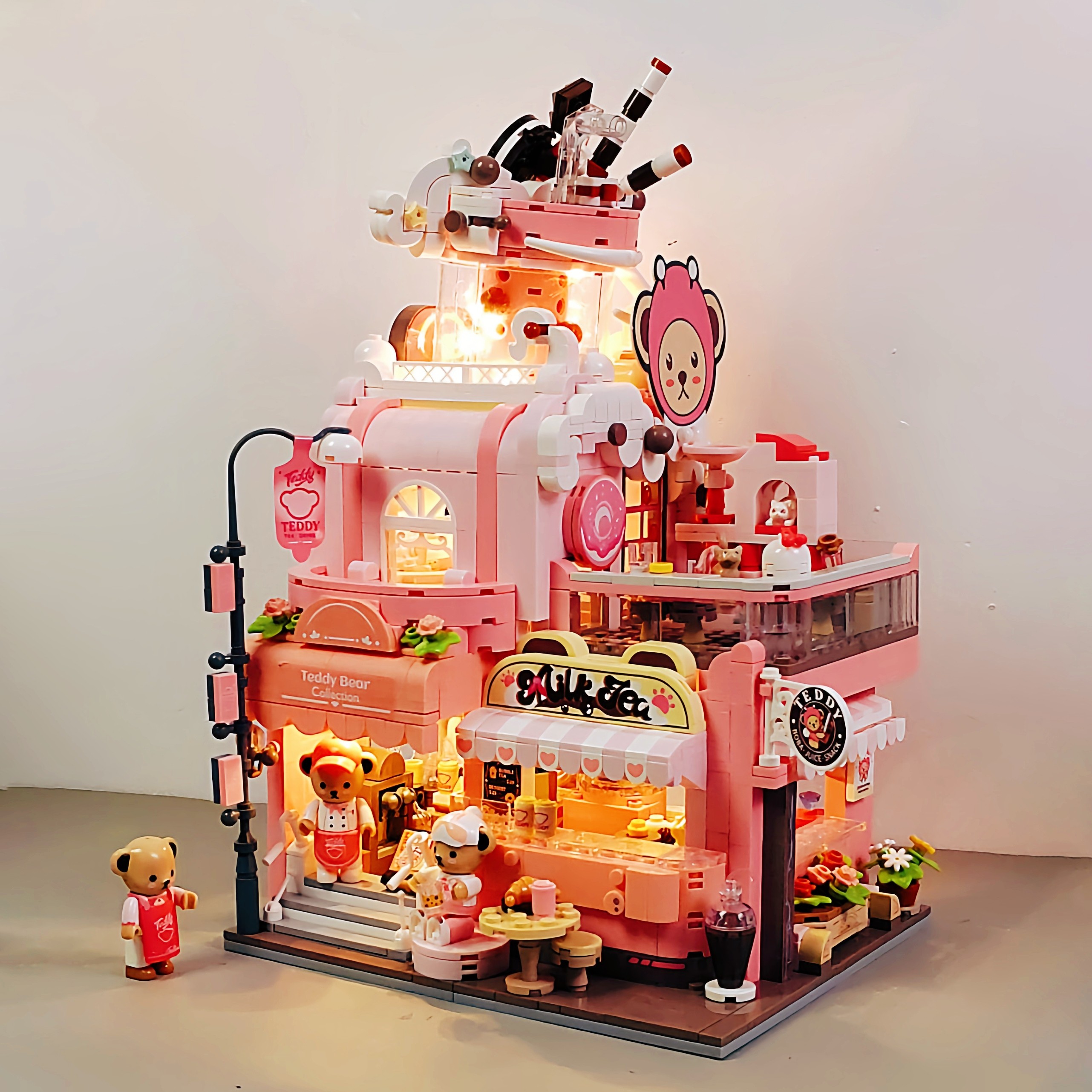 Kumamon street view building blocks japanese hut coffee house villa model girls DIY assembly kids educational toys