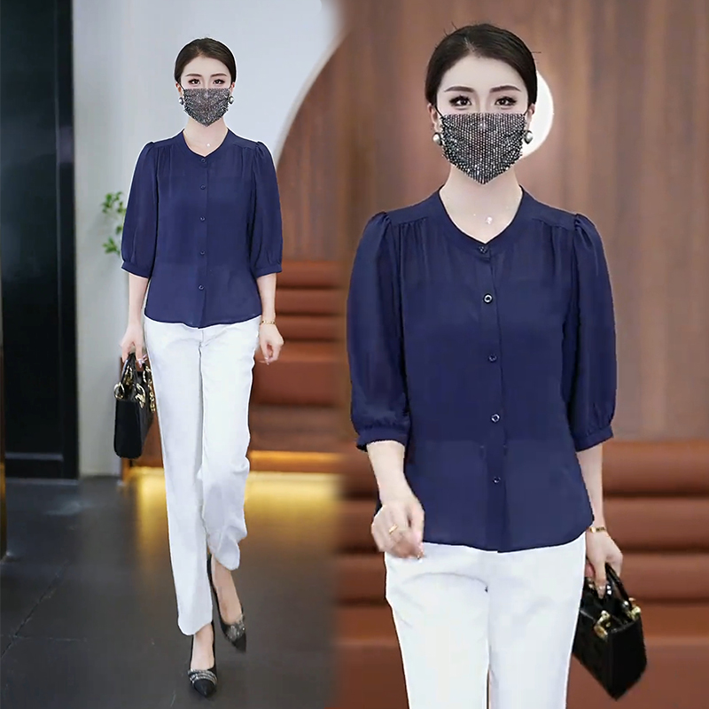 Shirt ladies popular high-quality chiffon tops summer new loose small middle-aged mom shirts