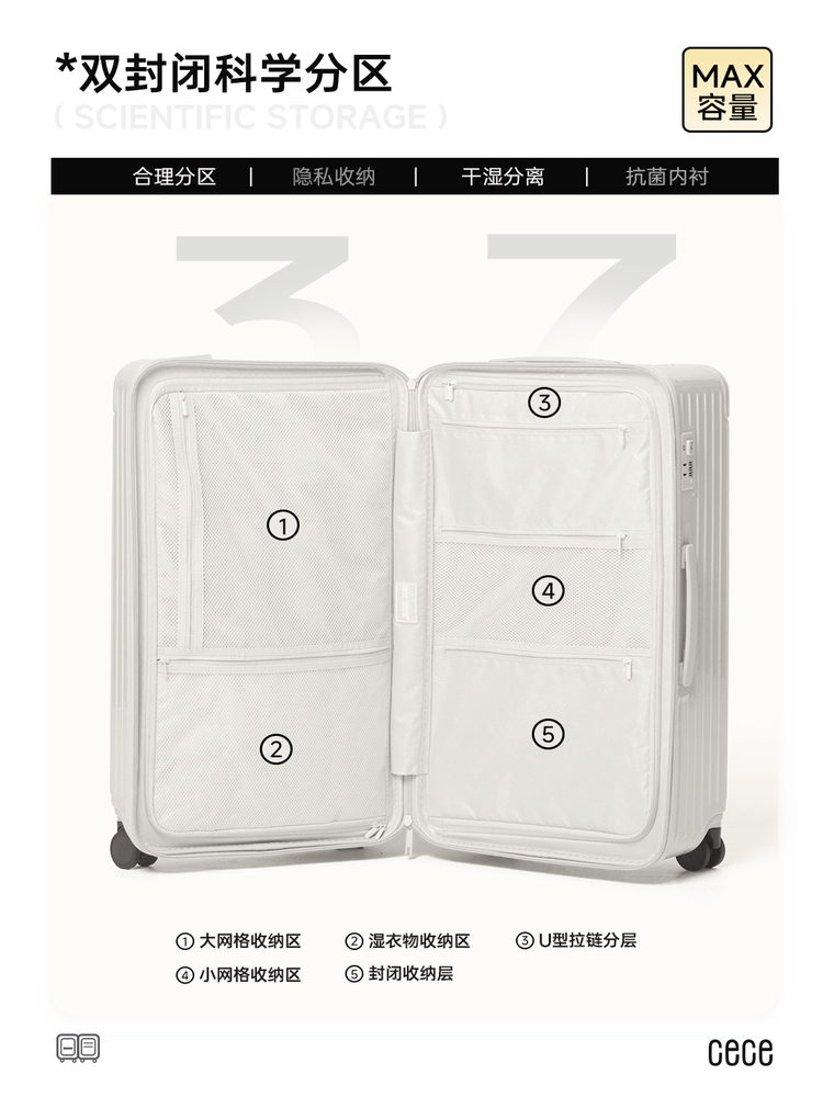 【New】CECE Large Capacity Deep Compartment Zipper Suitcase: Lightweight, Sturdy and Durable, Travel Suitcase, Trolley Leather Suitcase