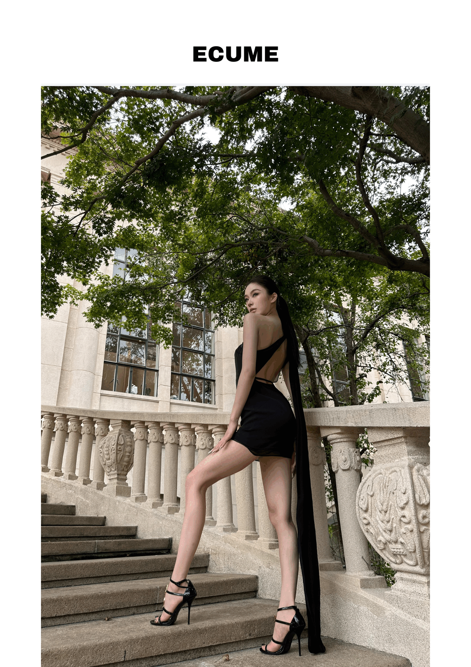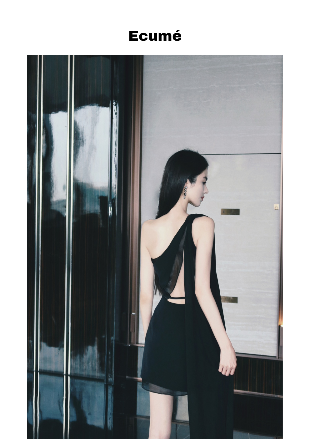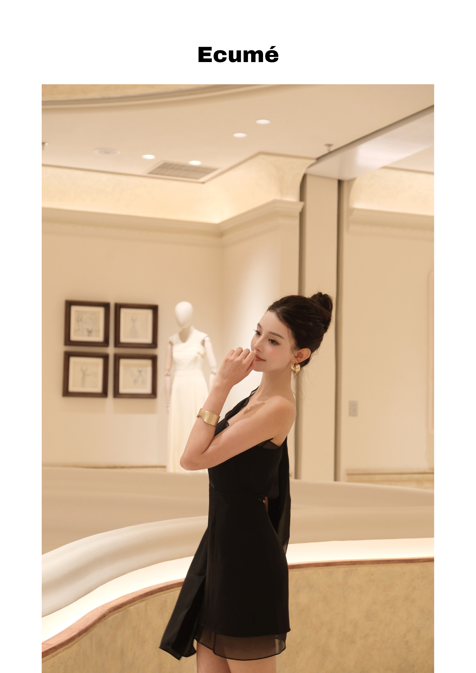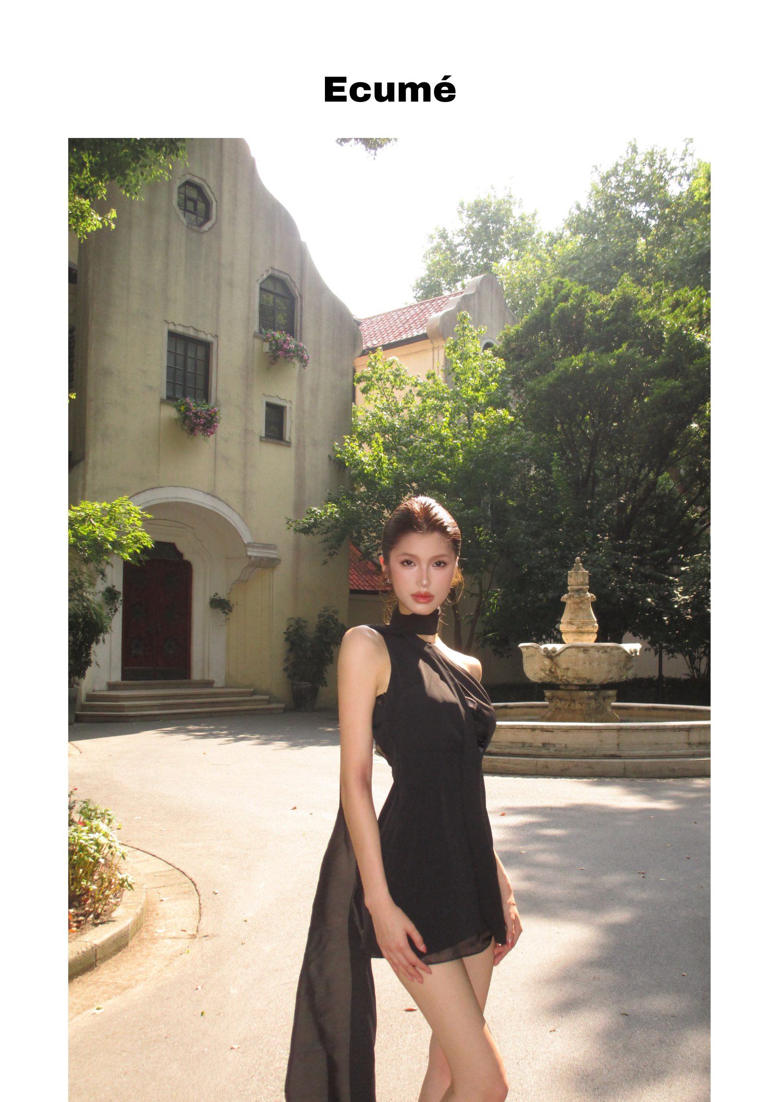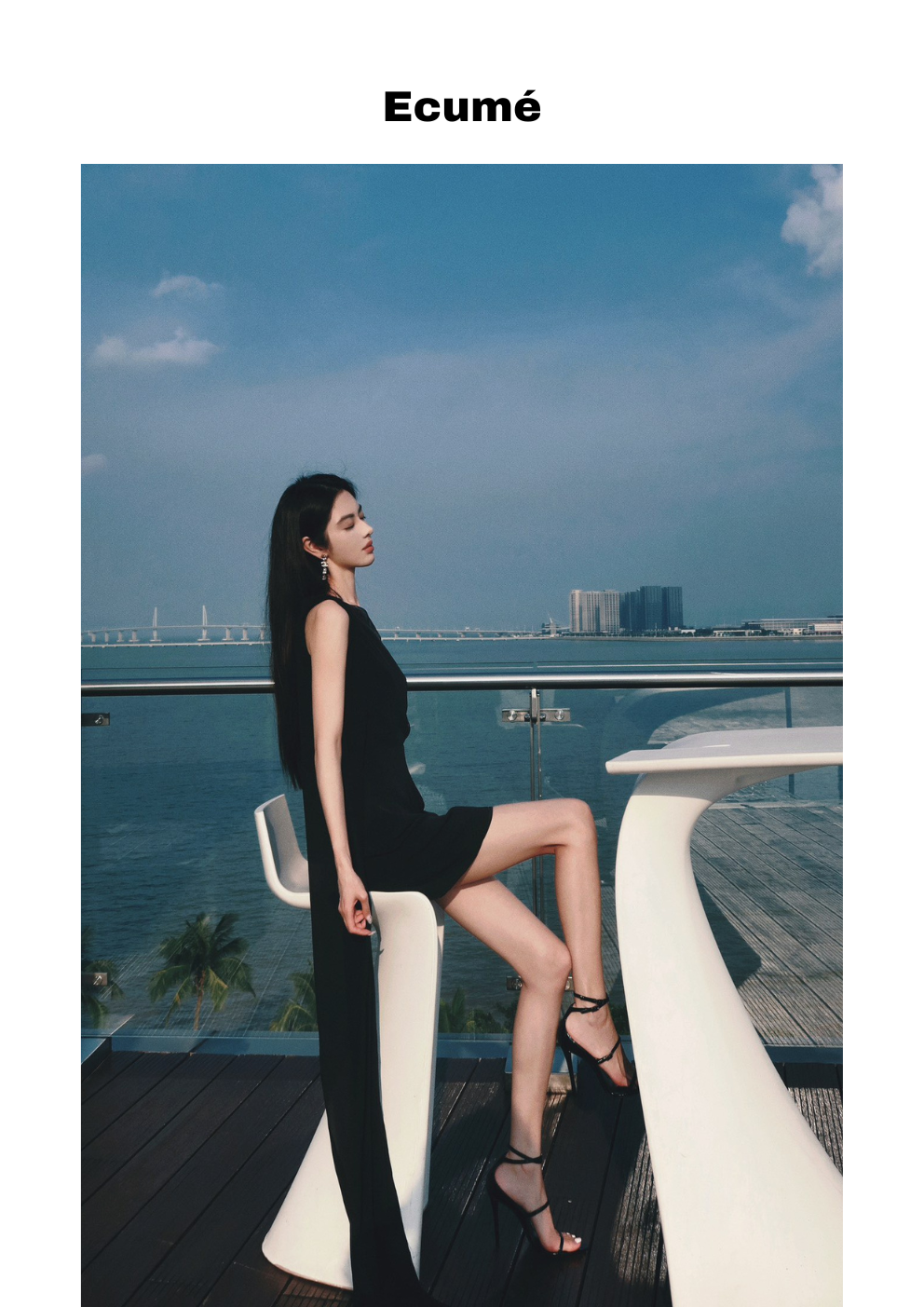 ECUME 24SS Black Streamer Split Backless Dress Birthday Dress Royal Sister Little Black Dress