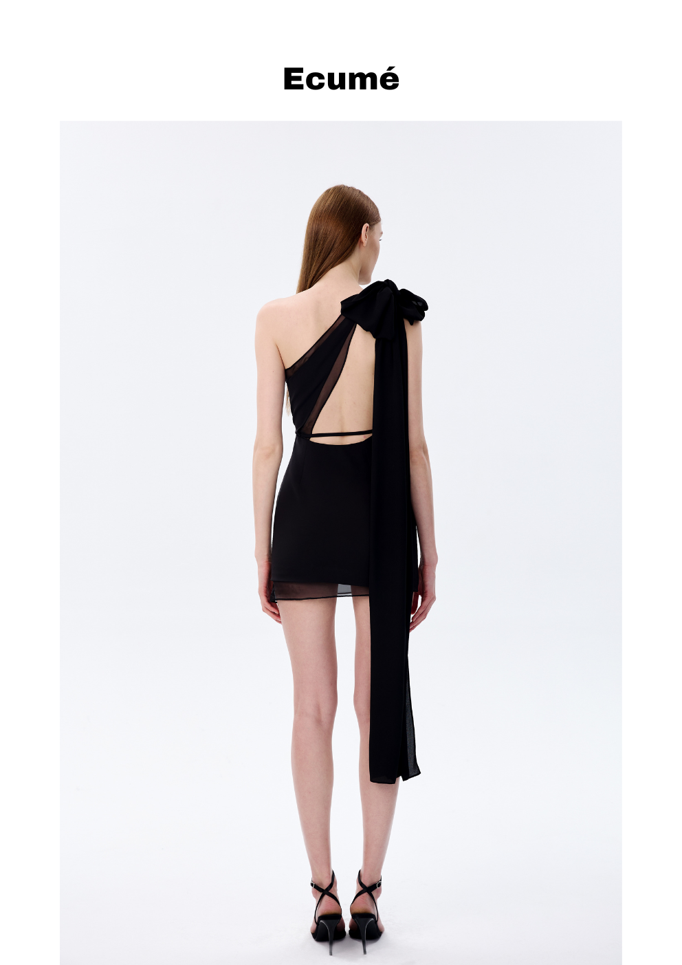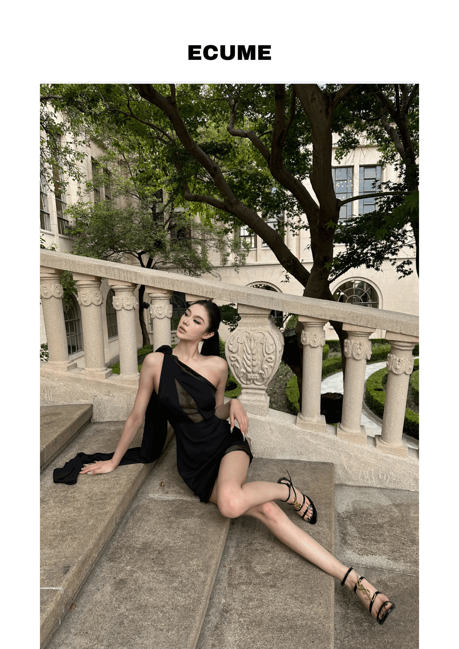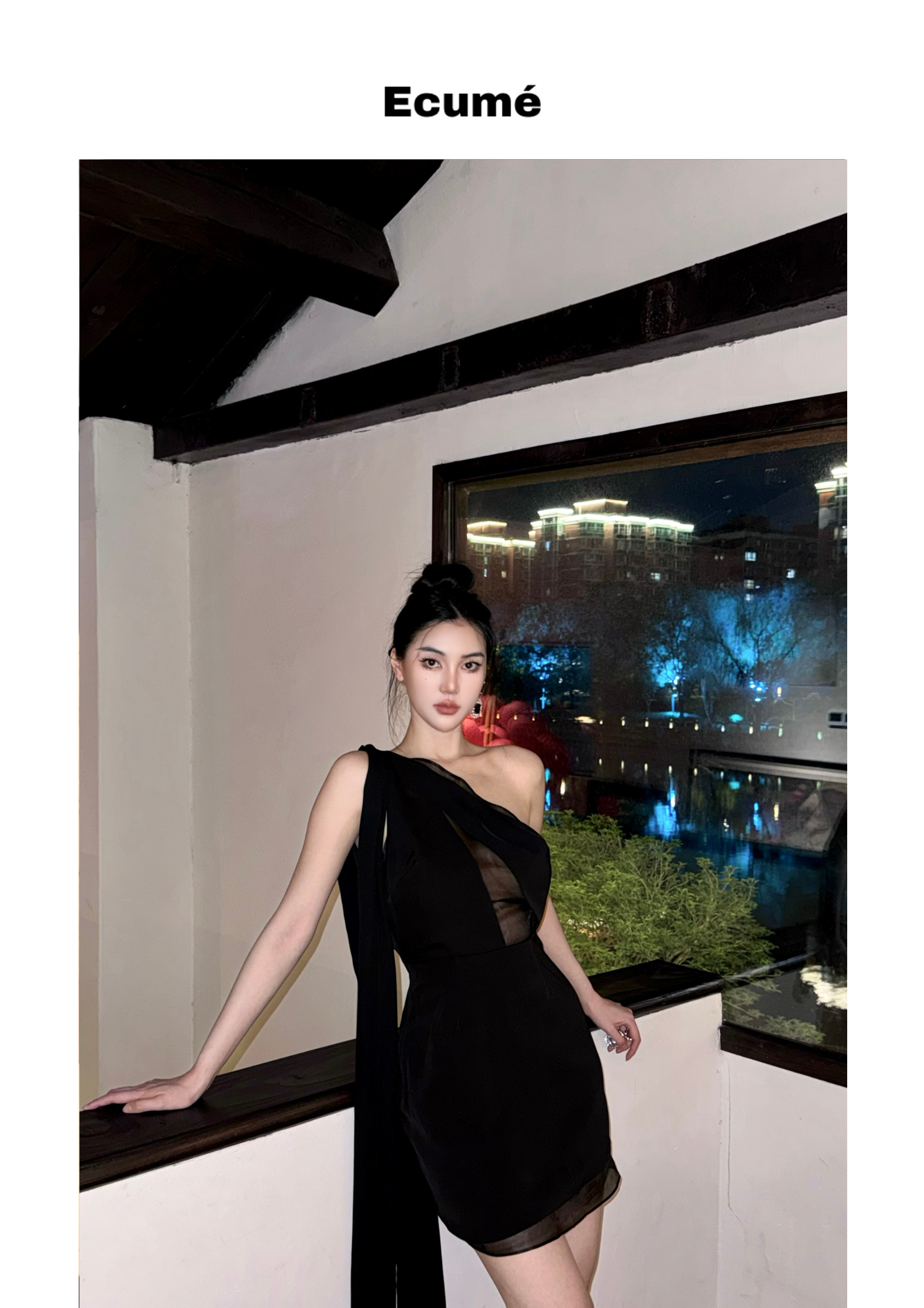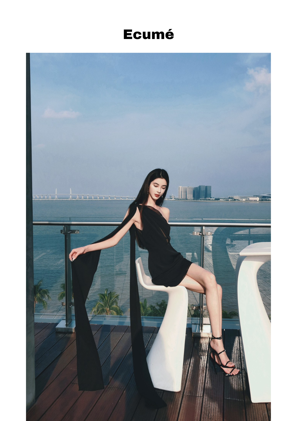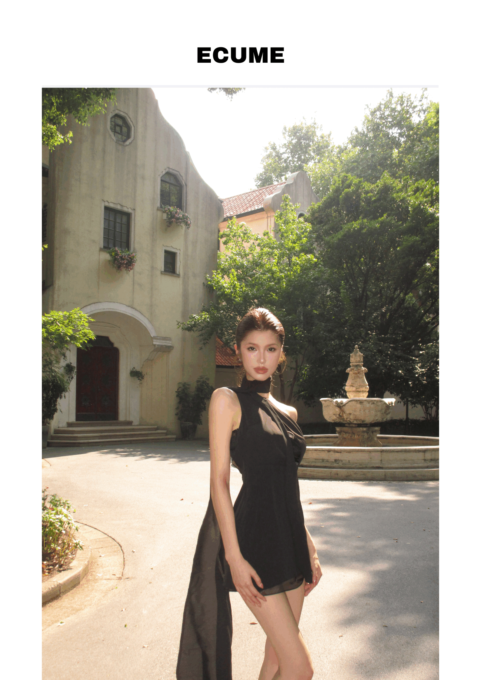 ECUME 24SS Black Streamer Split Backless Dress Birthday Dress Royal Sister Little Black Dress