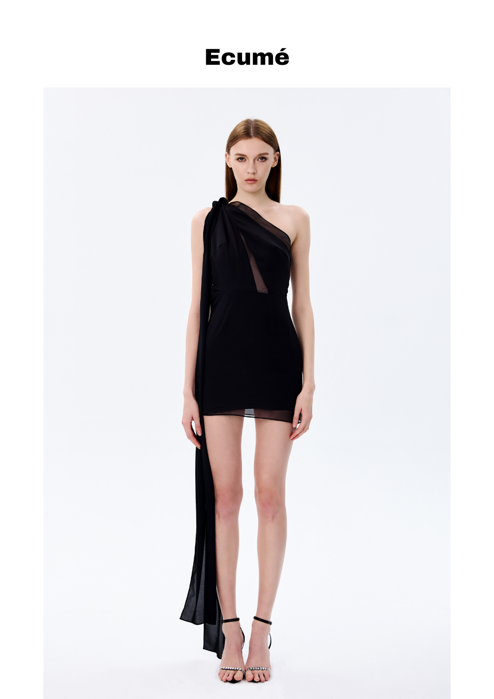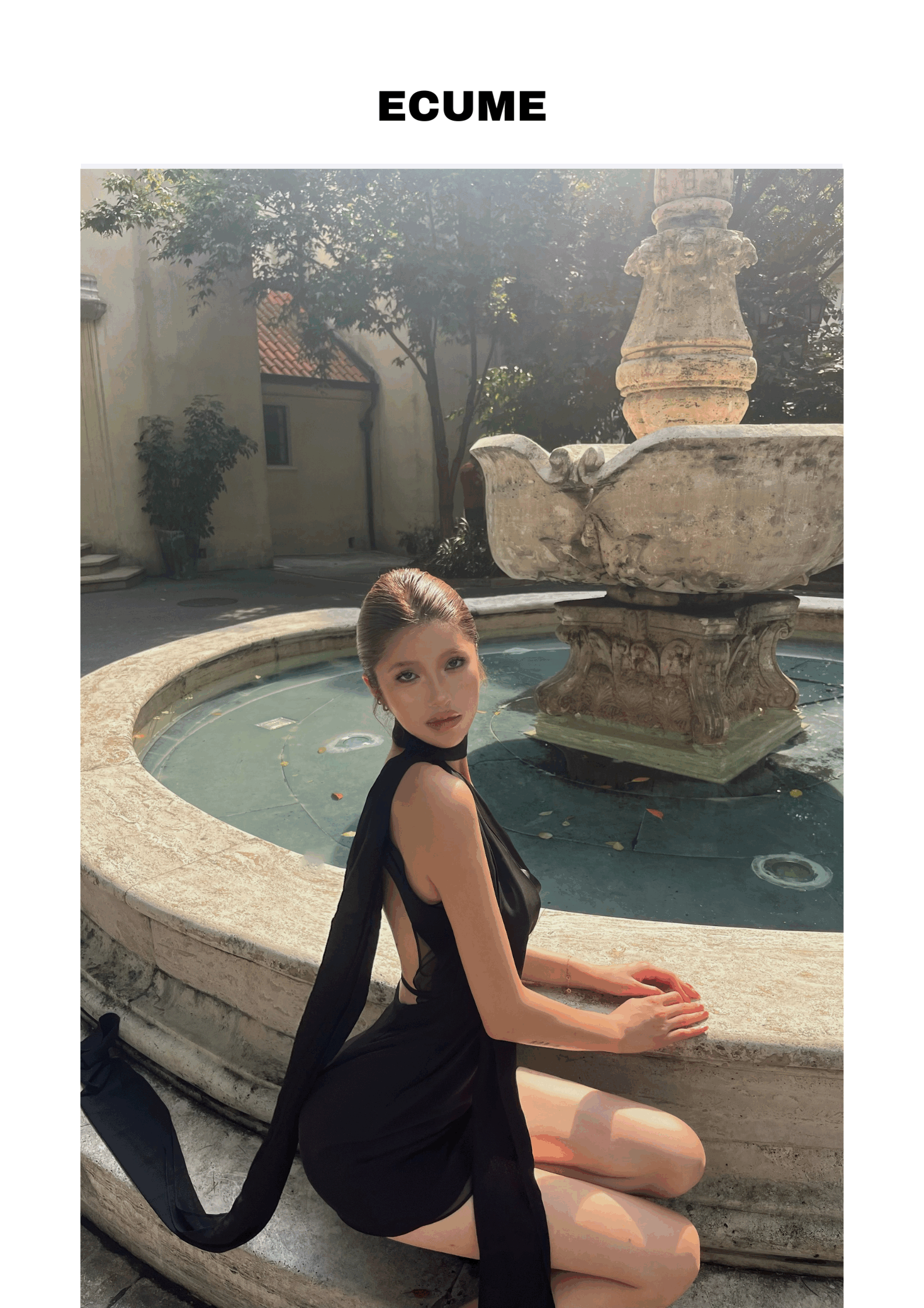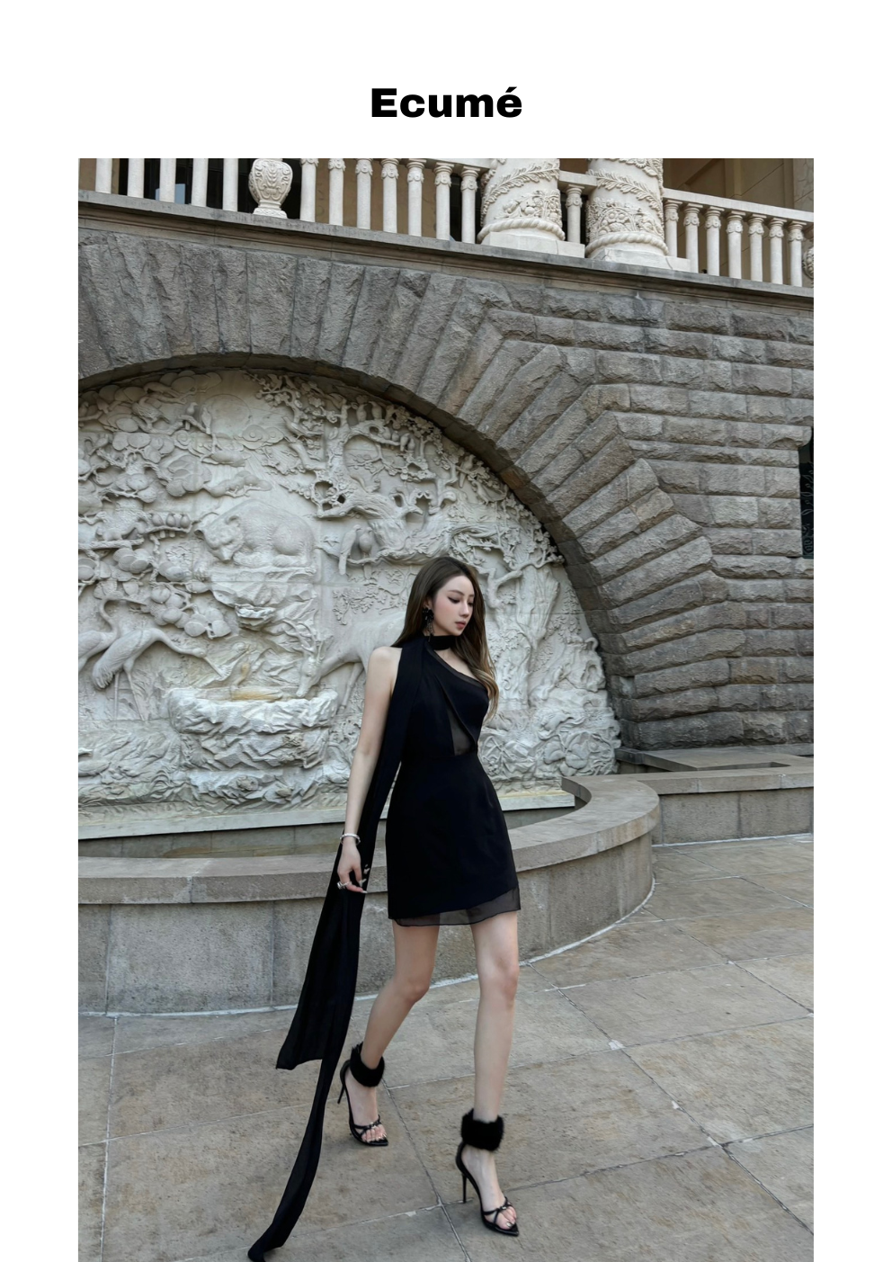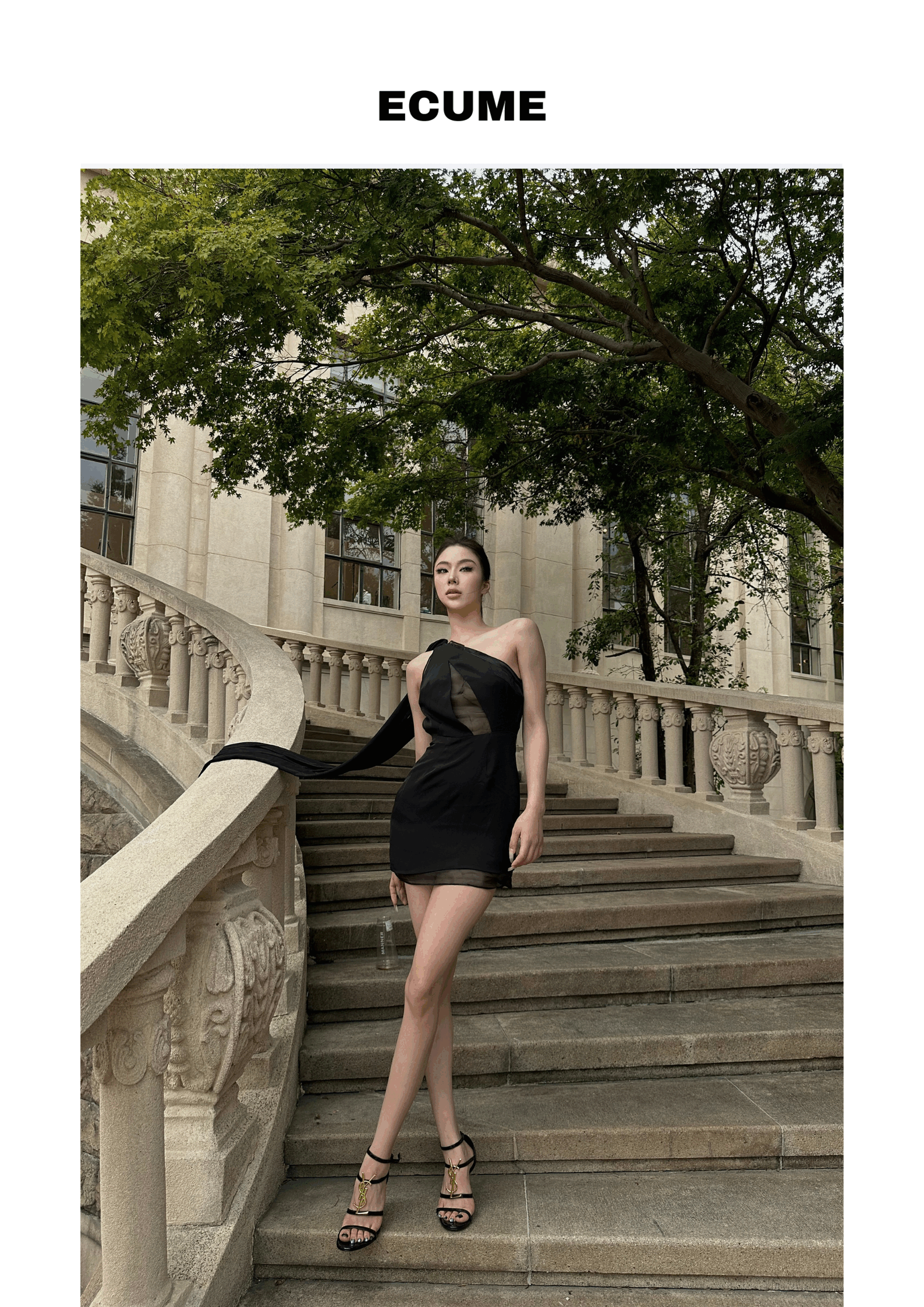 ECUME 24SS Black Streamer Split Backless Dress Birthday Dress Royal Sister Little Black Dress