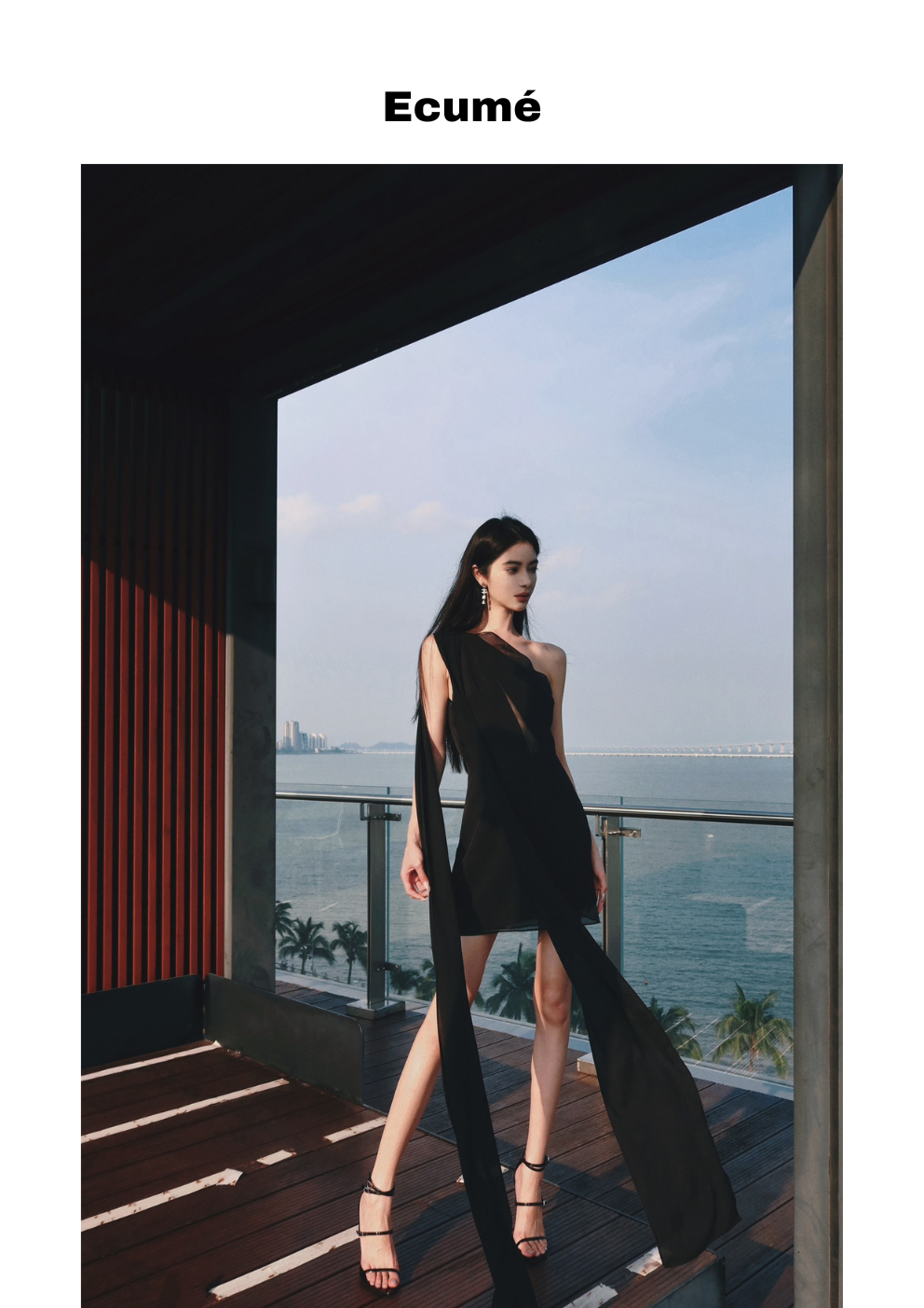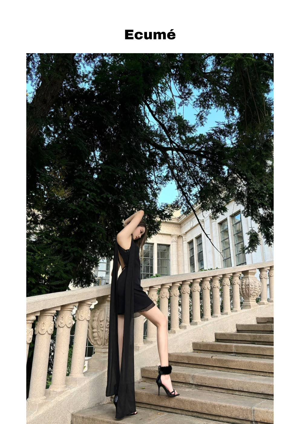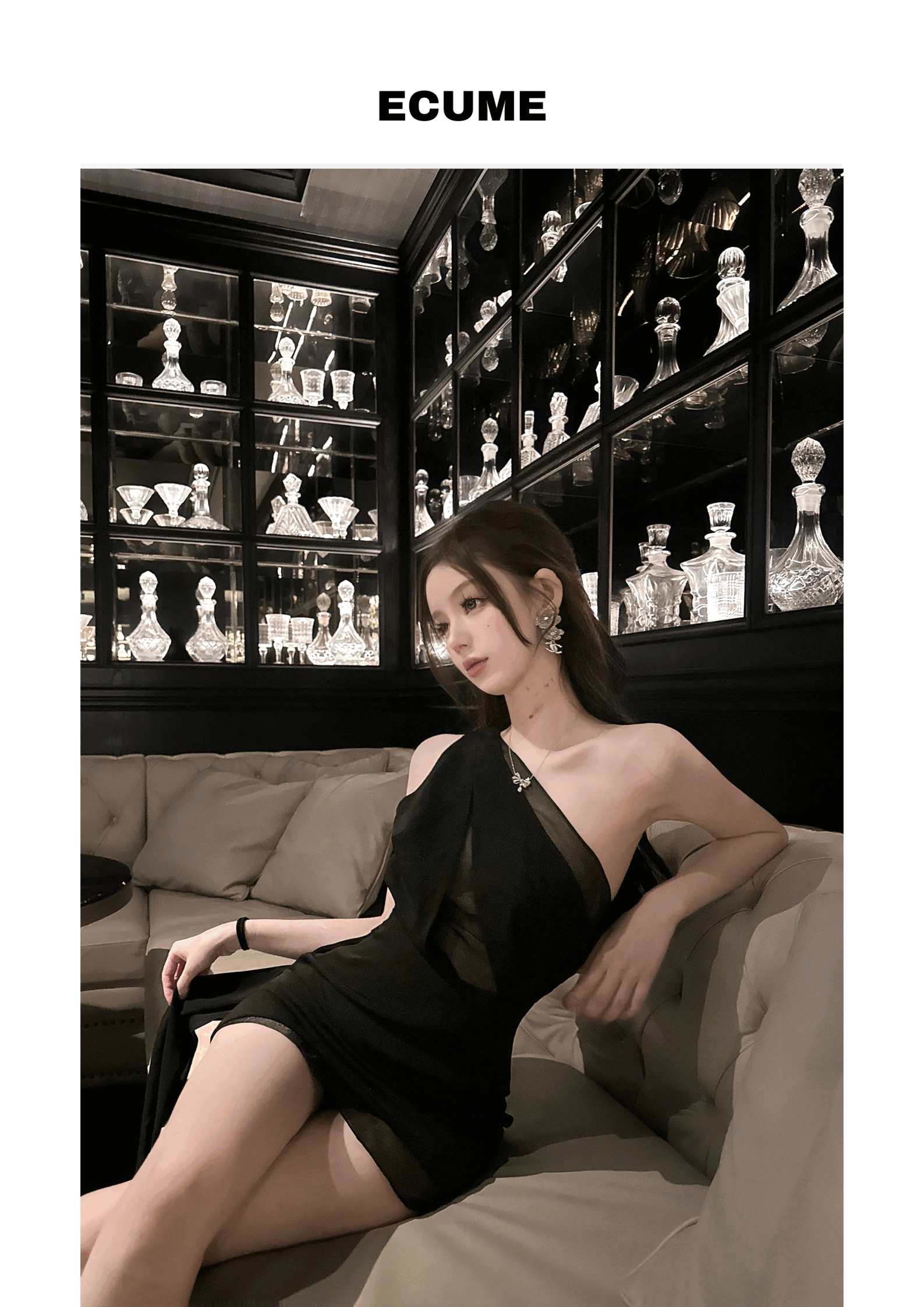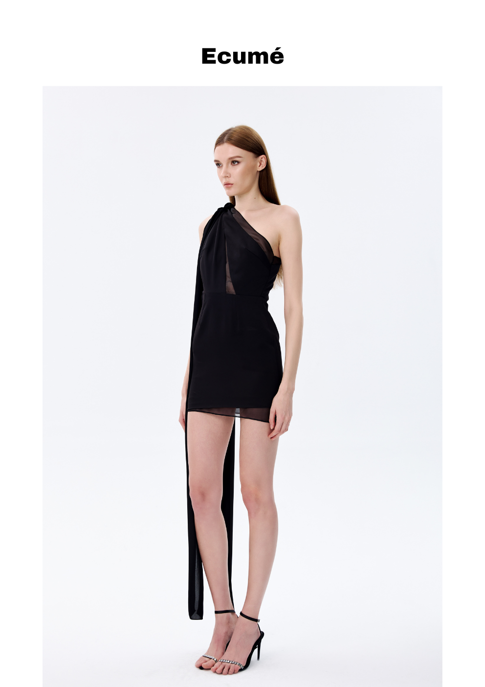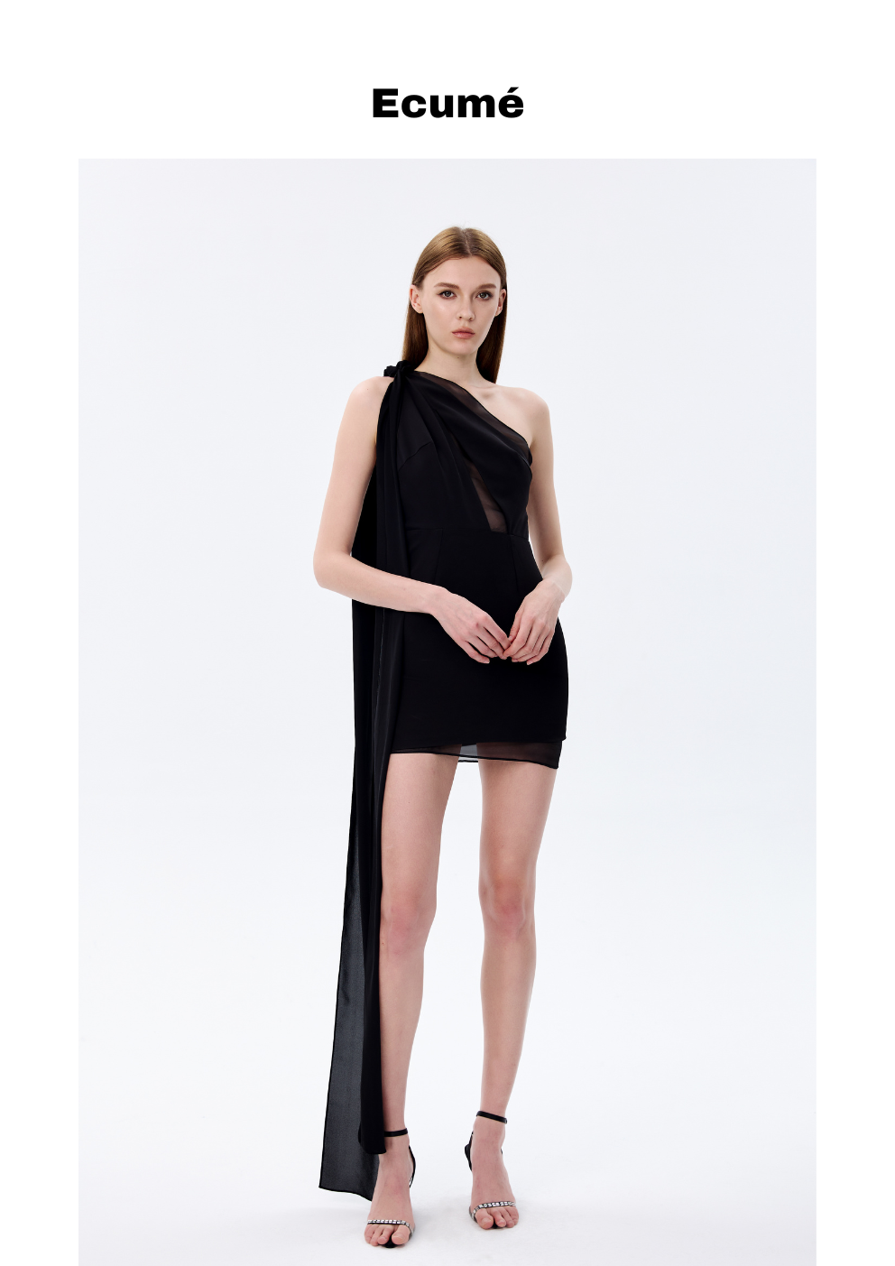 ECUME 24SS Black Streamer Split Backless Dress Birthday Dress Royal Sister Little Black Dress