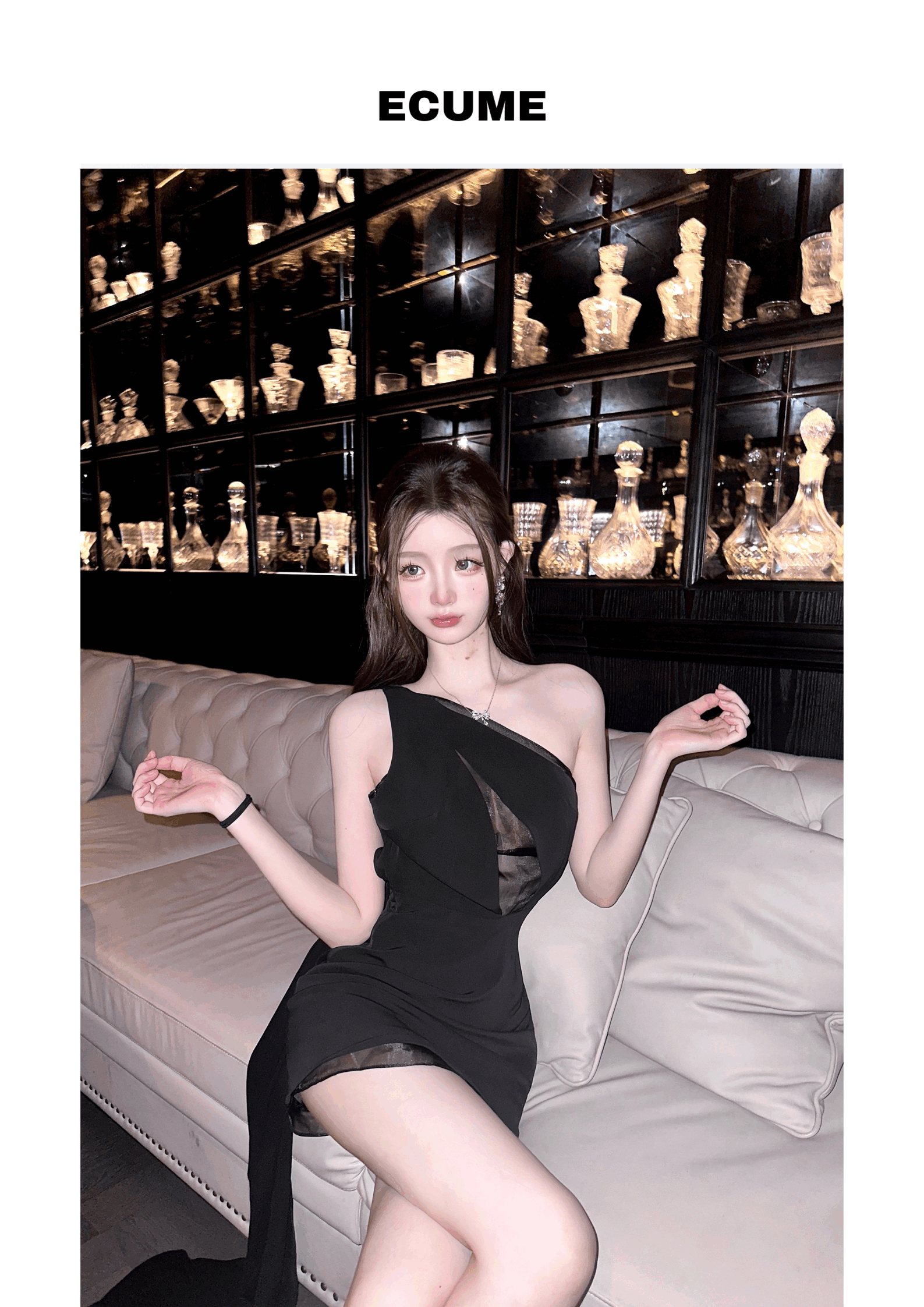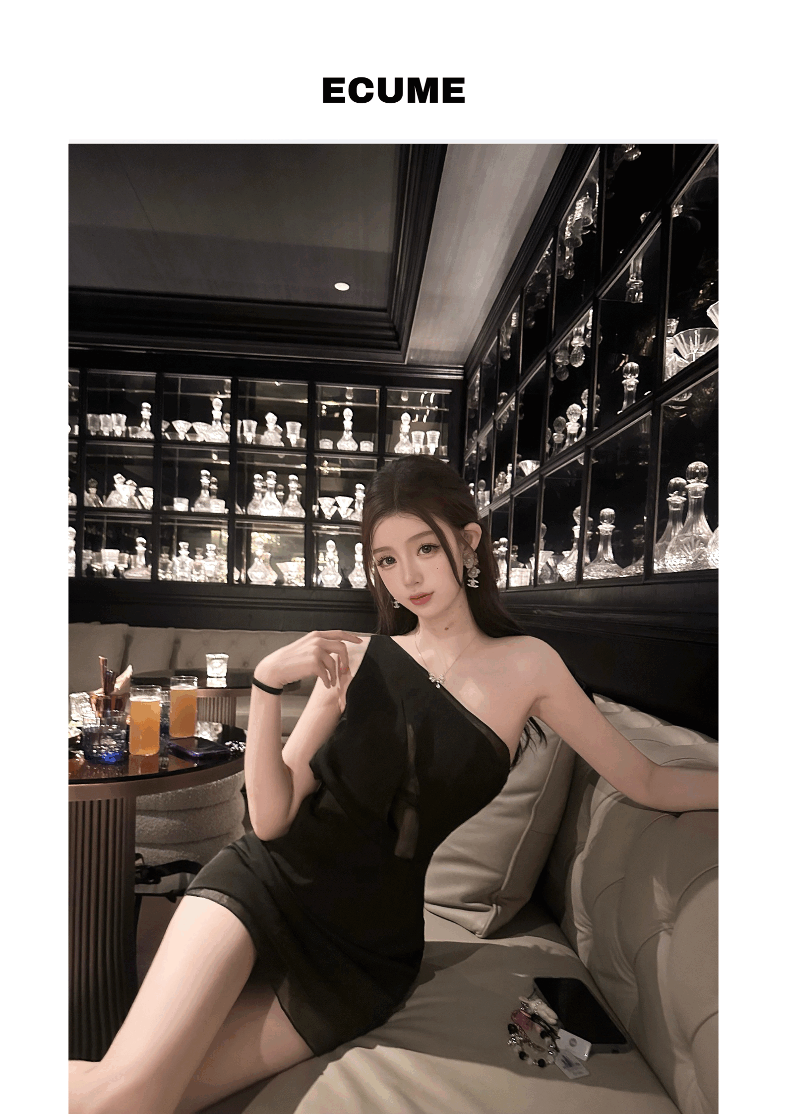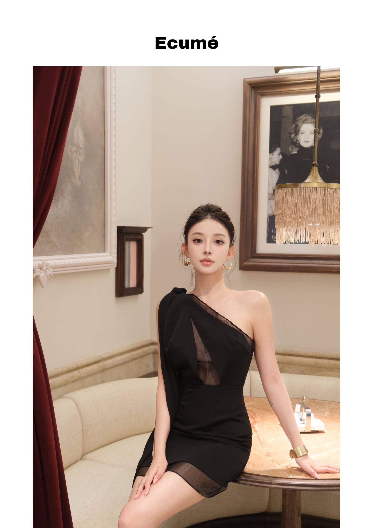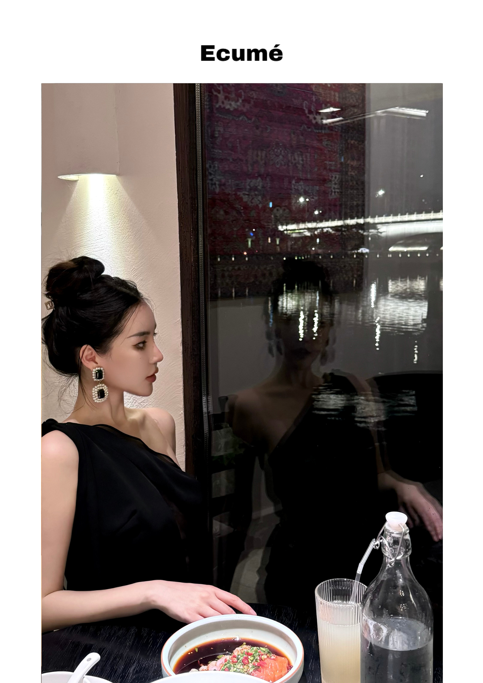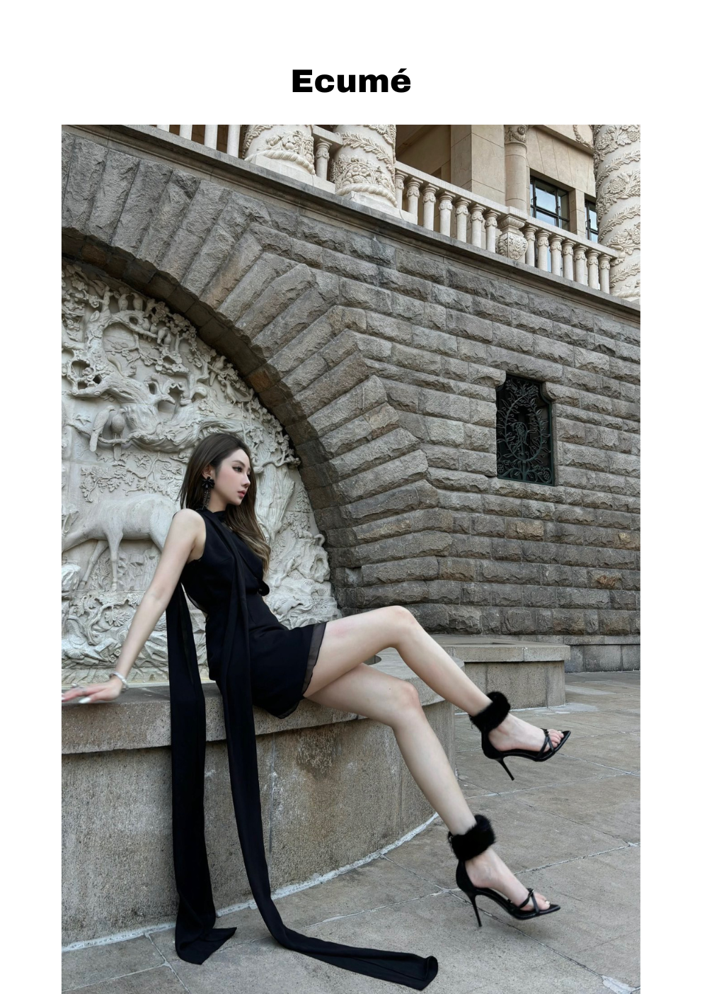 ECUME 24SS Black Streamer Split Backless Dress Birthday Dress Royal Sister Little Black Dress