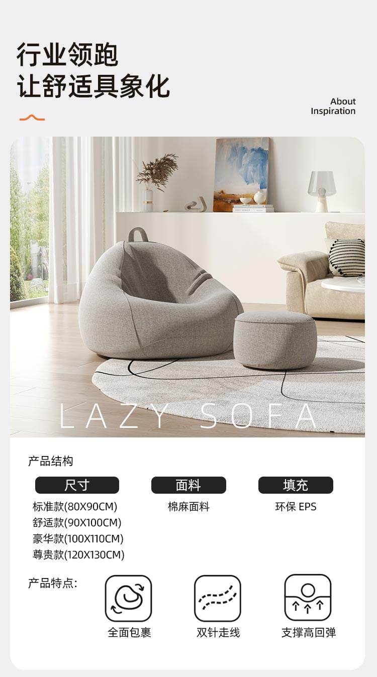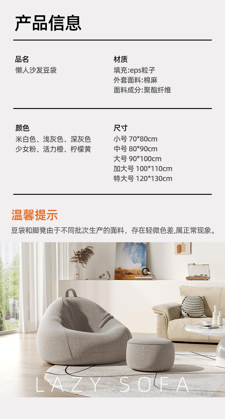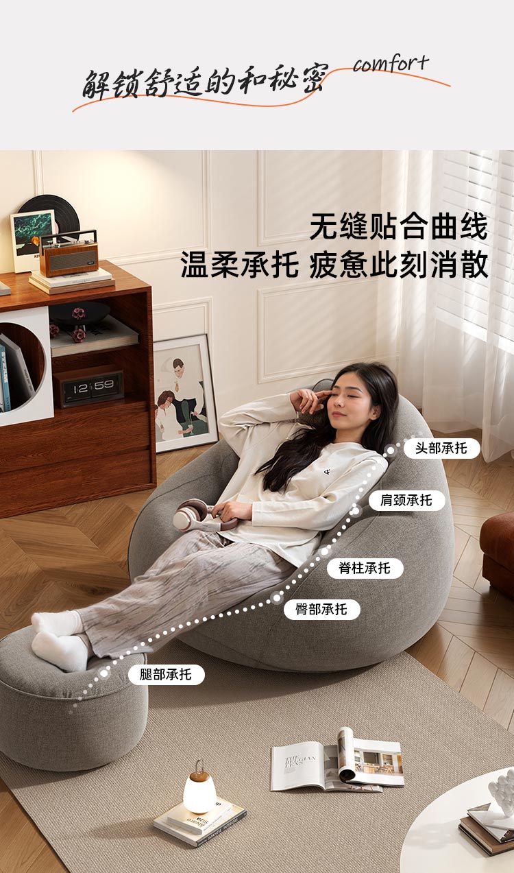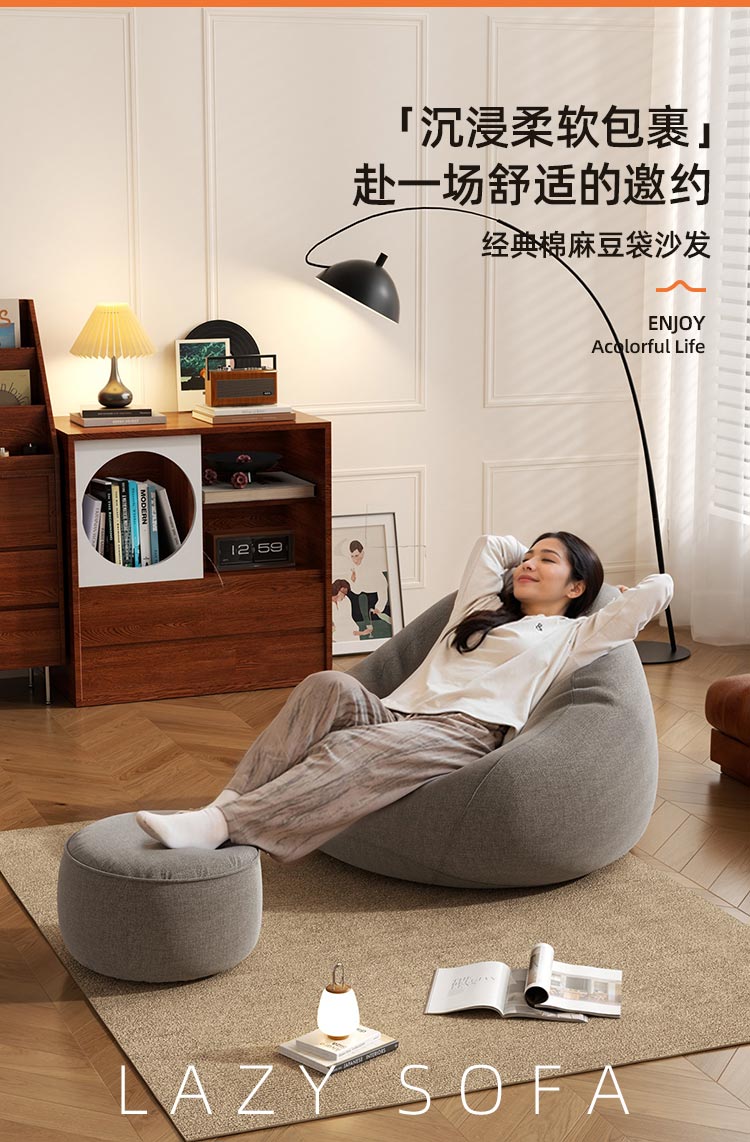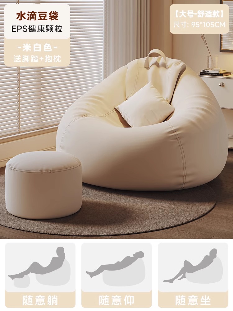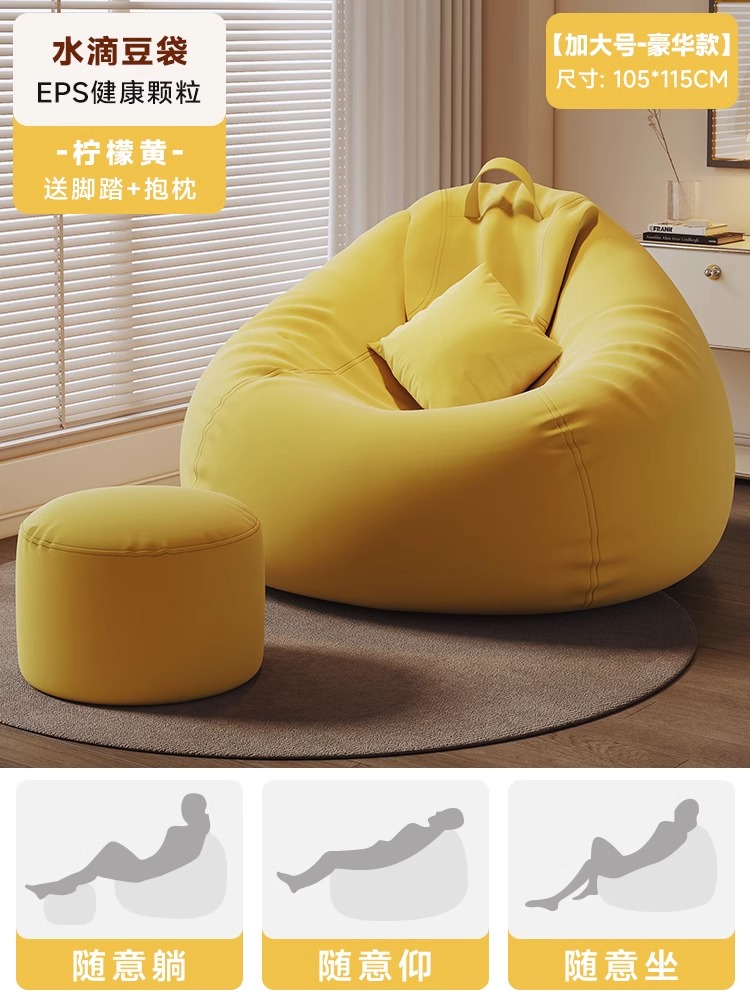 Bedroom small sofa, lazy sofa, lying down and sleeping, leisure bean sand bag balcony, adult home lounge chair, single