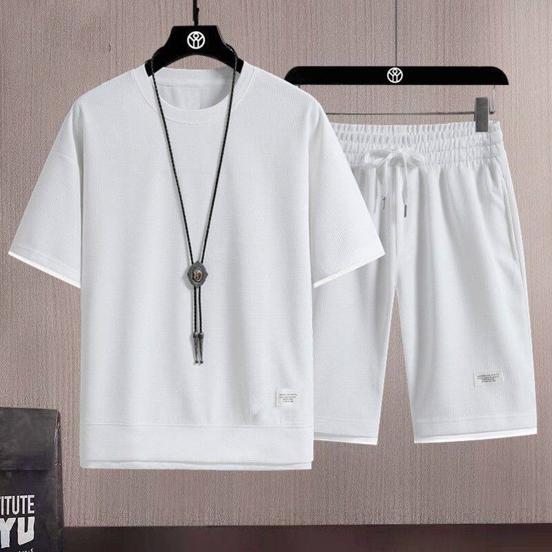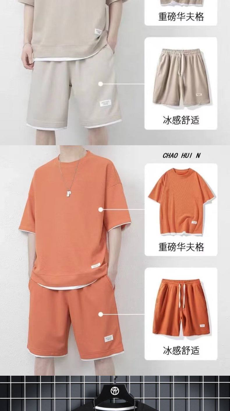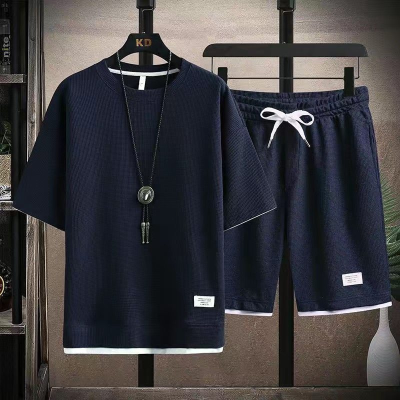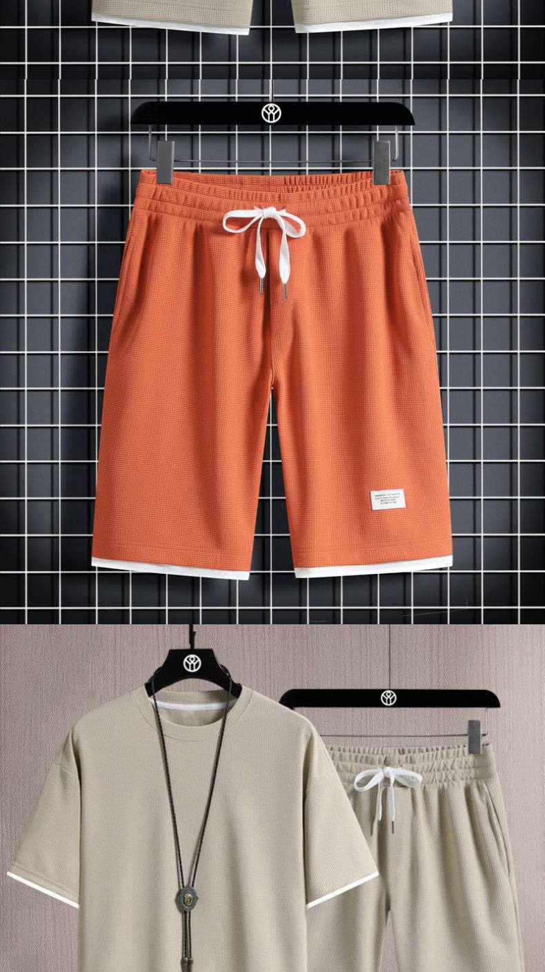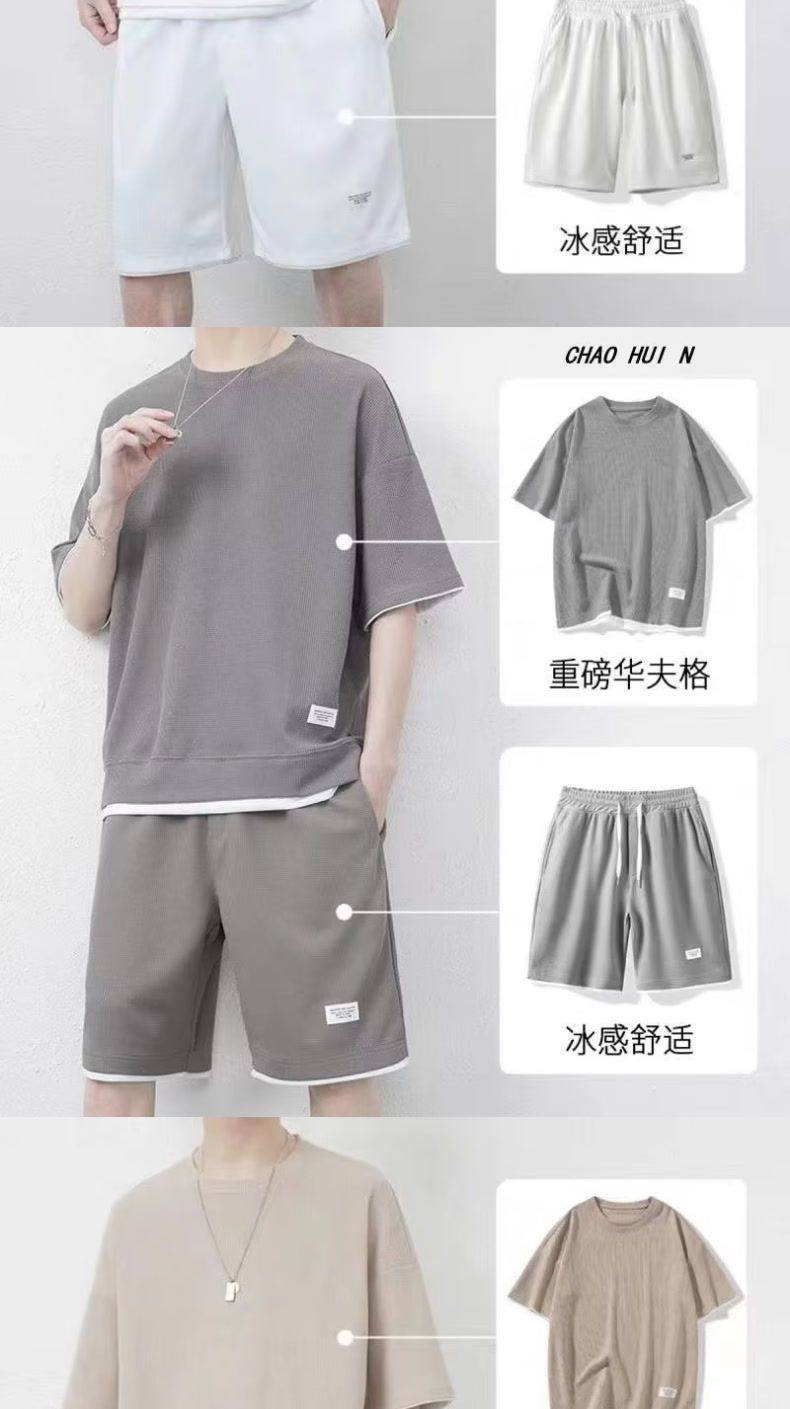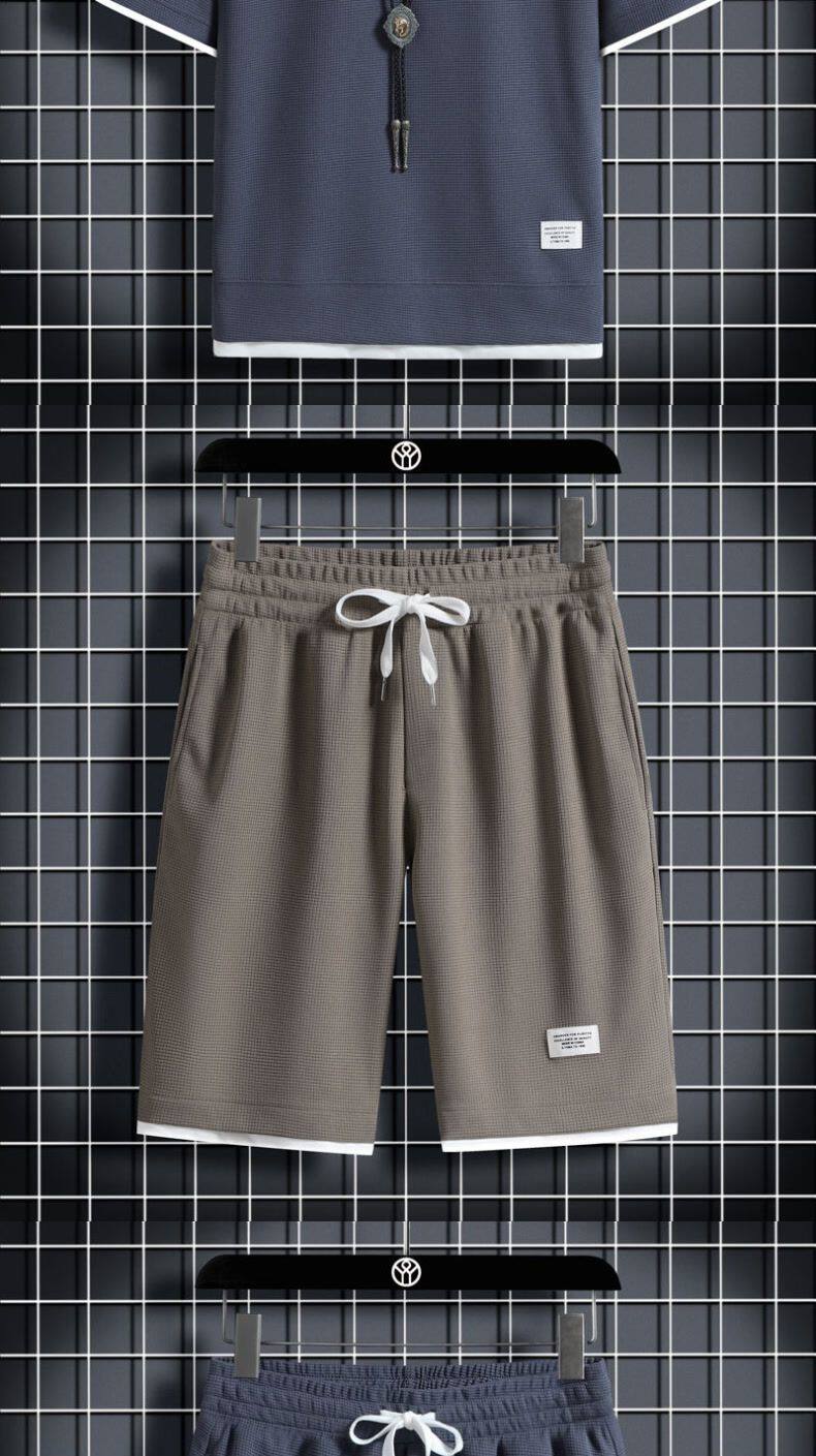 Heavyweight waffle suits, men's and women's summer athleisure, loose fakes, two-piece half-sleeved T-shirts, and a set of five-quarter shorts