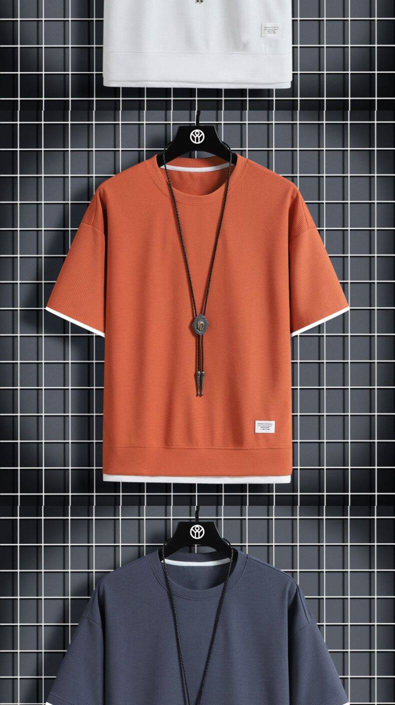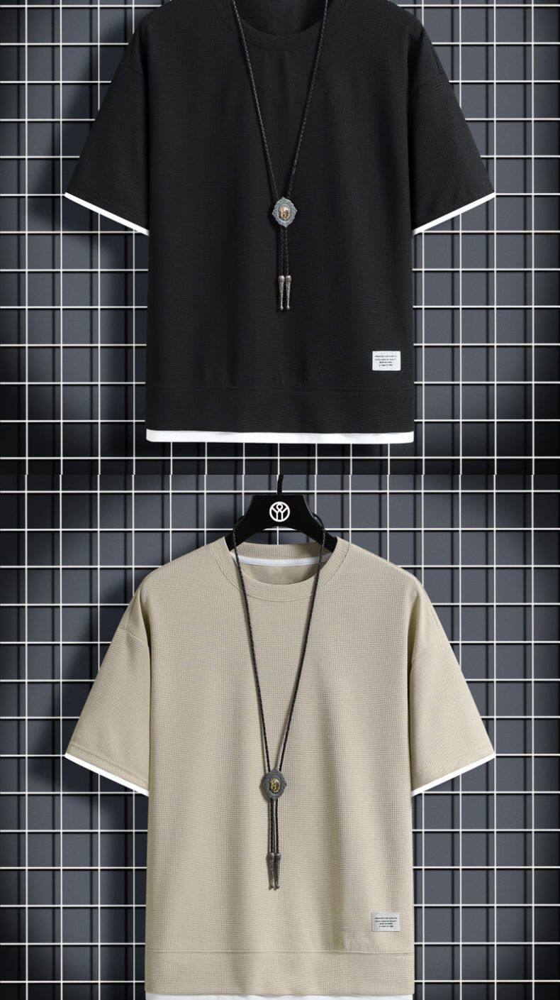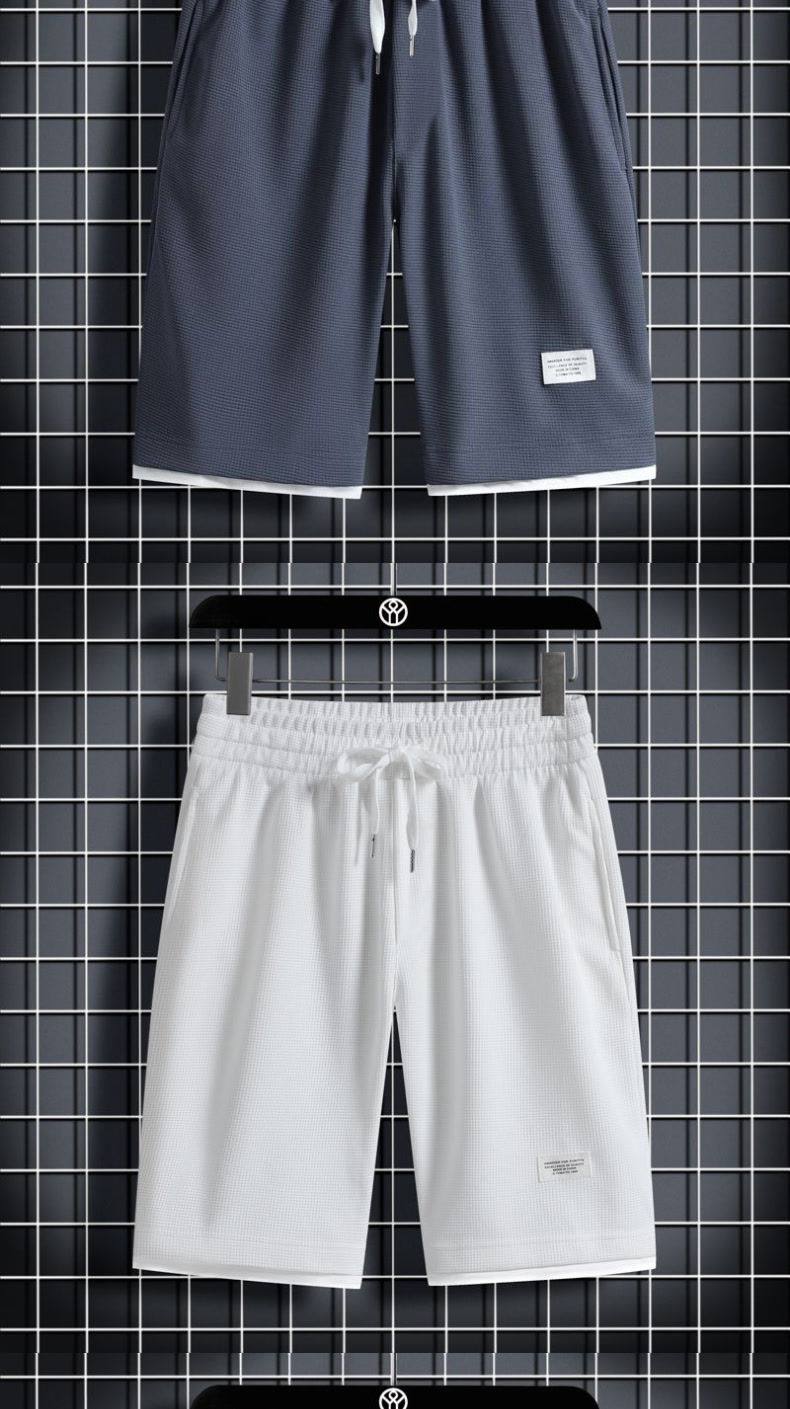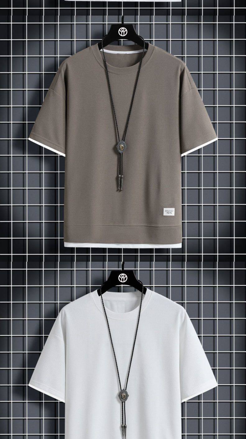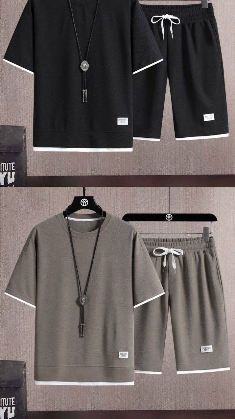 Heavyweight waffle suits, men's and women's summer athleisure, loose fakes, two-piece half-sleeved T-shirts, and a set of five-quarter shorts