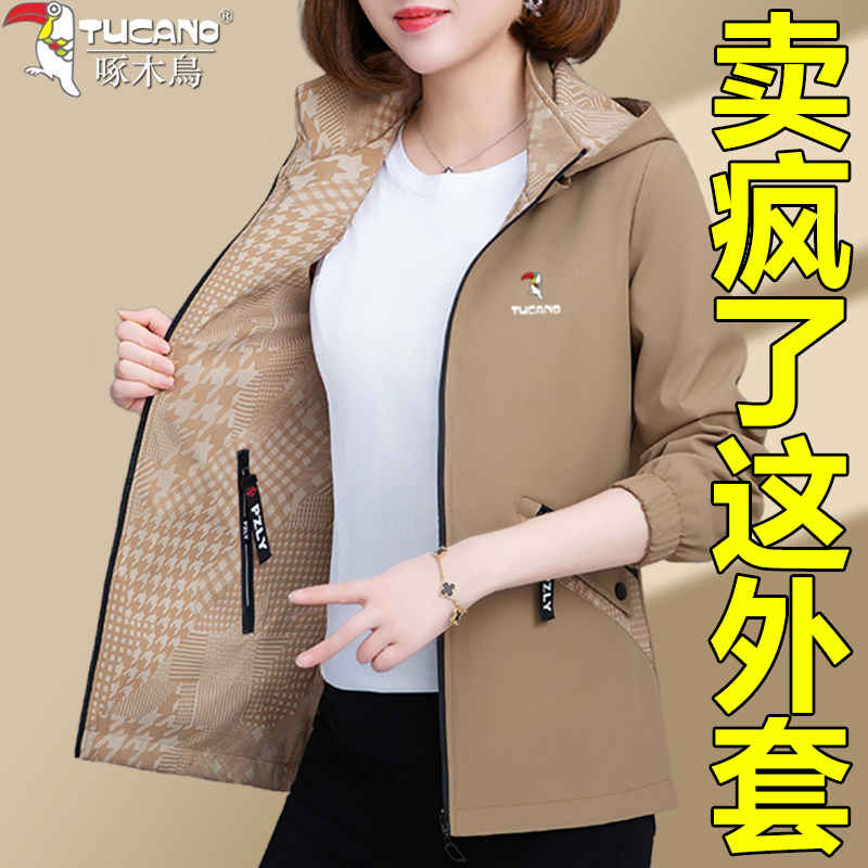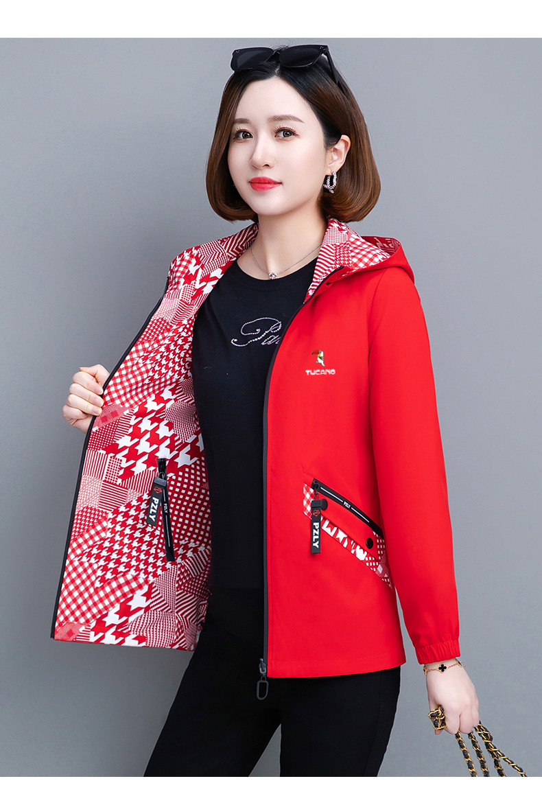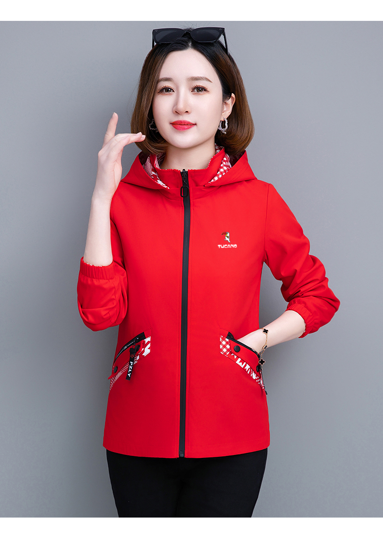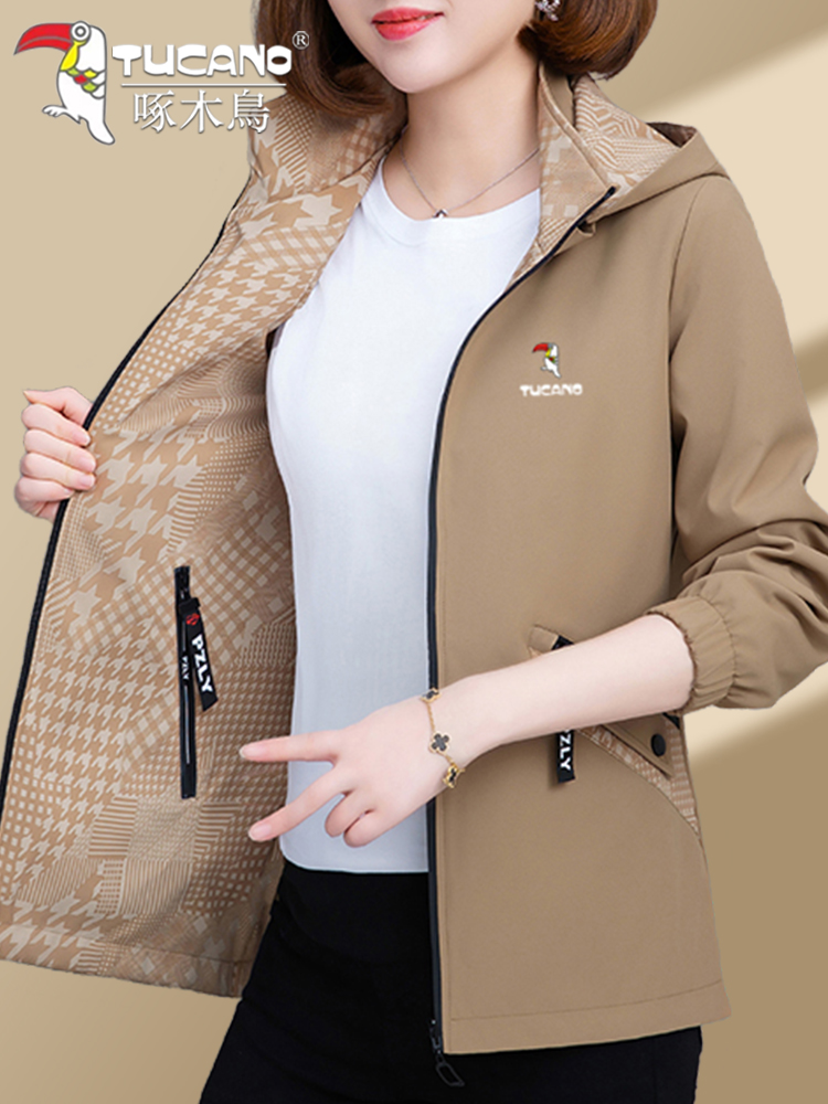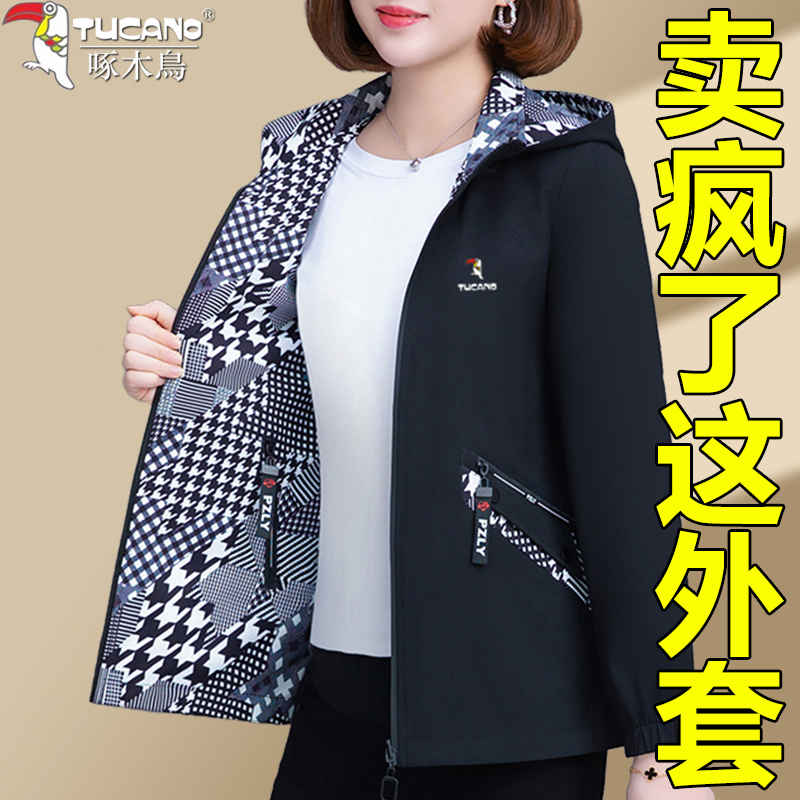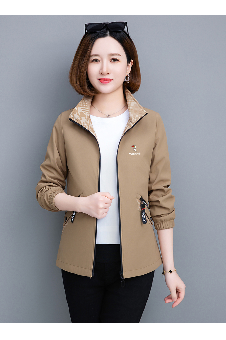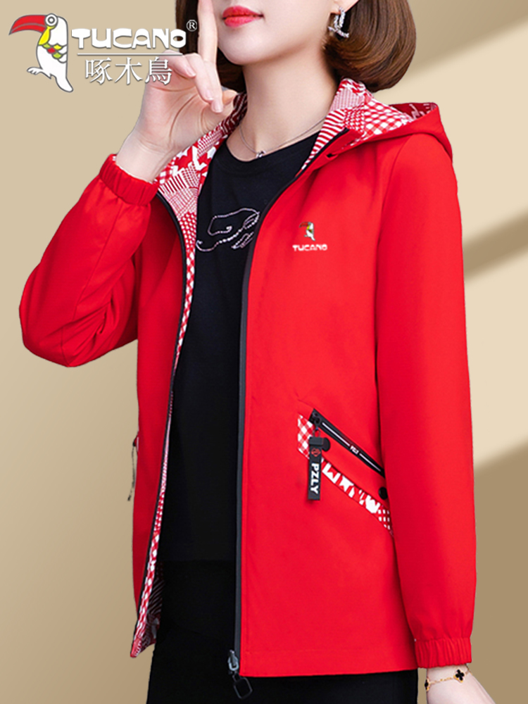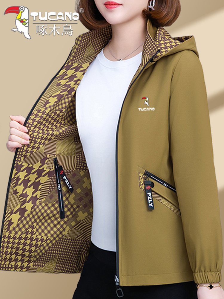 Woodpecker reversible women's short jacket spring and autumn style 2025 new middle-aged and elderly mom windbreaker plus-size jacket