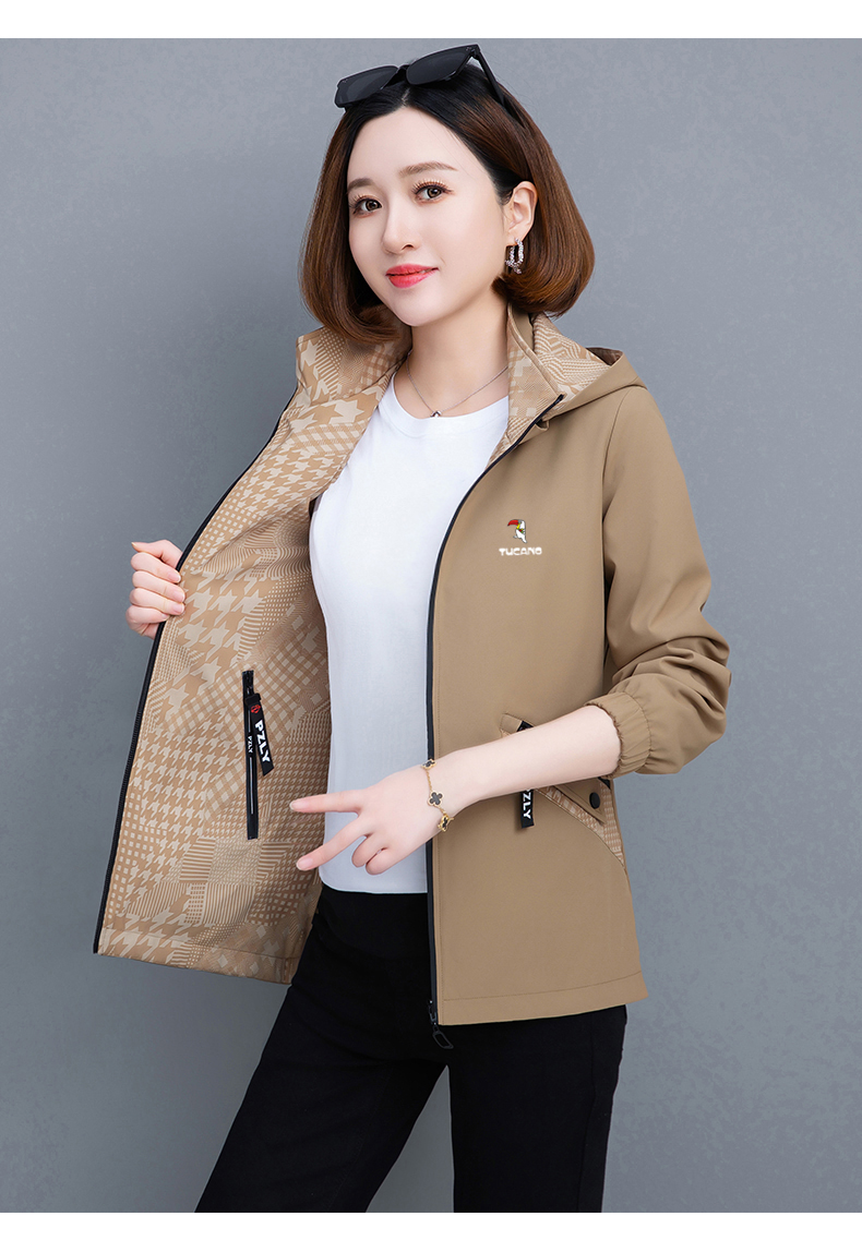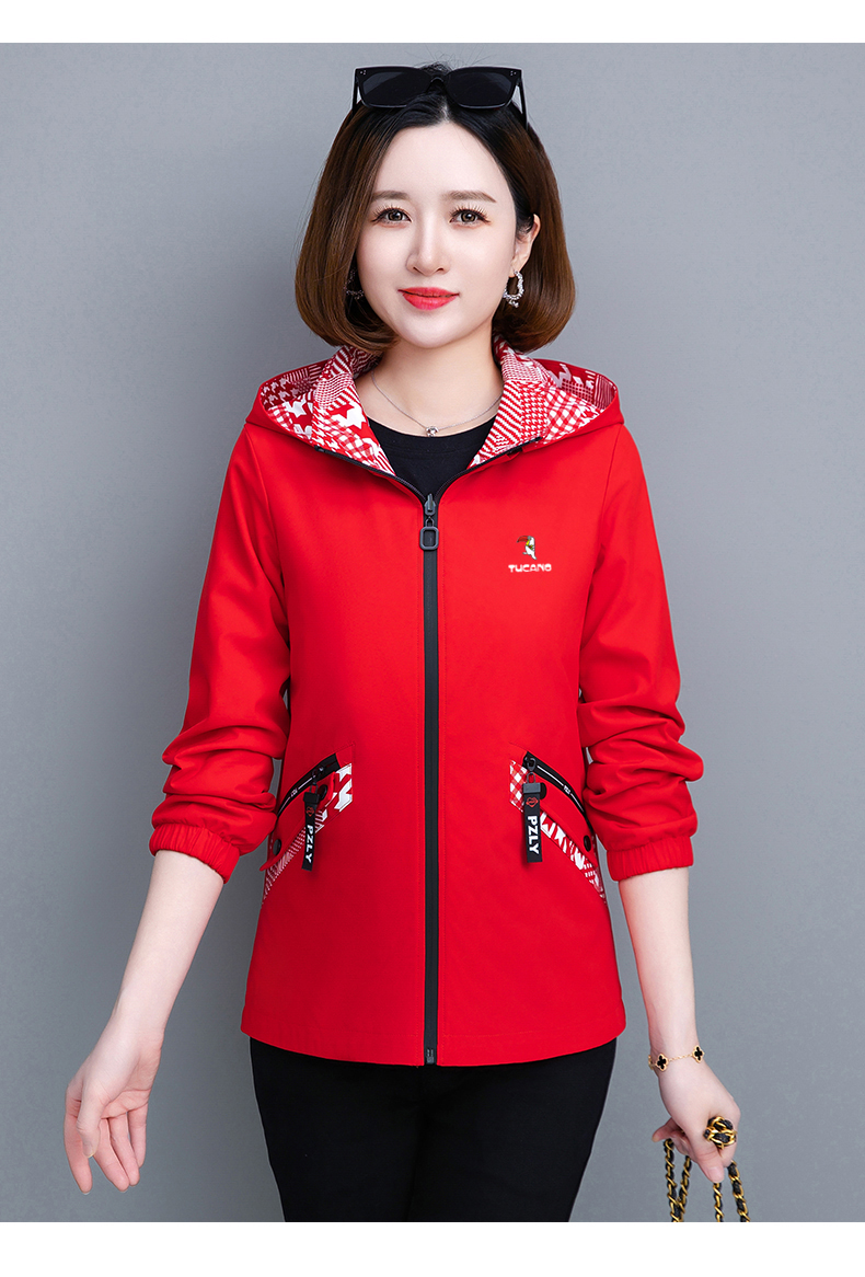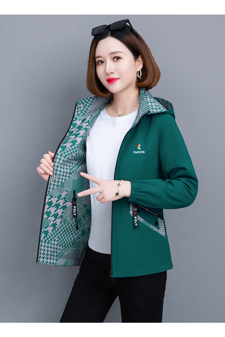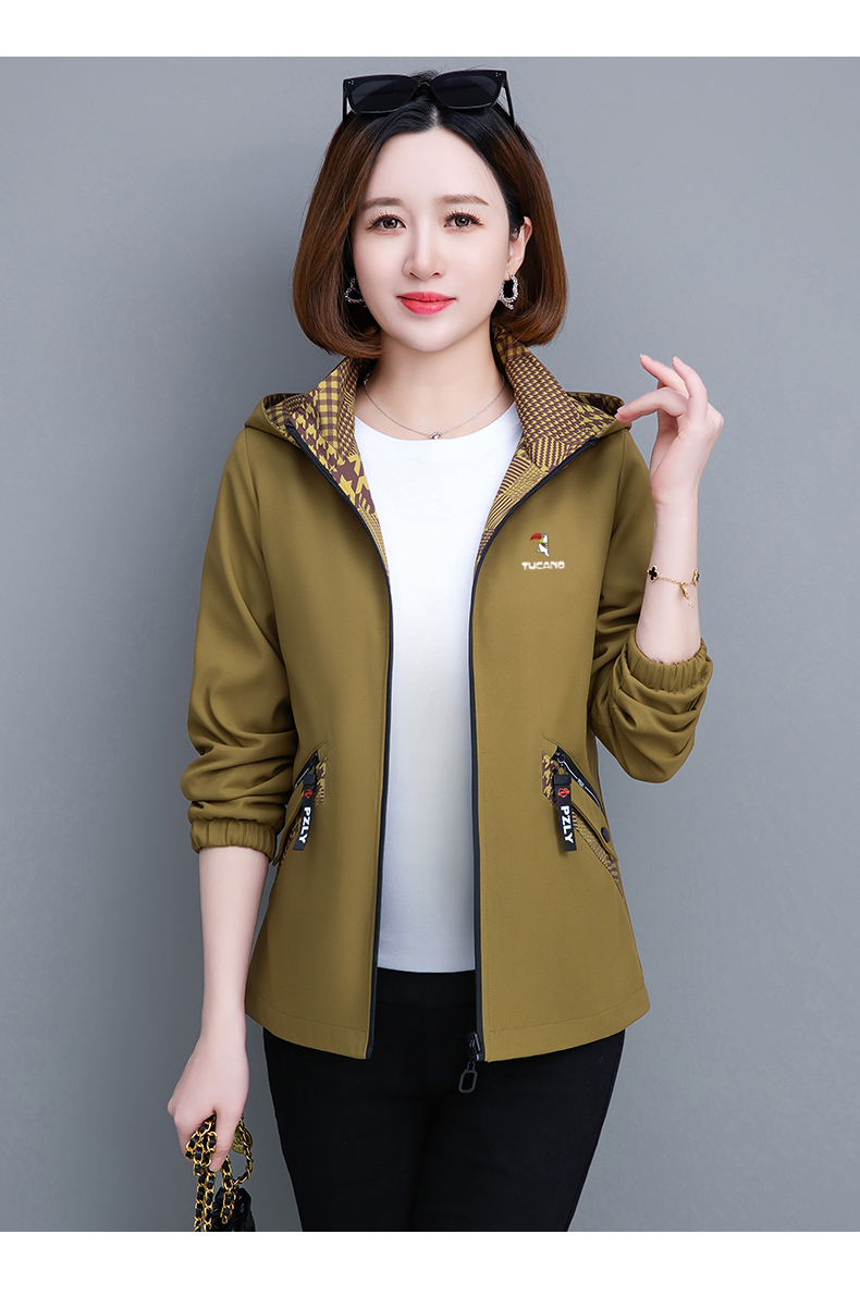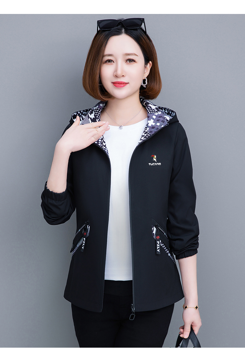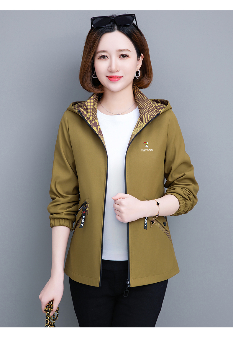 Woodpecker reversible women's short jacket spring and autumn style 2025 new middle-aged and elderly mom windbreaker plus-size jacket