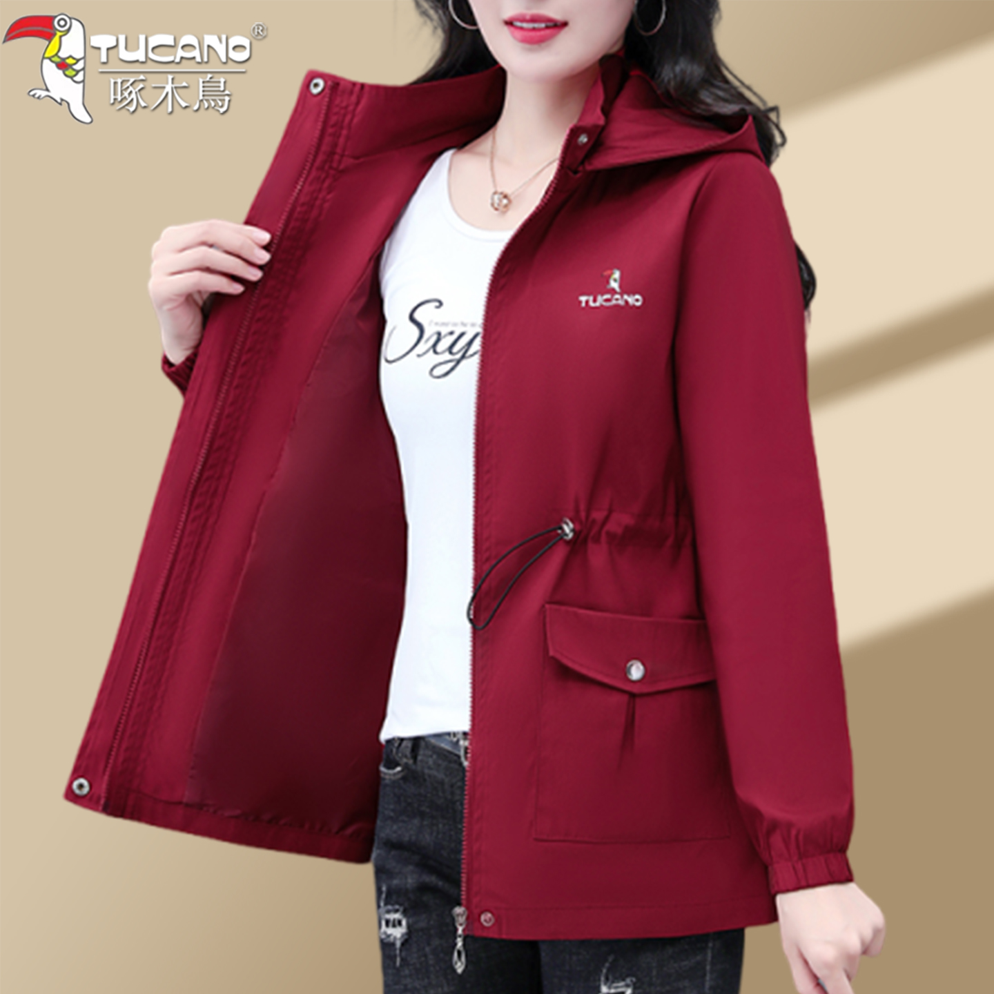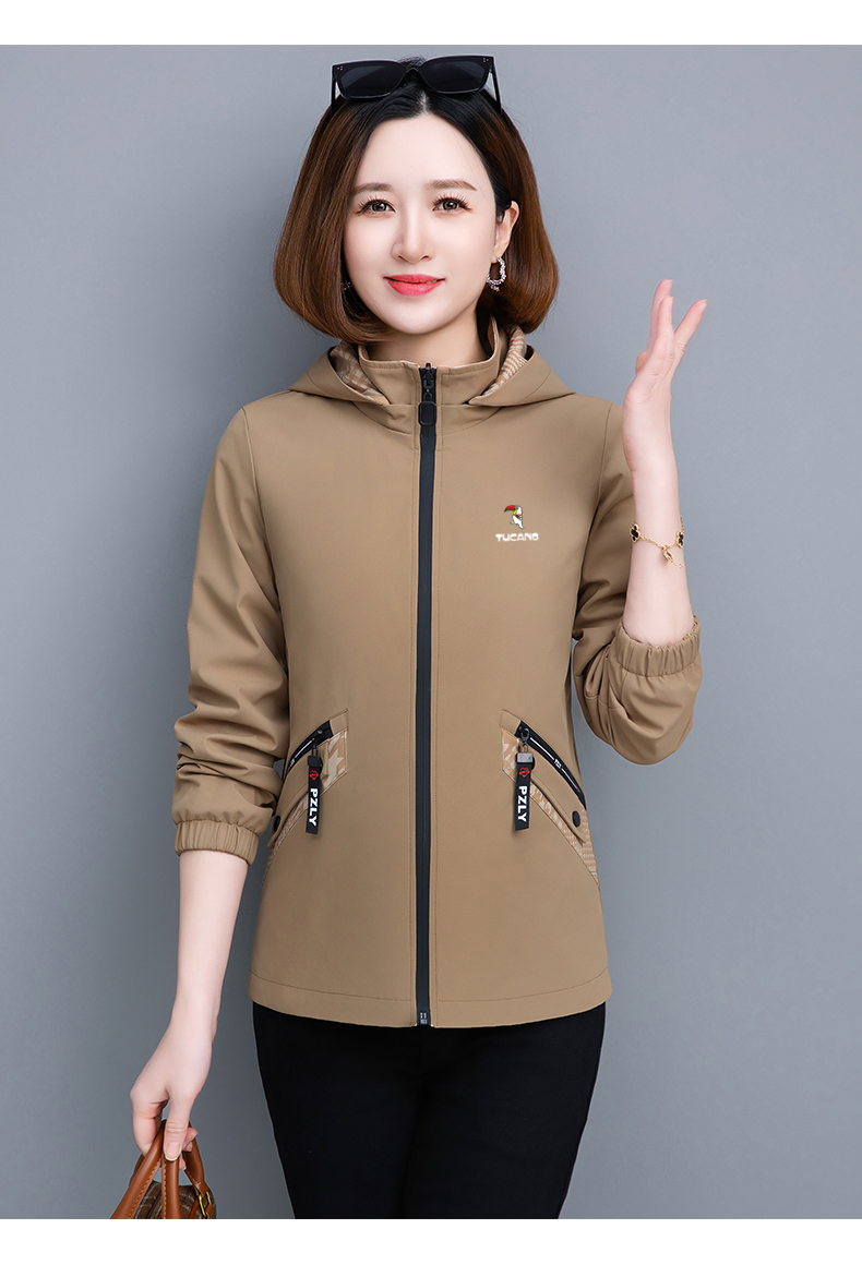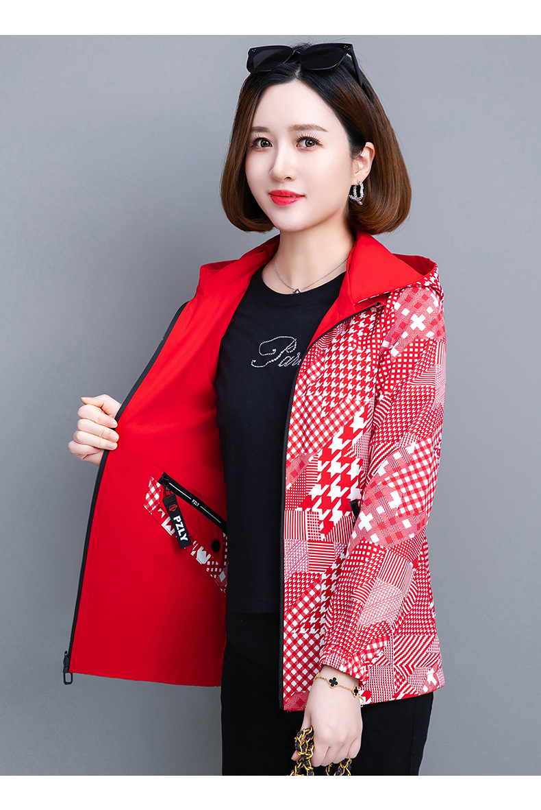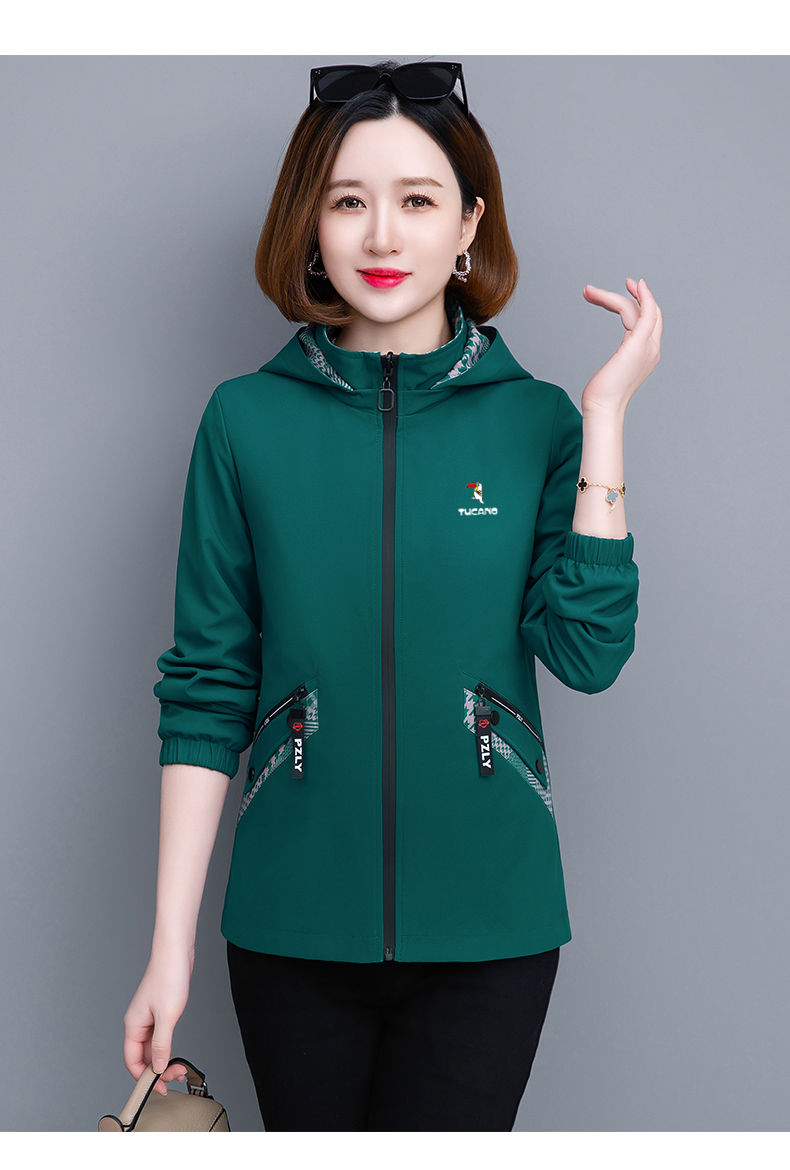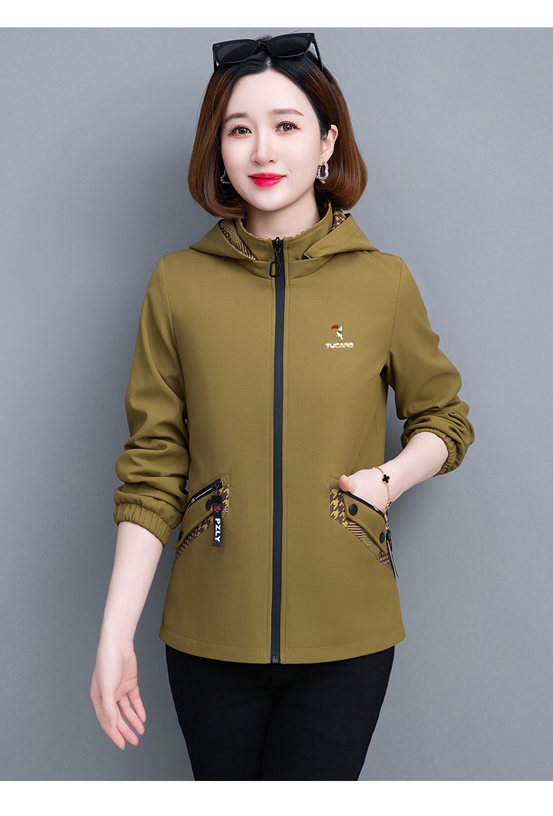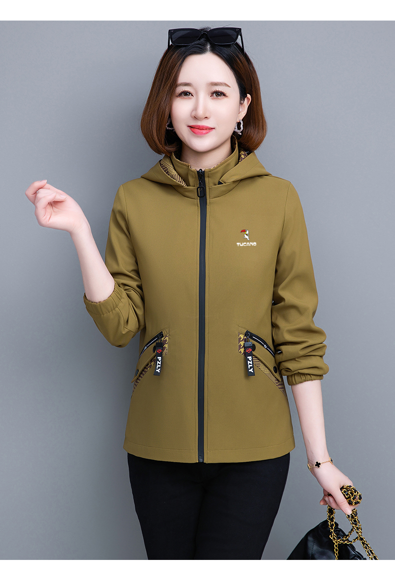 Woodpecker reversible women's short jacket spring and autumn style 2025 new middle-aged and elderly mom windbreaker plus-size jacket