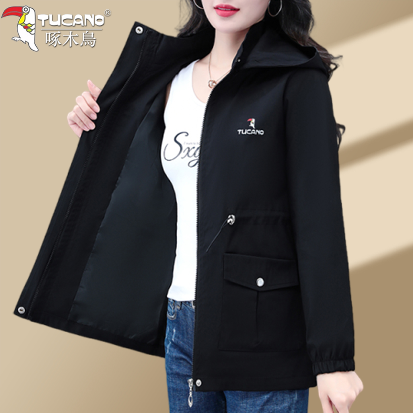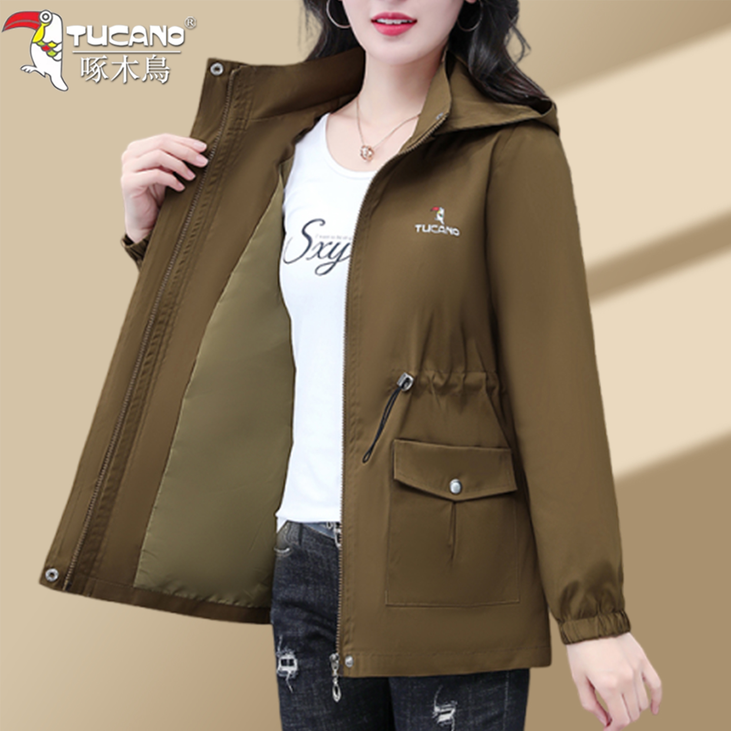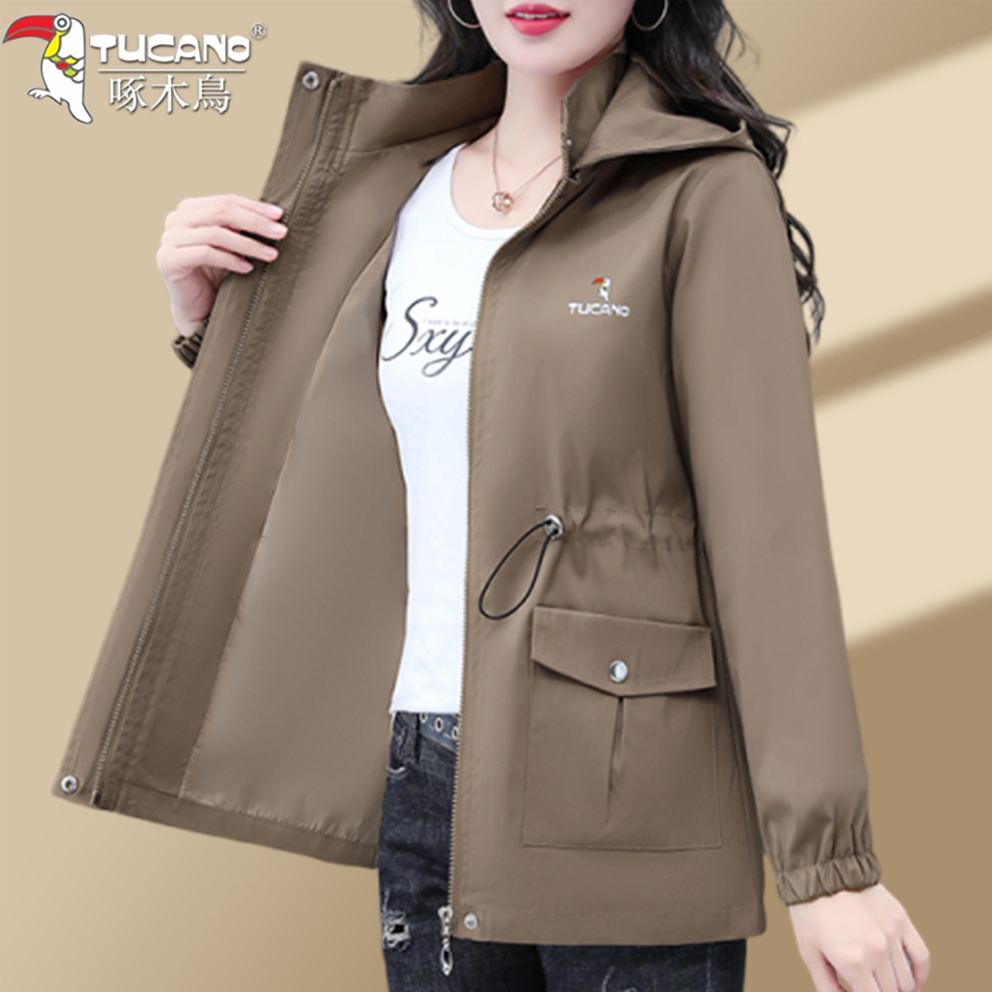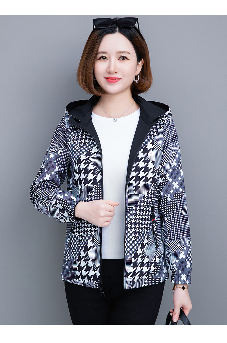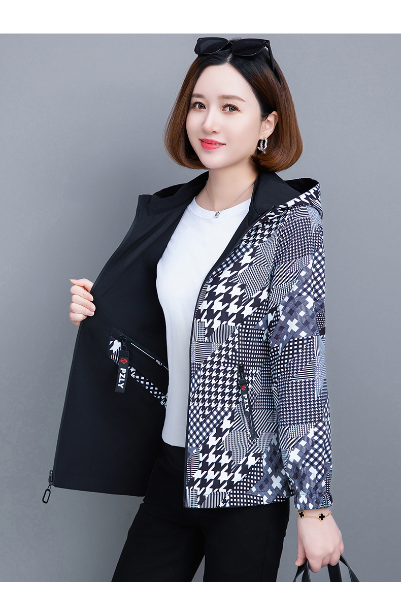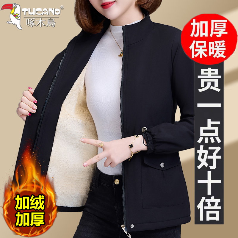 Woodpecker reversible women's short jacket spring and autumn style 2025 new middle-aged and elderly mom windbreaker plus-size jacket
