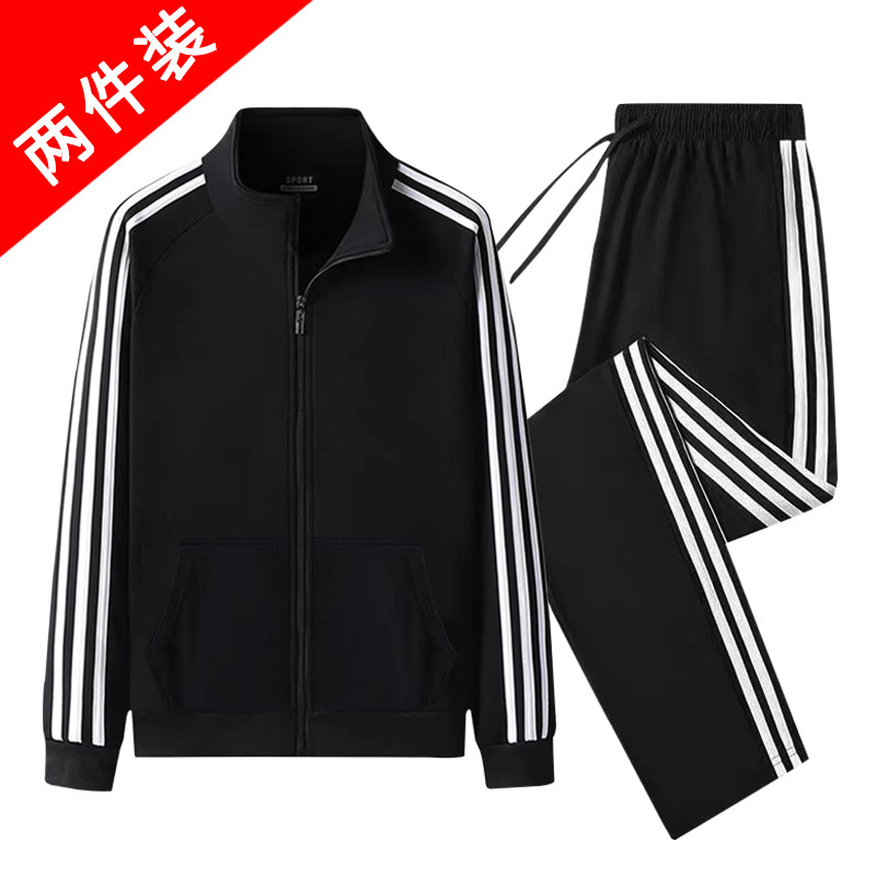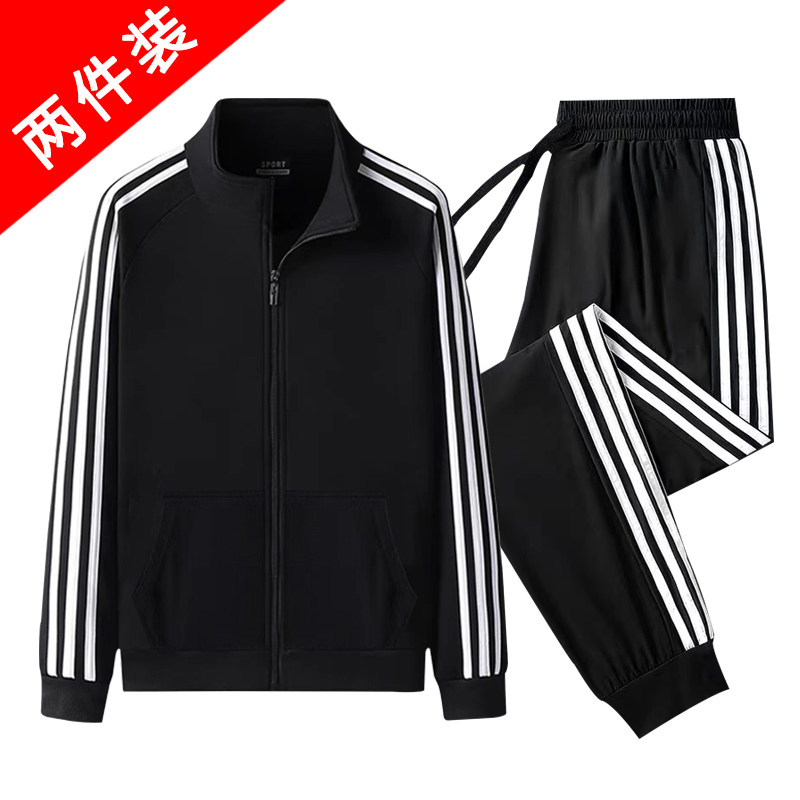 Spring and Autumn Sportswear Set Men's Stand-Up Collar Running Jacket Work Jacket Running Outdoor Sports Leisure Two-Piece Set