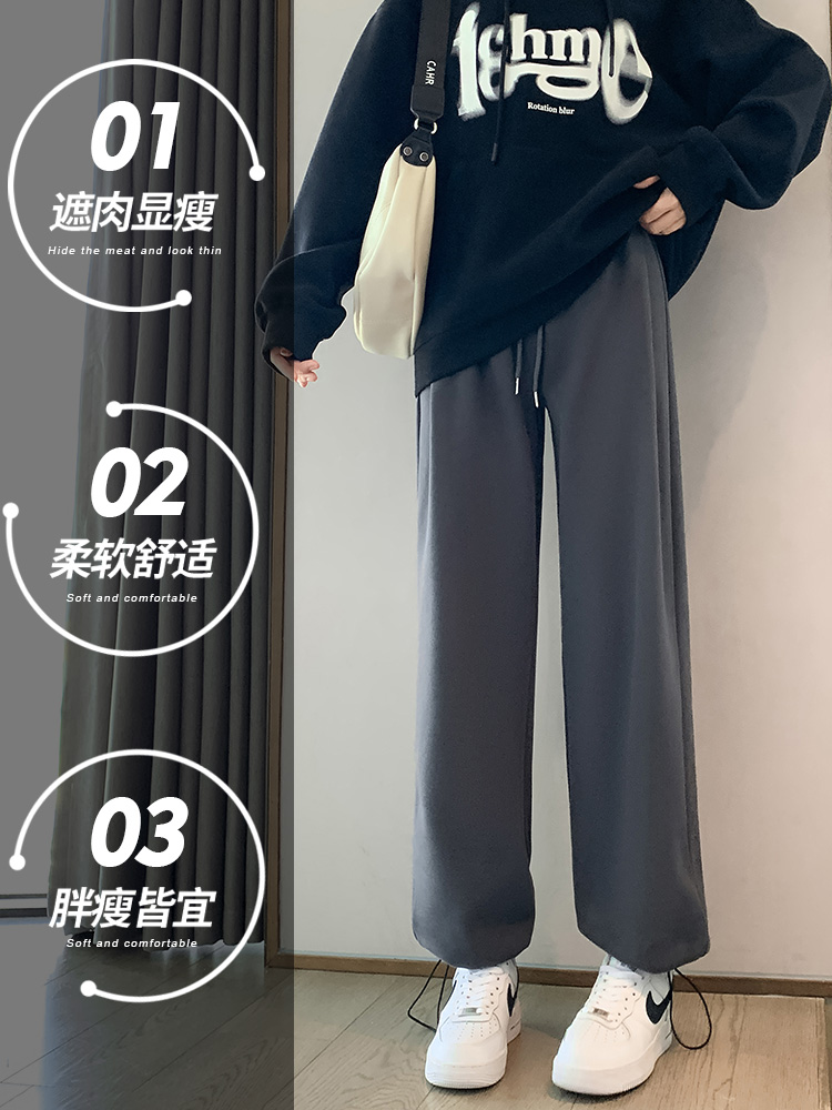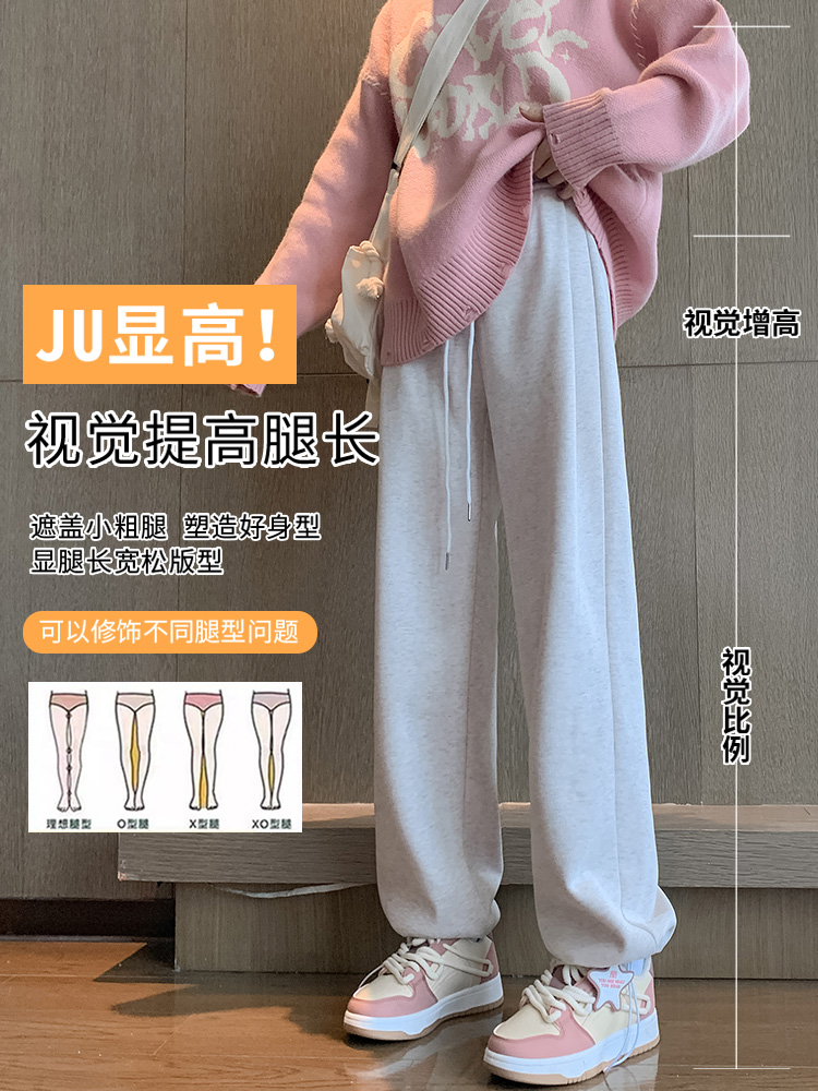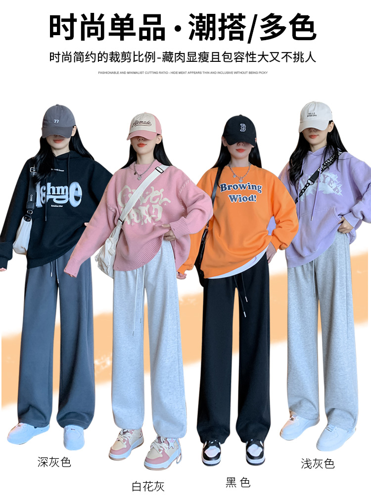Sweatpants Women's Spring and Autumn 2025 new high-waisted casual loose straight American fleece wide-leg white gray sweatshirt pants
