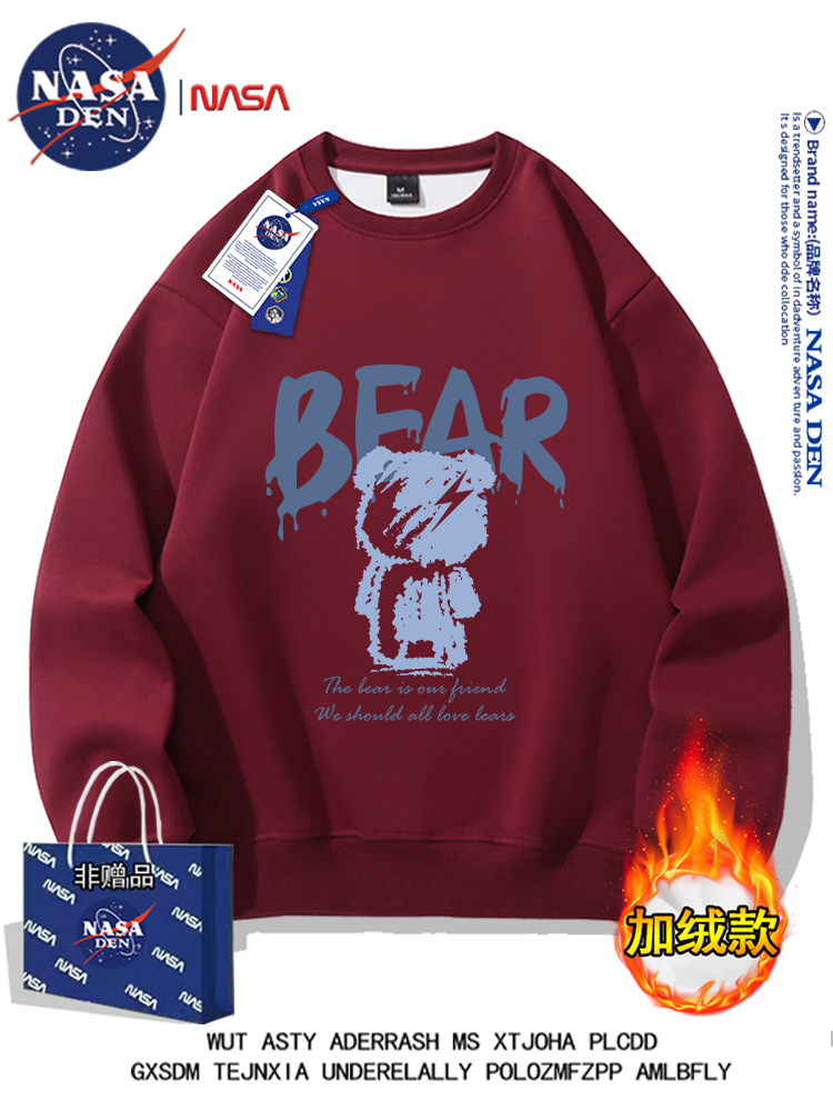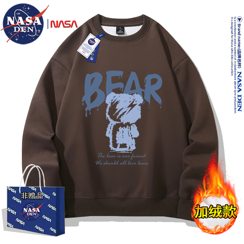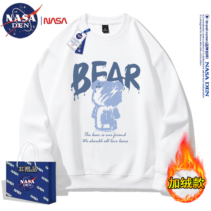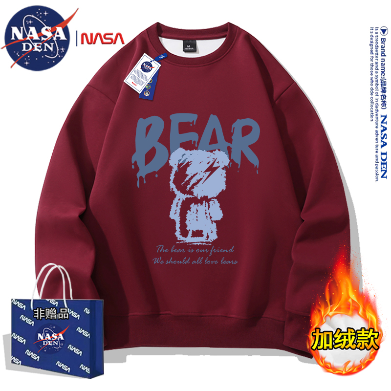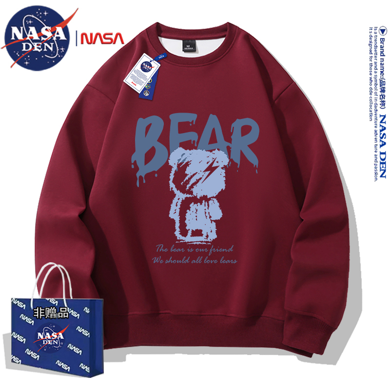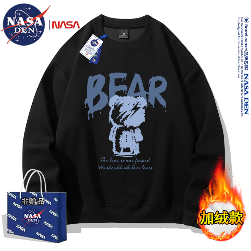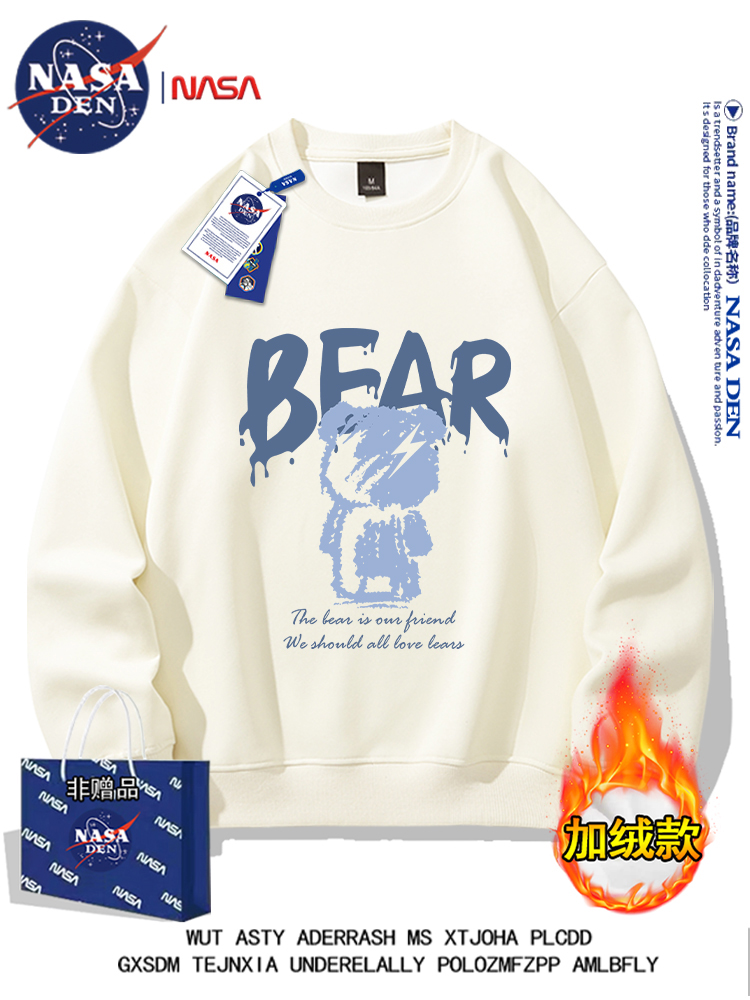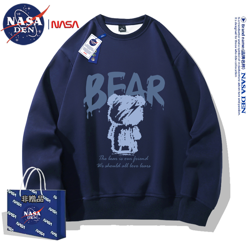NASA co-branded 2024 Fall and Winter Crewneck Sweatshirt Men's Loose Print Dropped Shoulder Sleeves Fleece Thicker Jacket NIS