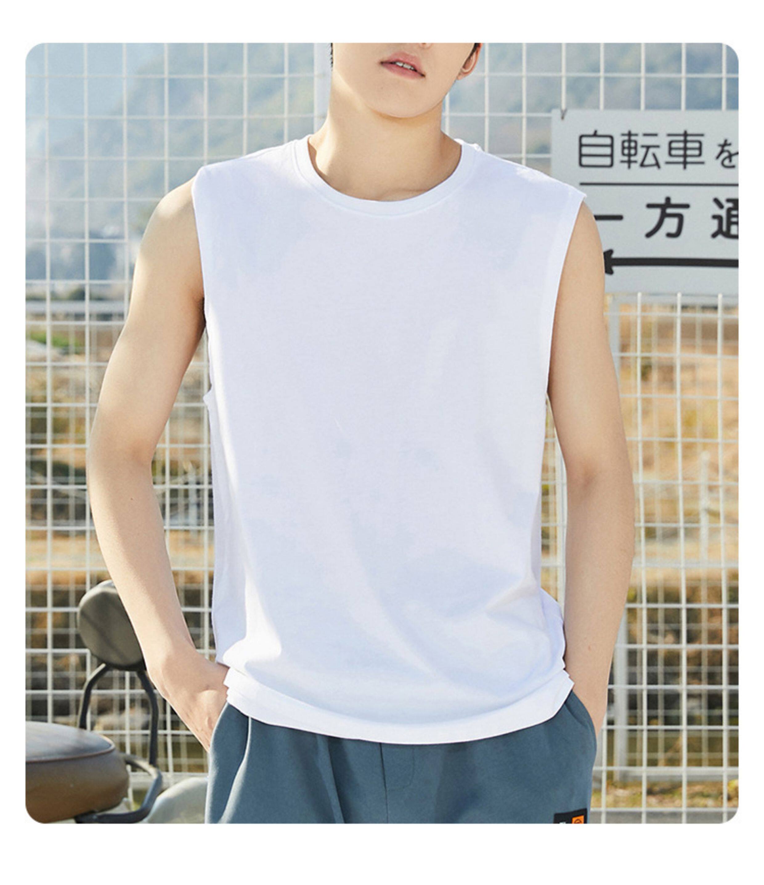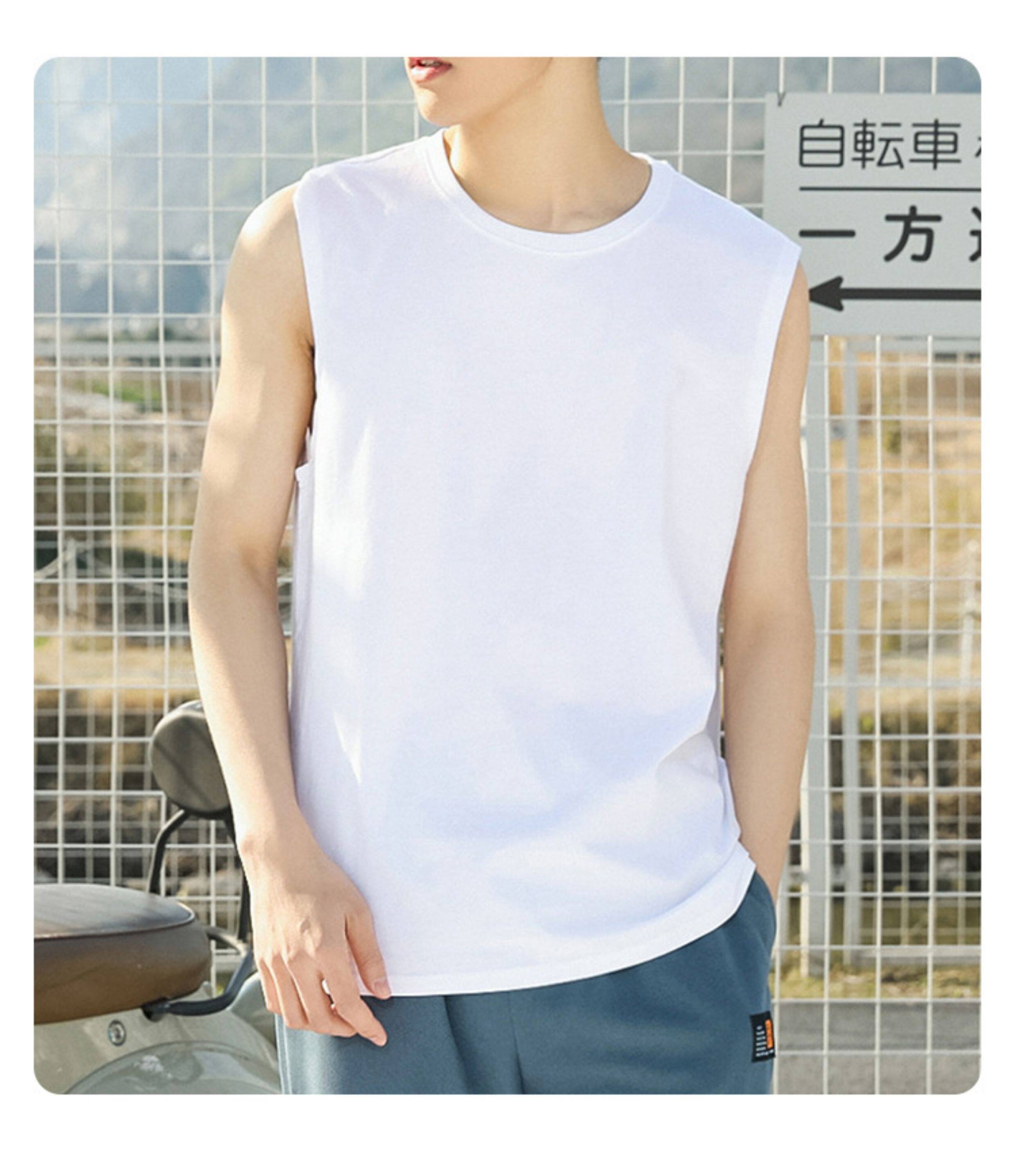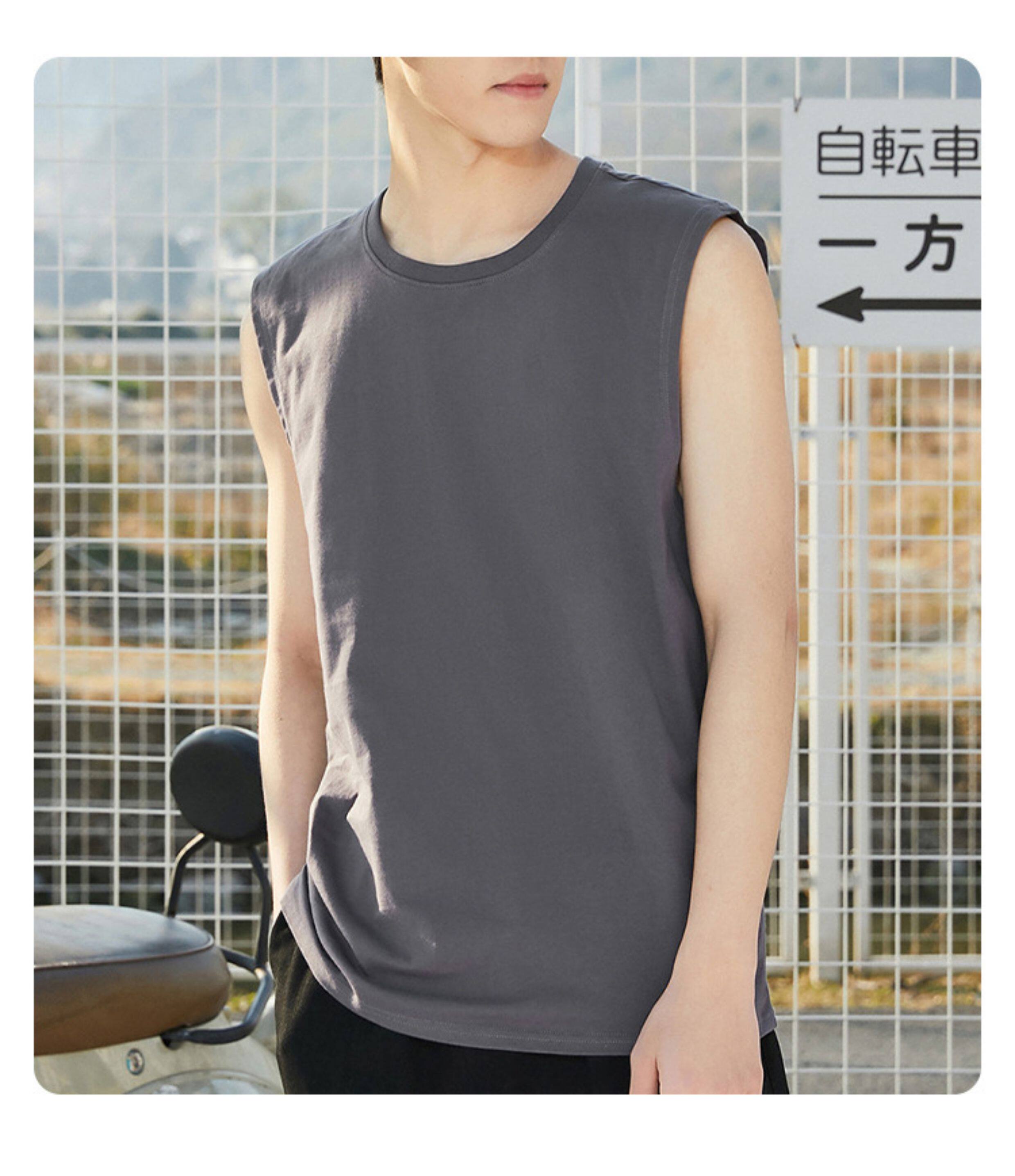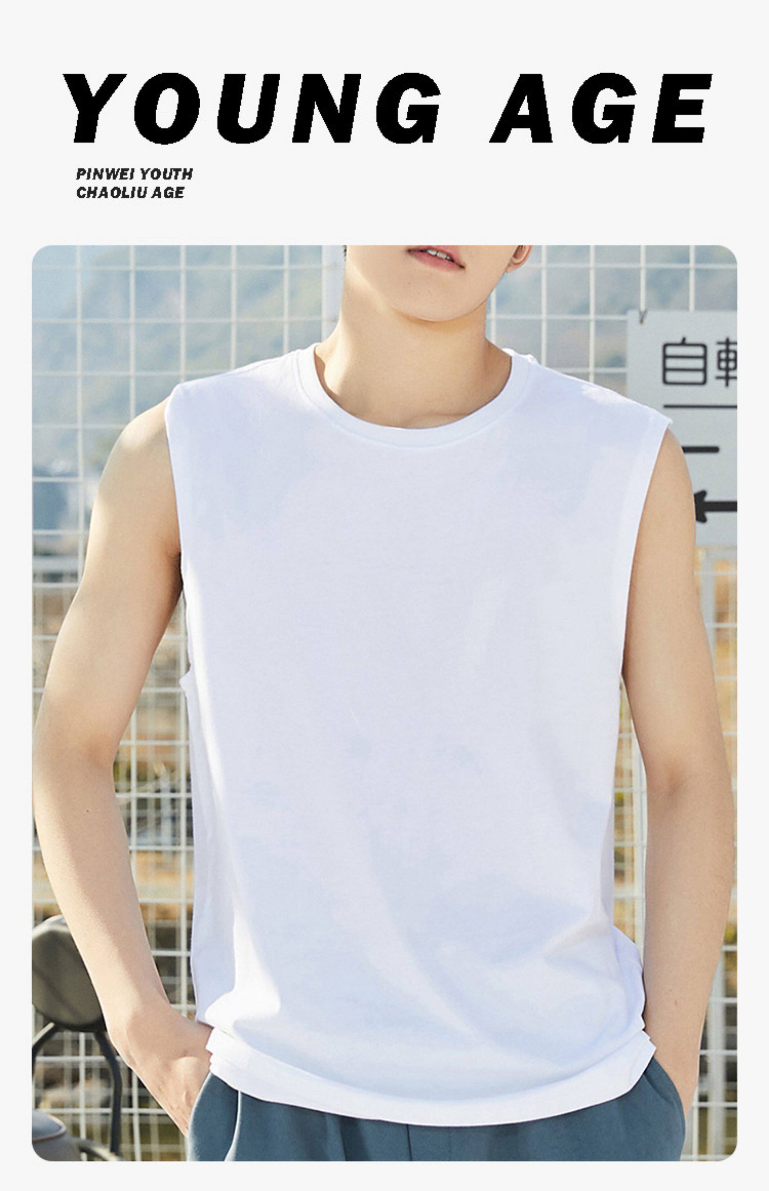 Vest, short-sleeved T-shirt, pure cotton four-season boys' top, casual men's body T-shirt, fitness, shoulder movement, loose