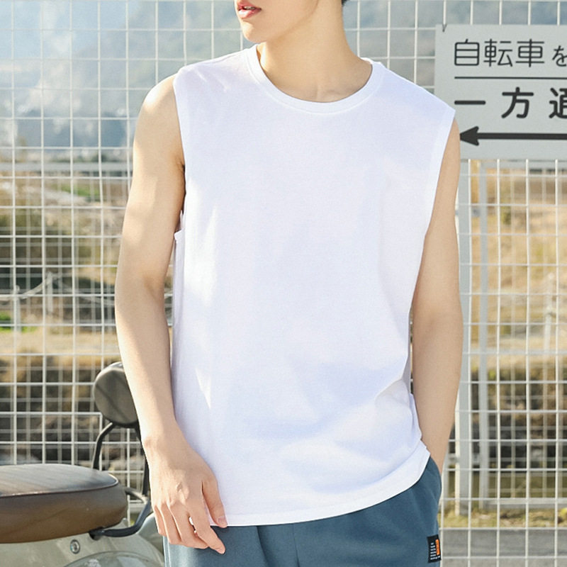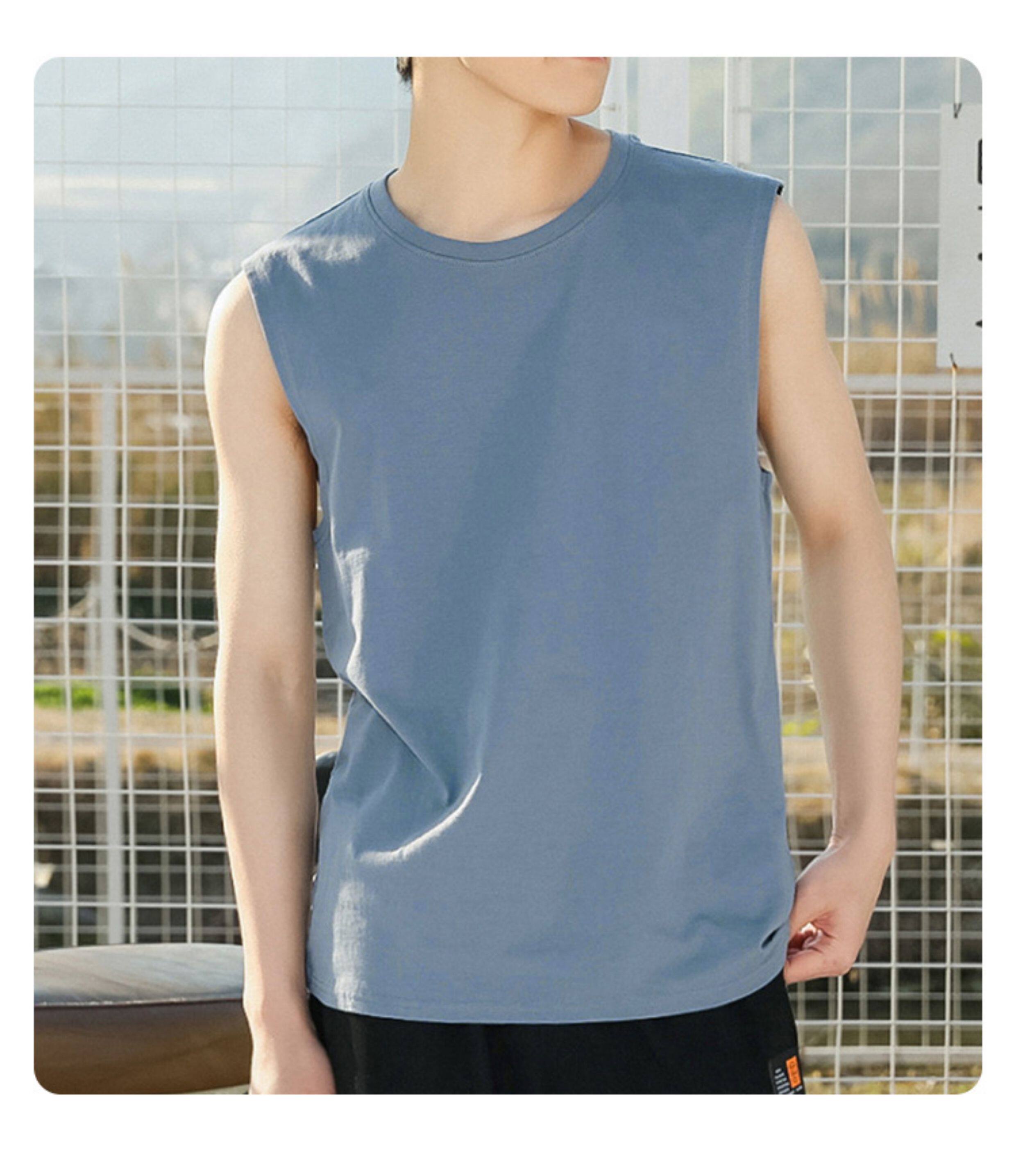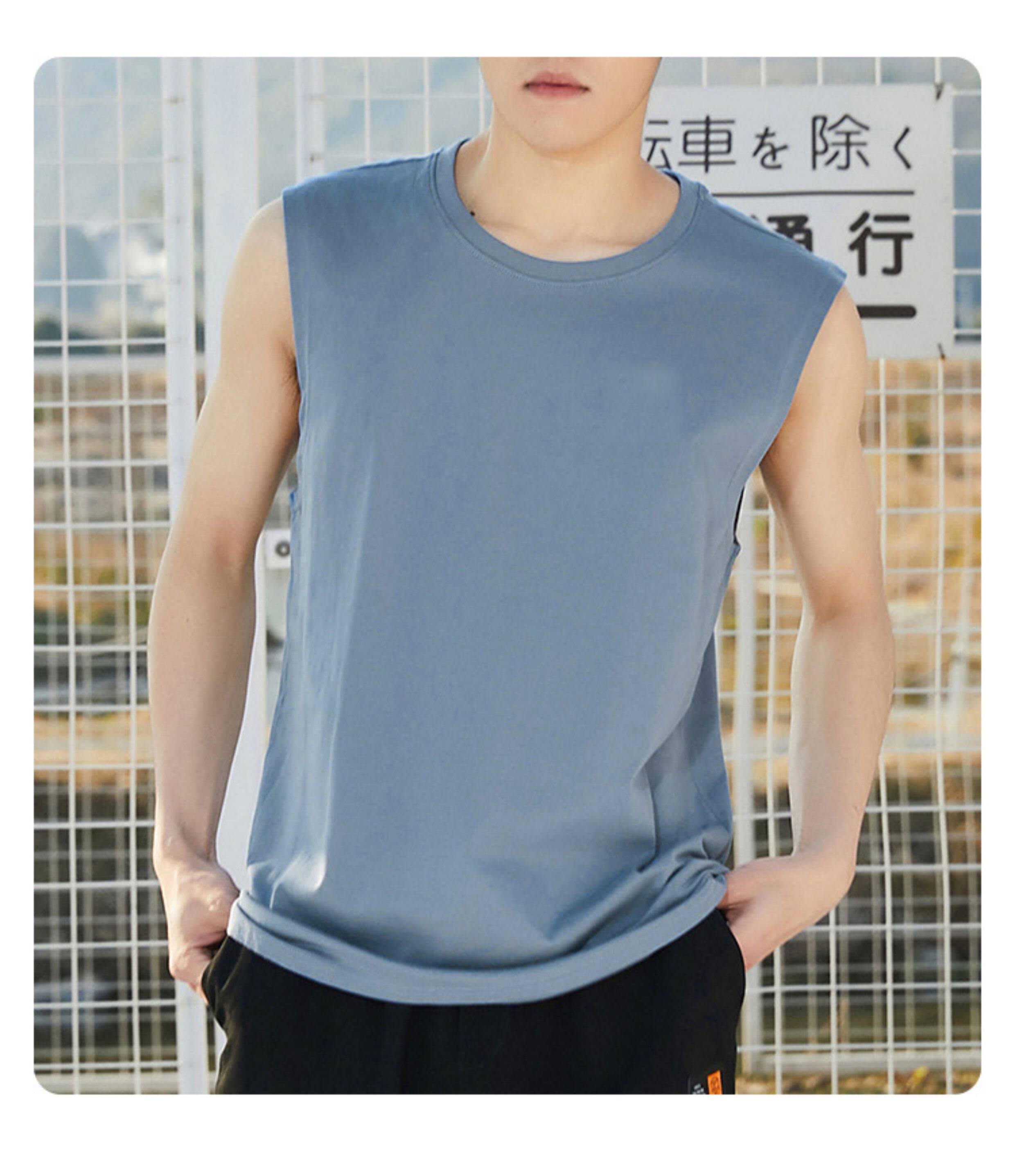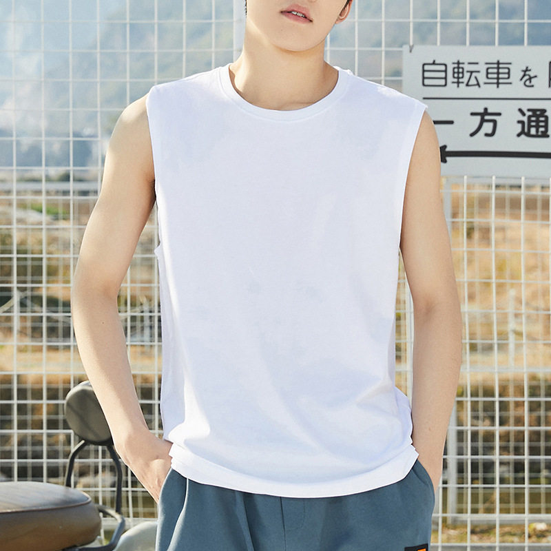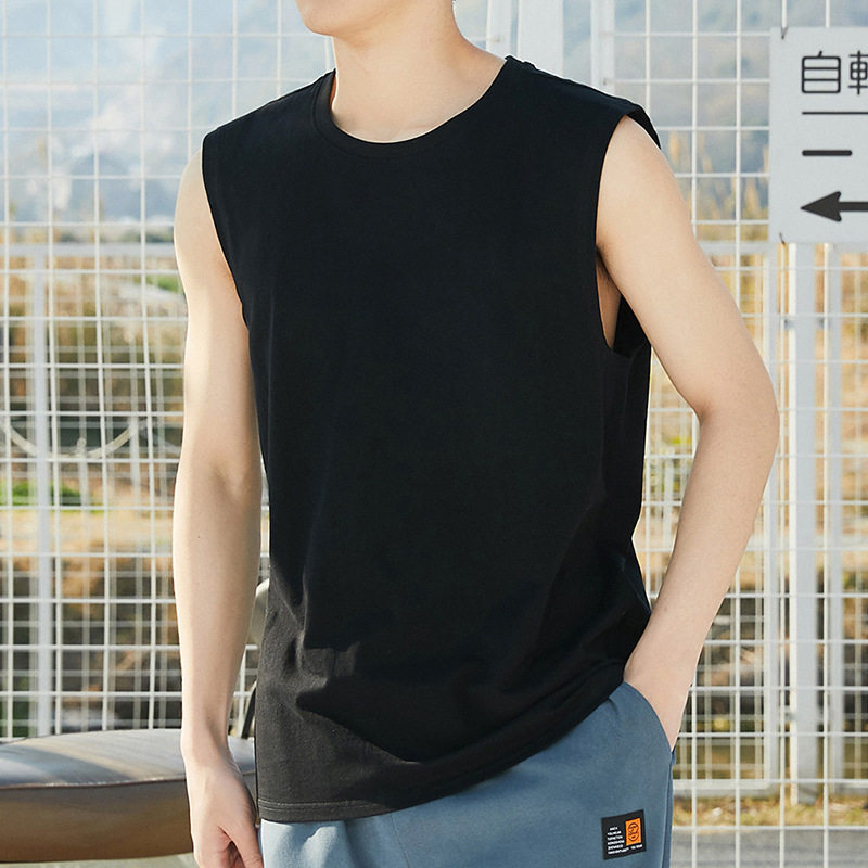 Vest, short-sleeved T-shirt, pure cotton four-season boys' top, casual men's body T-shirt, fitness, shoulder movement, loose