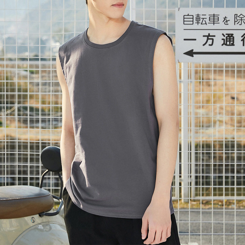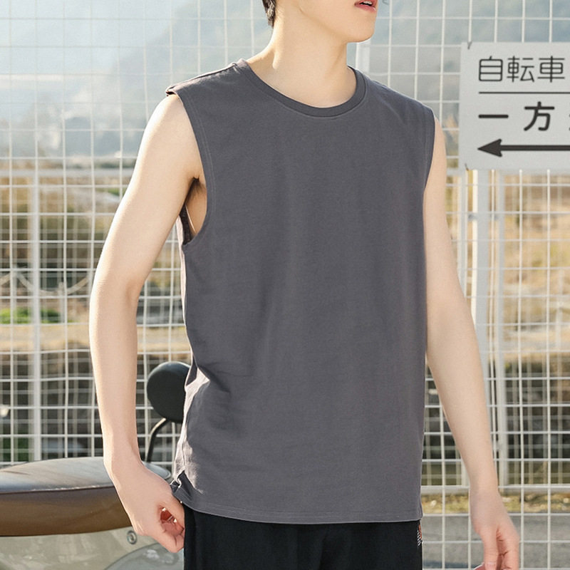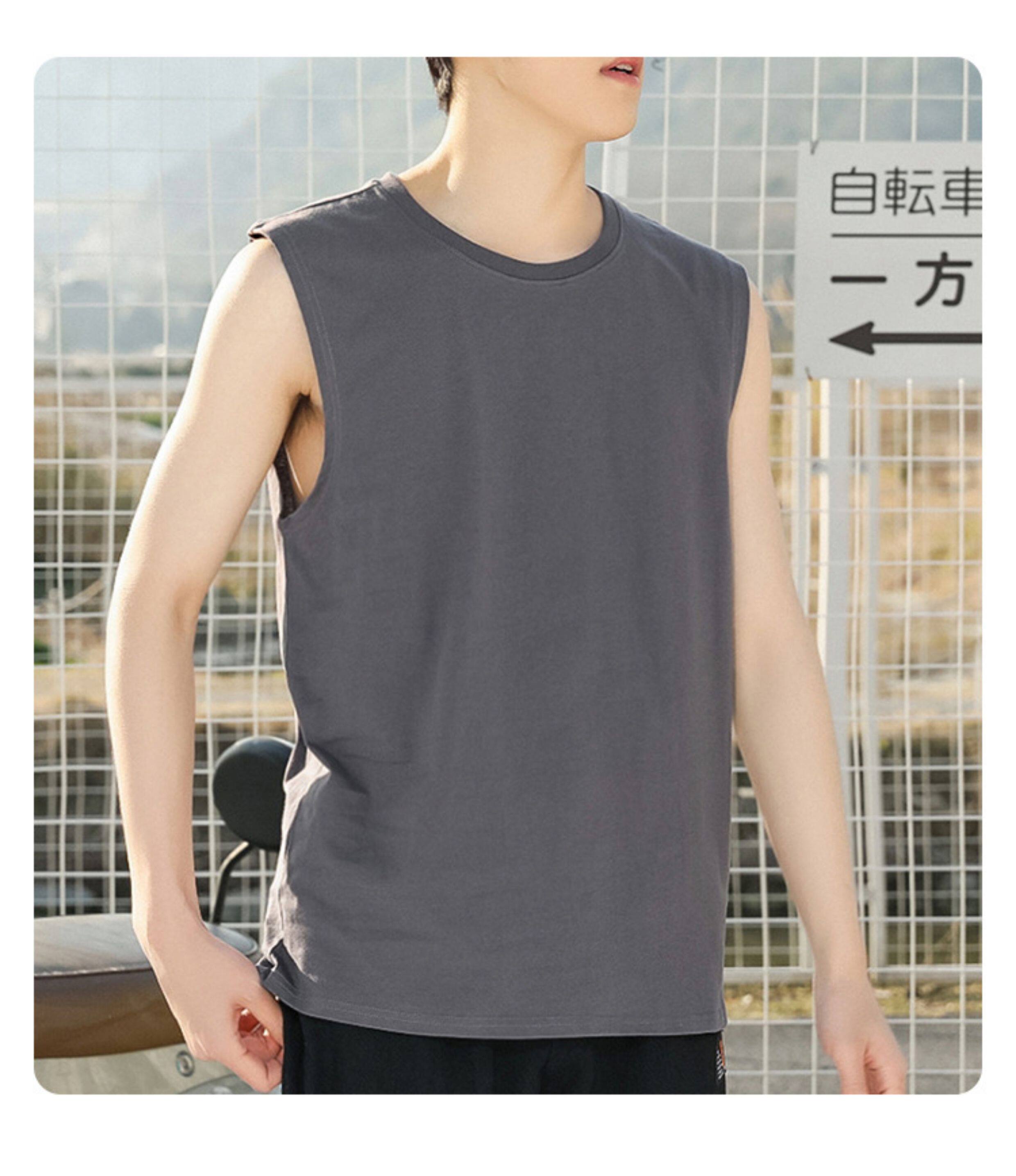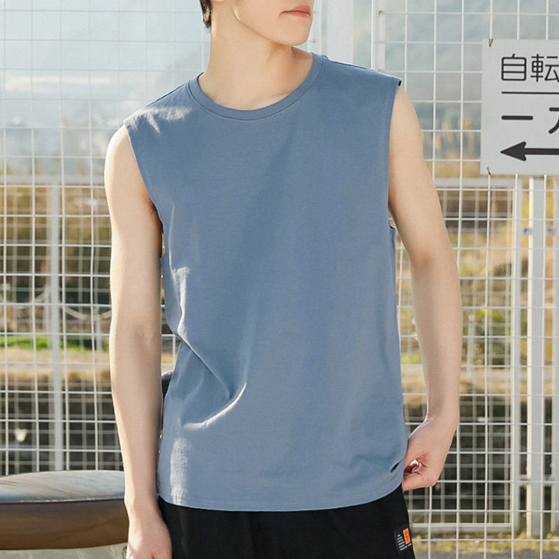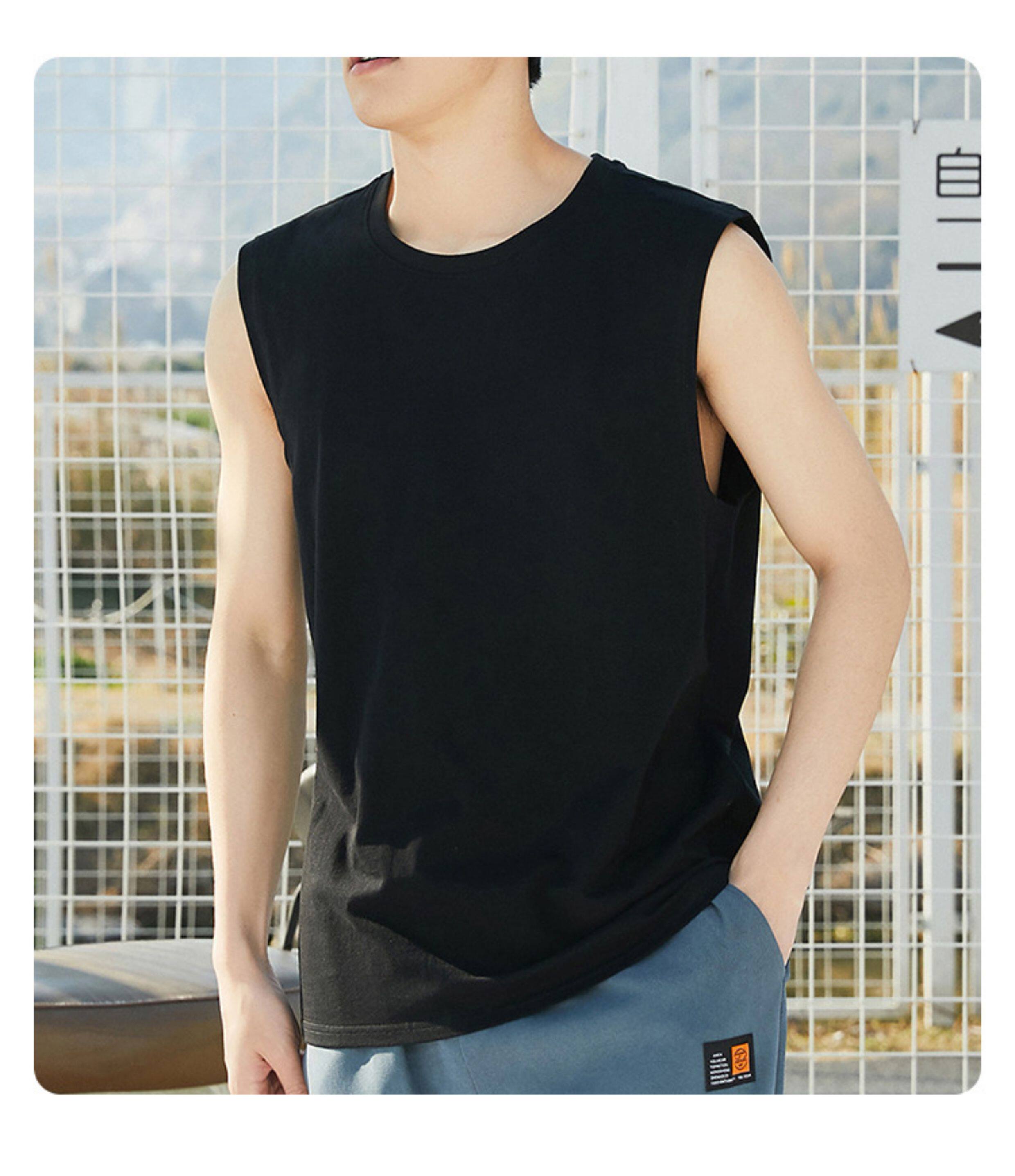 Vest, short-sleeved T-shirt, pure cotton four-season boys' top, casual men's body T-shirt, fitness, shoulder movement, loose
