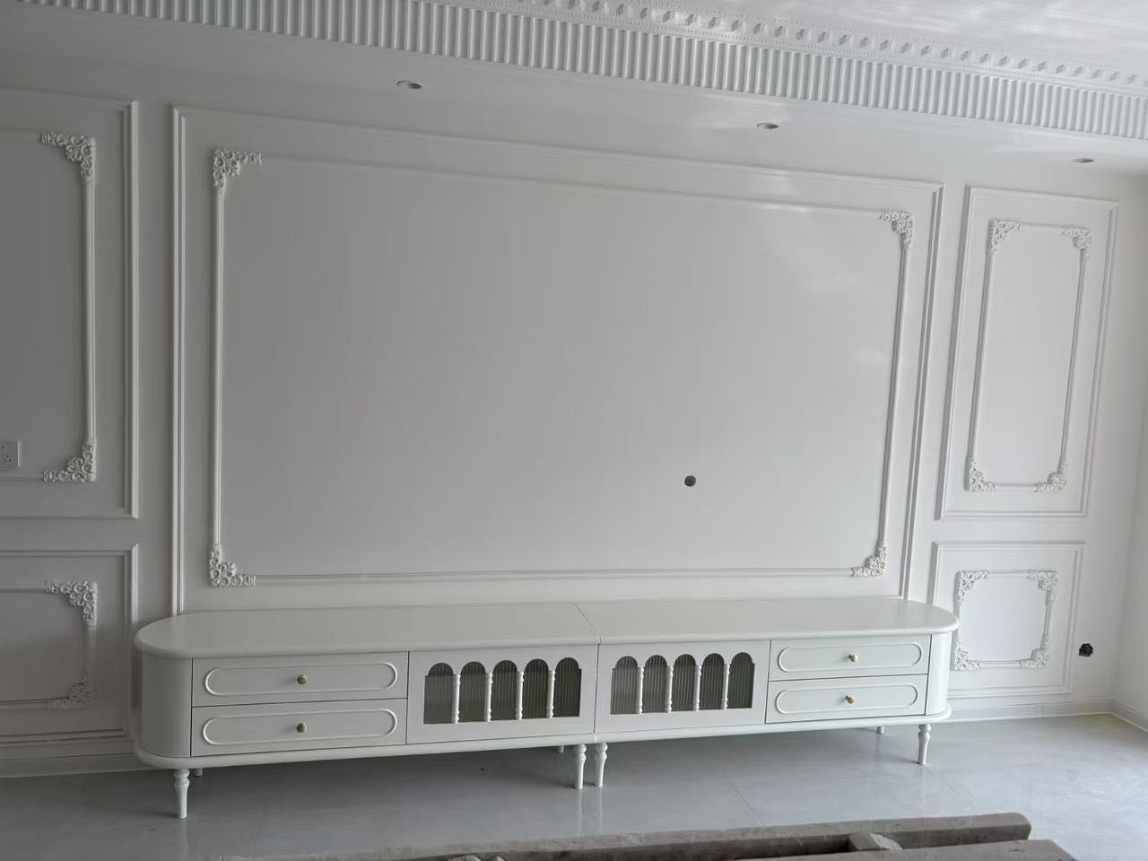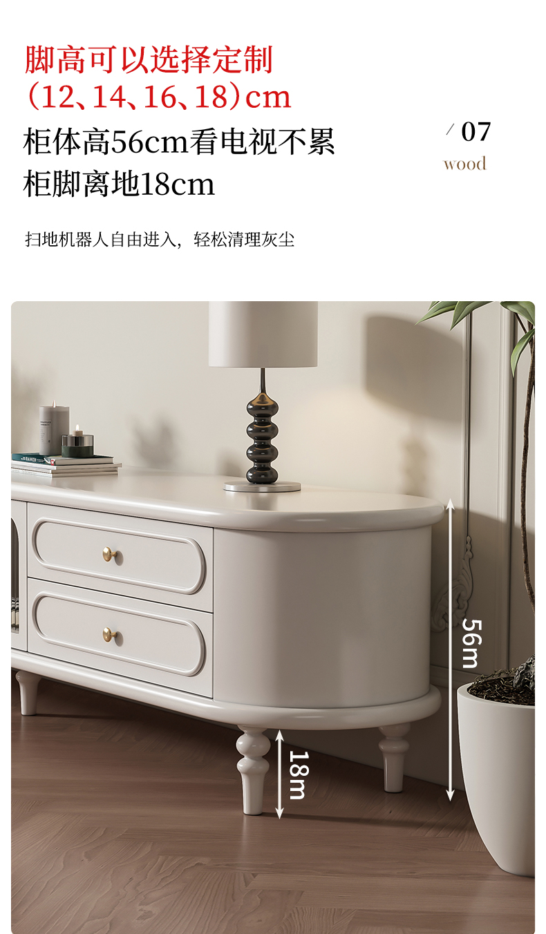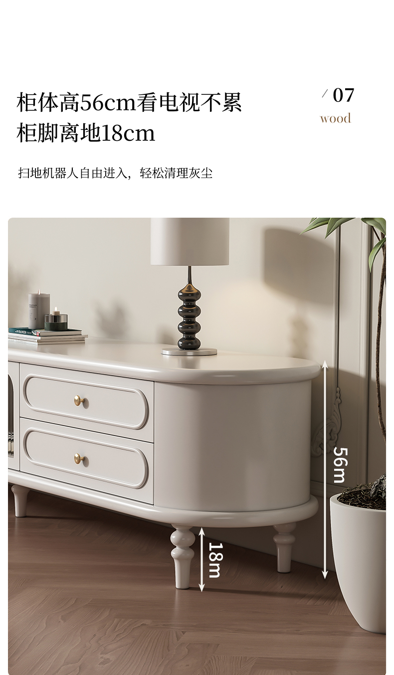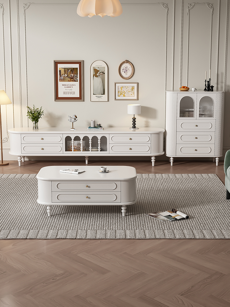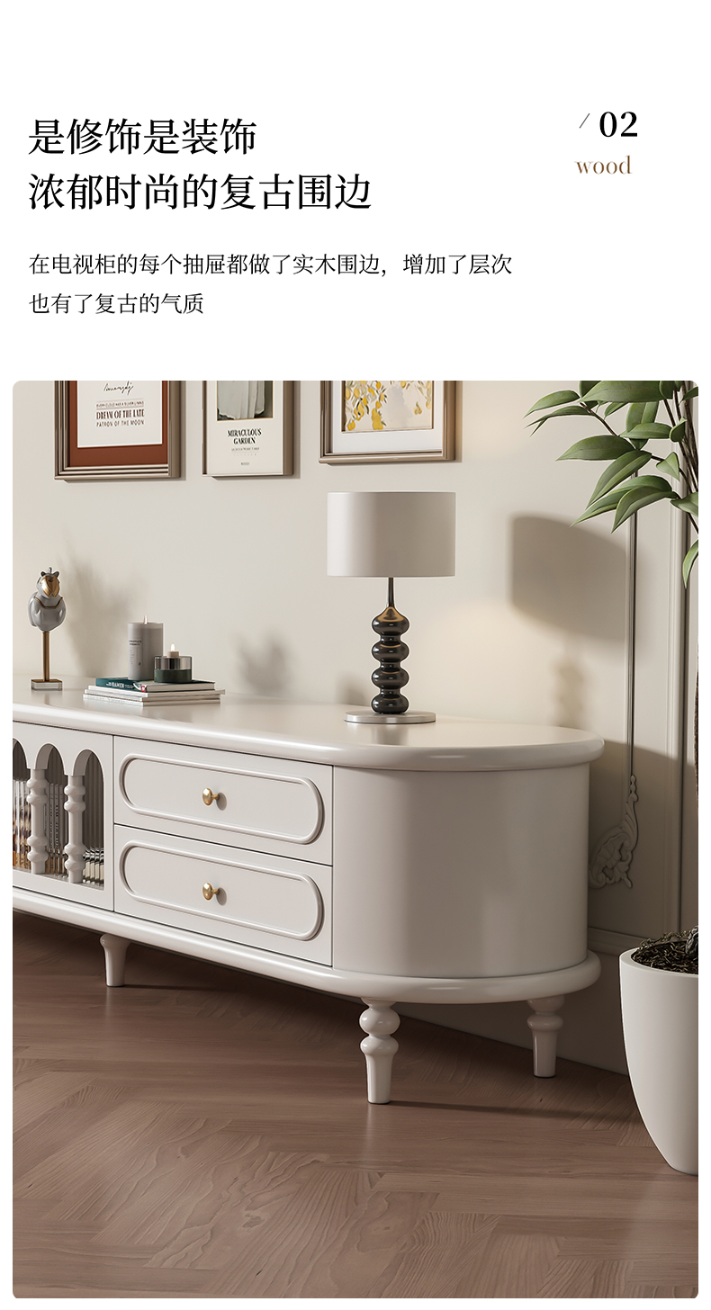 French solid wood TV cabinet, living room, household cream wind TV cabinet, storage cabinet, integrated American white