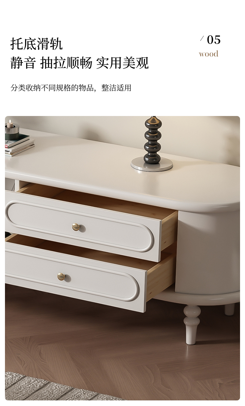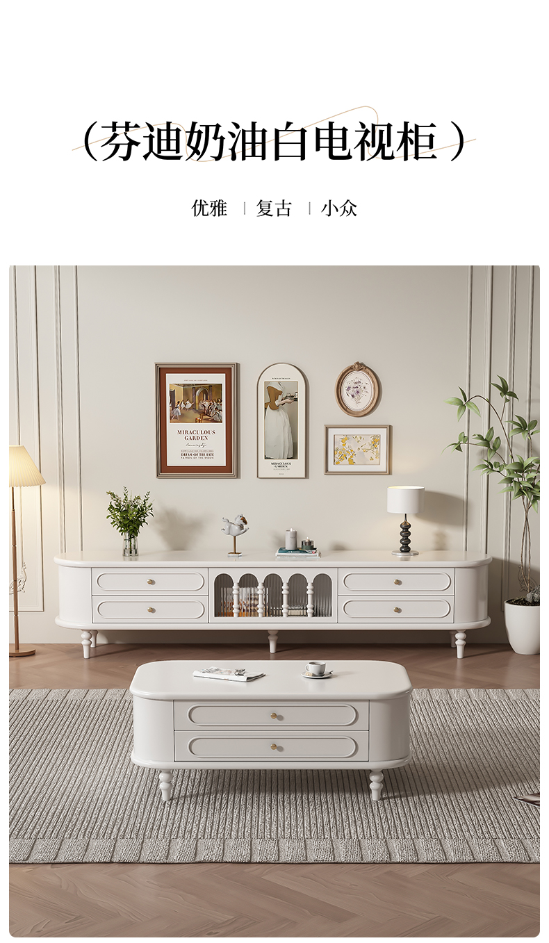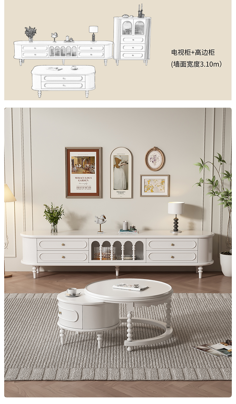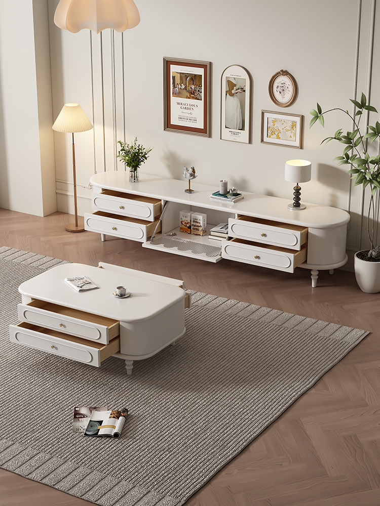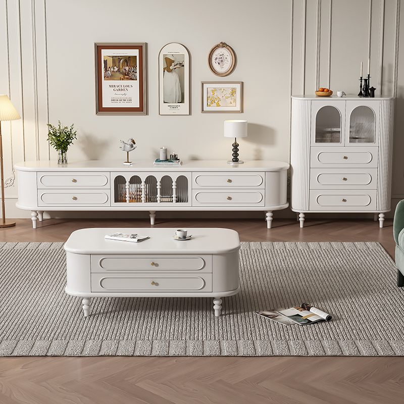 French solid wood TV cabinet, living room, household cream wind TV cabinet, storage cabinet, integrated American white