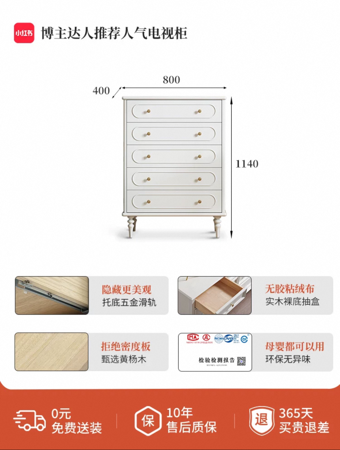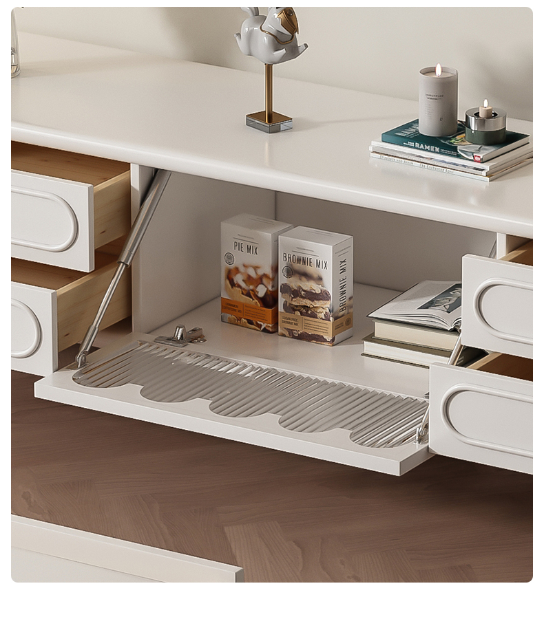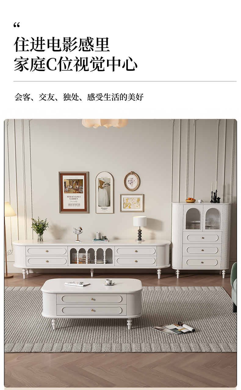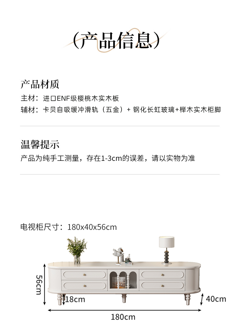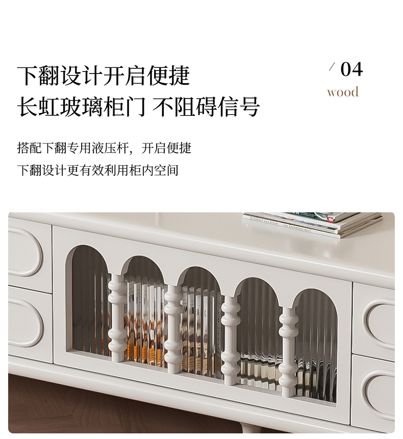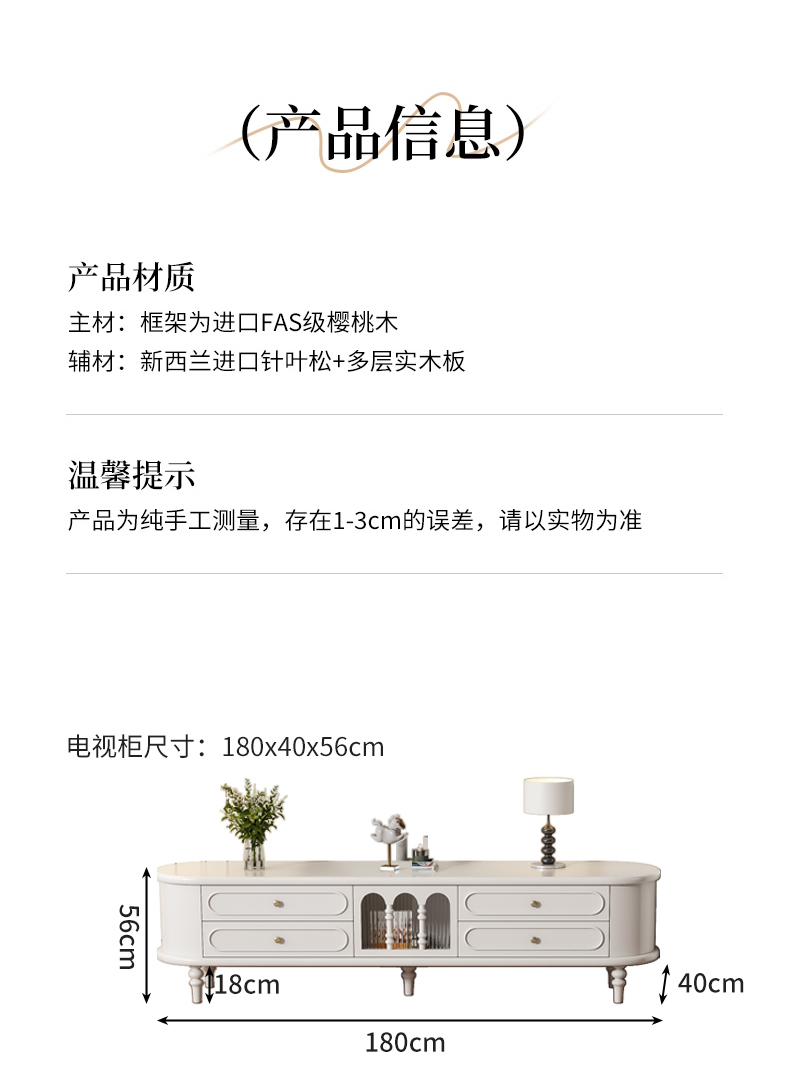 French solid wood TV cabinet, living room, household cream wind TV cabinet, storage cabinet, integrated American white