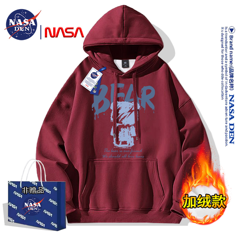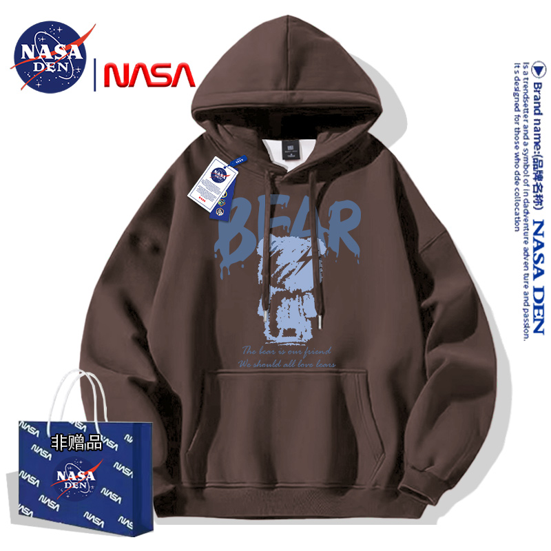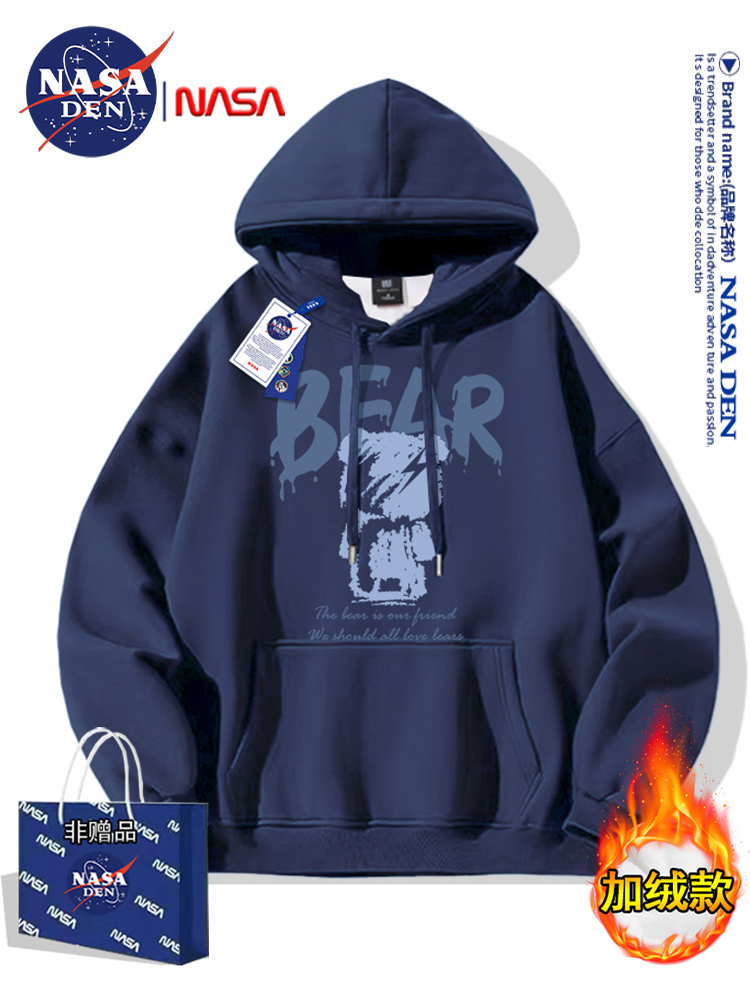 NASA co-branded American heavy fleece padded sweatshirt for men and women in autumn and winter