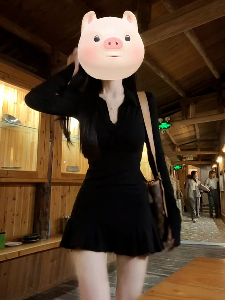 French pure desire hot girl black dress two-piece set women's 2025 new autumn and winter temperament slightly chubby waist short skirt