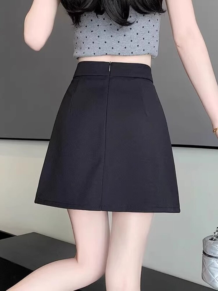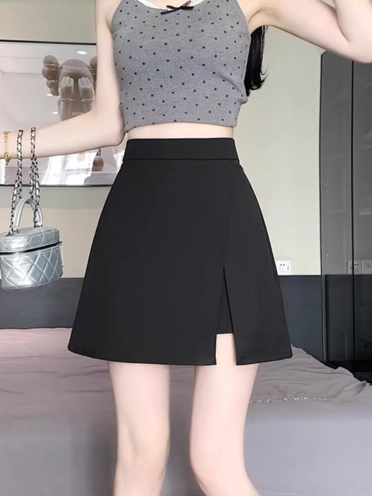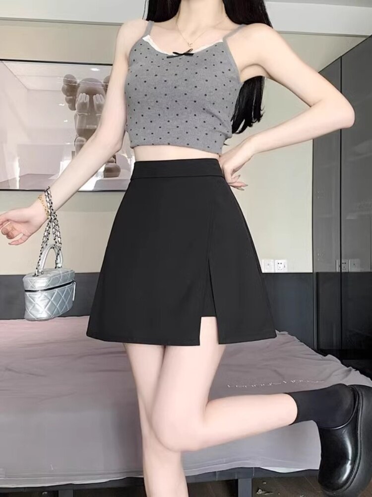 Temperament: large size fat mm high waist thin cover flesh small black skirt women's summer split A-line culottes short skirt