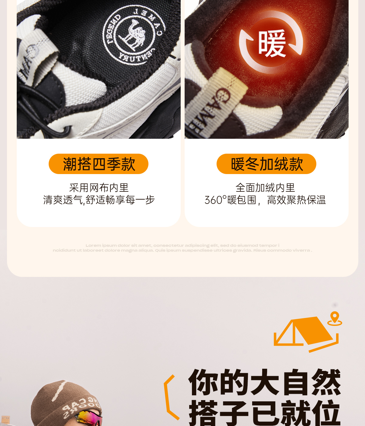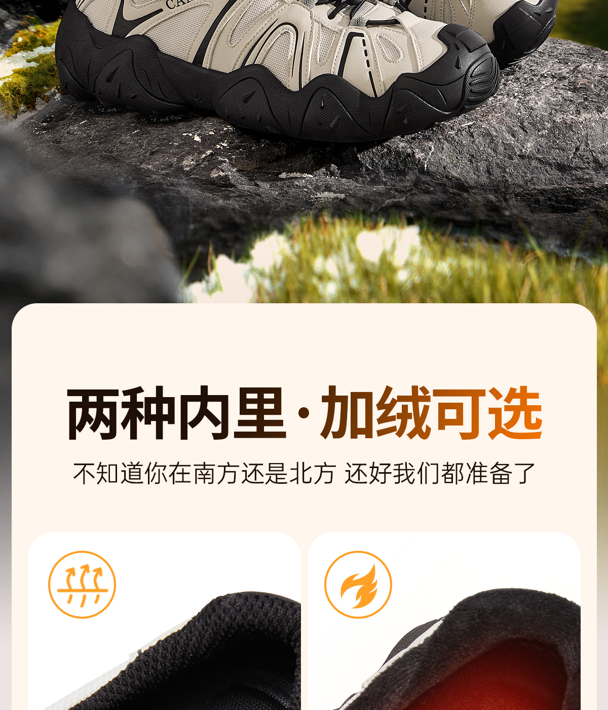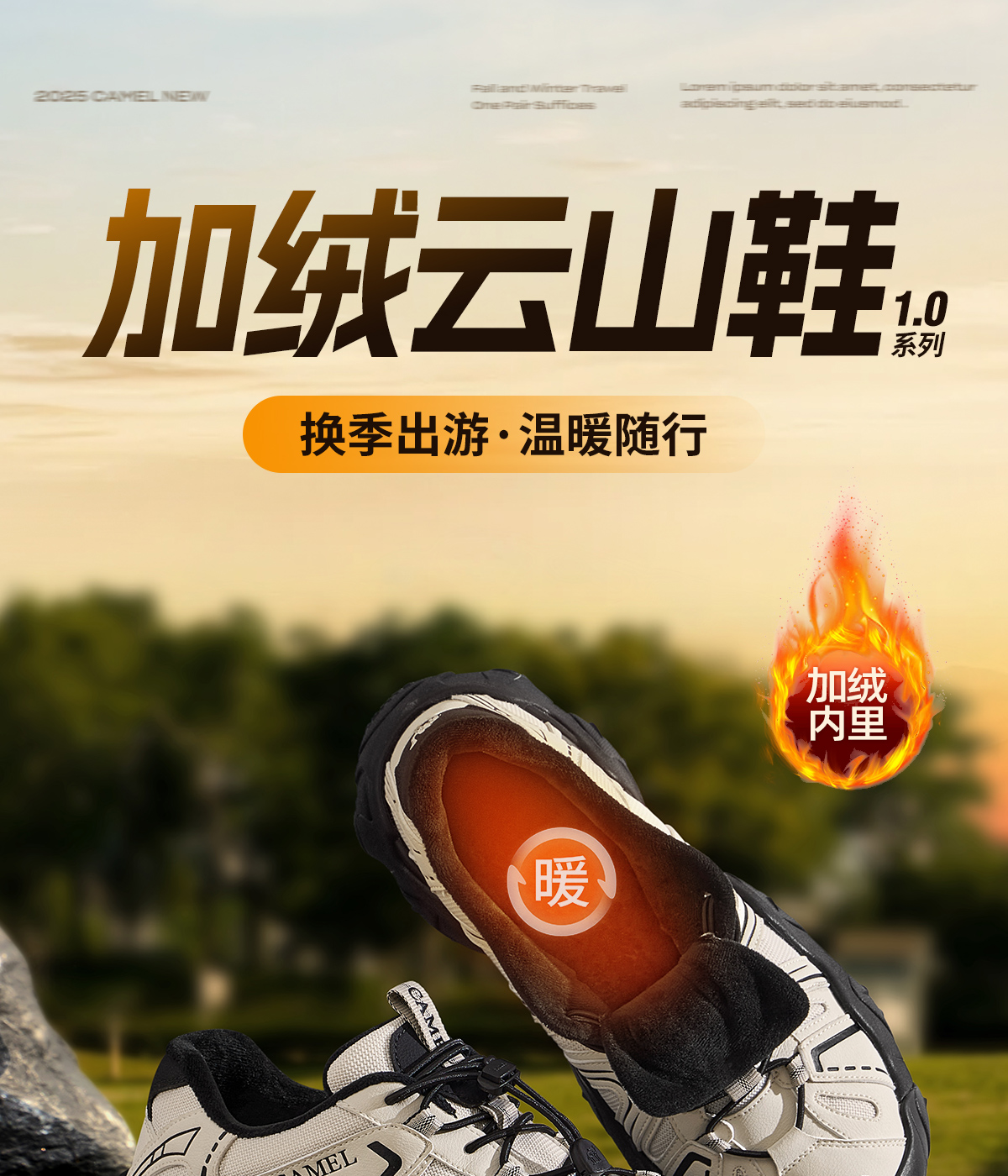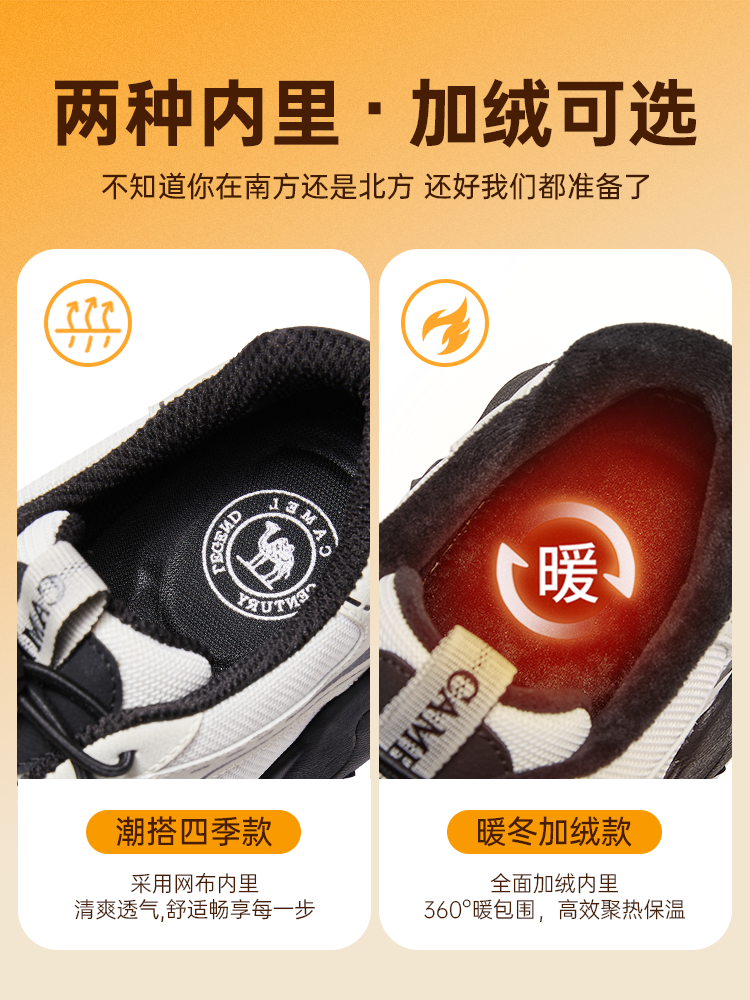 Camel hiking shoes 2025 new winter cotton shoes men's outdoor hiking fleece sneakers couple shoes cute shoes