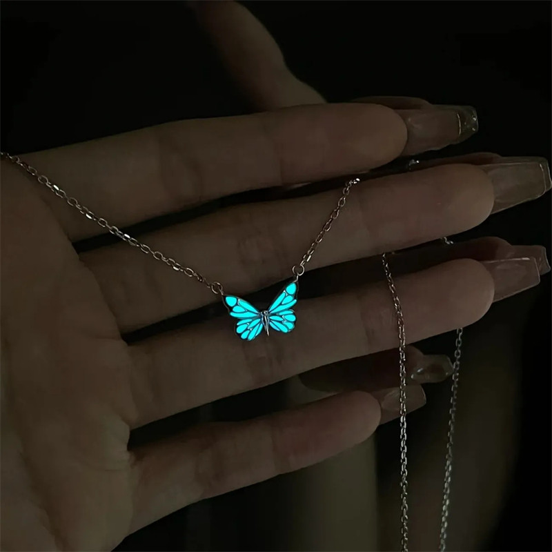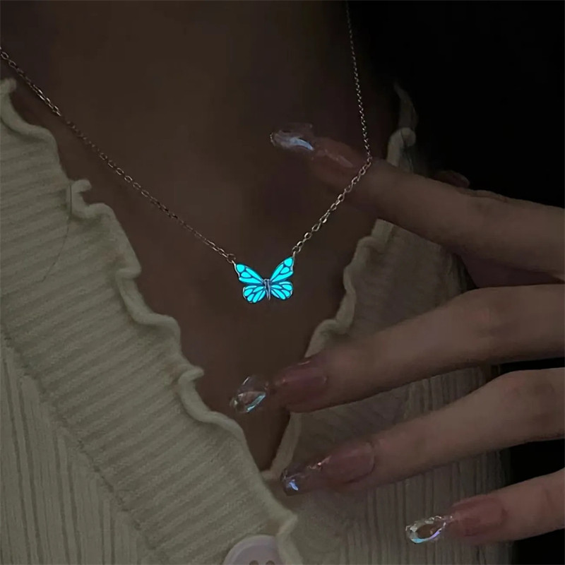 Luminous butterfly necklace ~ design ins high-end blue glowing smart butterfly bracelet to send girlfriends sweet bracelet tide