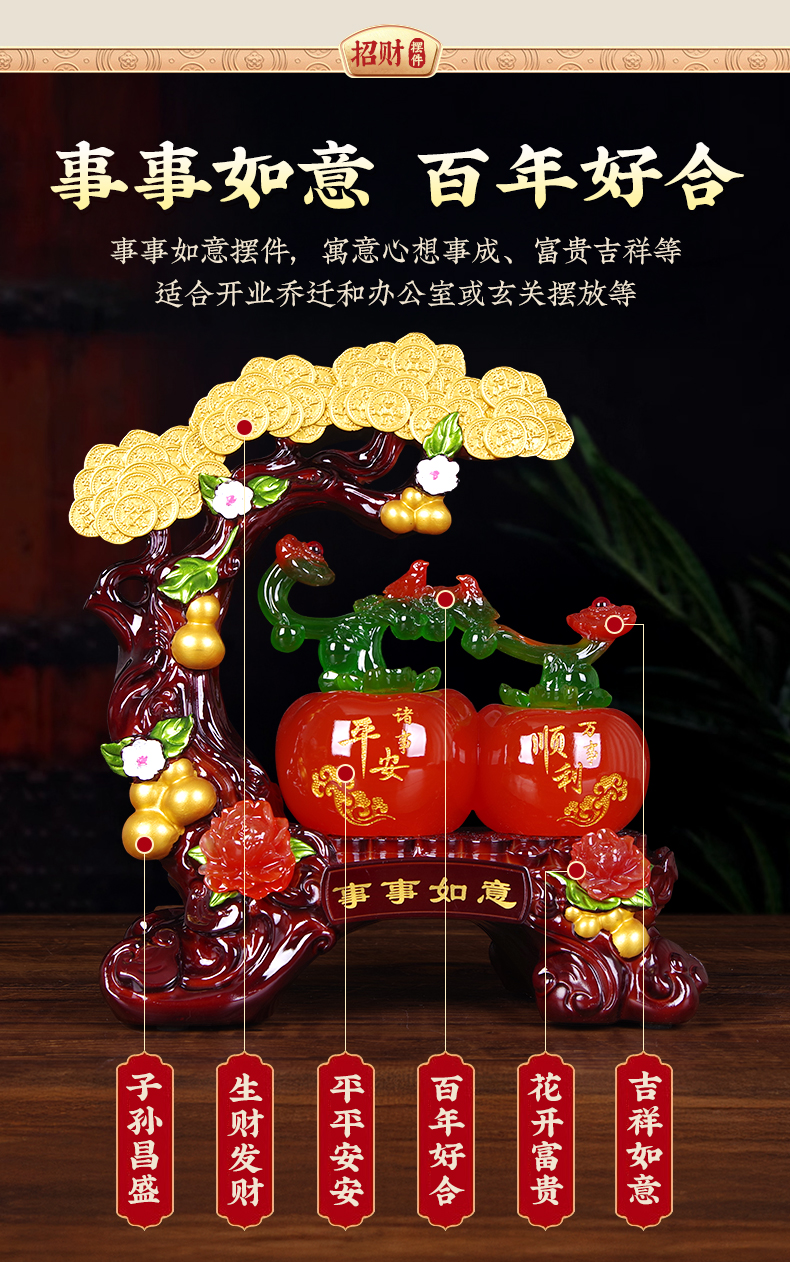 Everything goes well, persimmon ornaments, living room entrance, wine cabinet, light luxury, high-end decorations, gifts for girlfriends, housewarming, moving