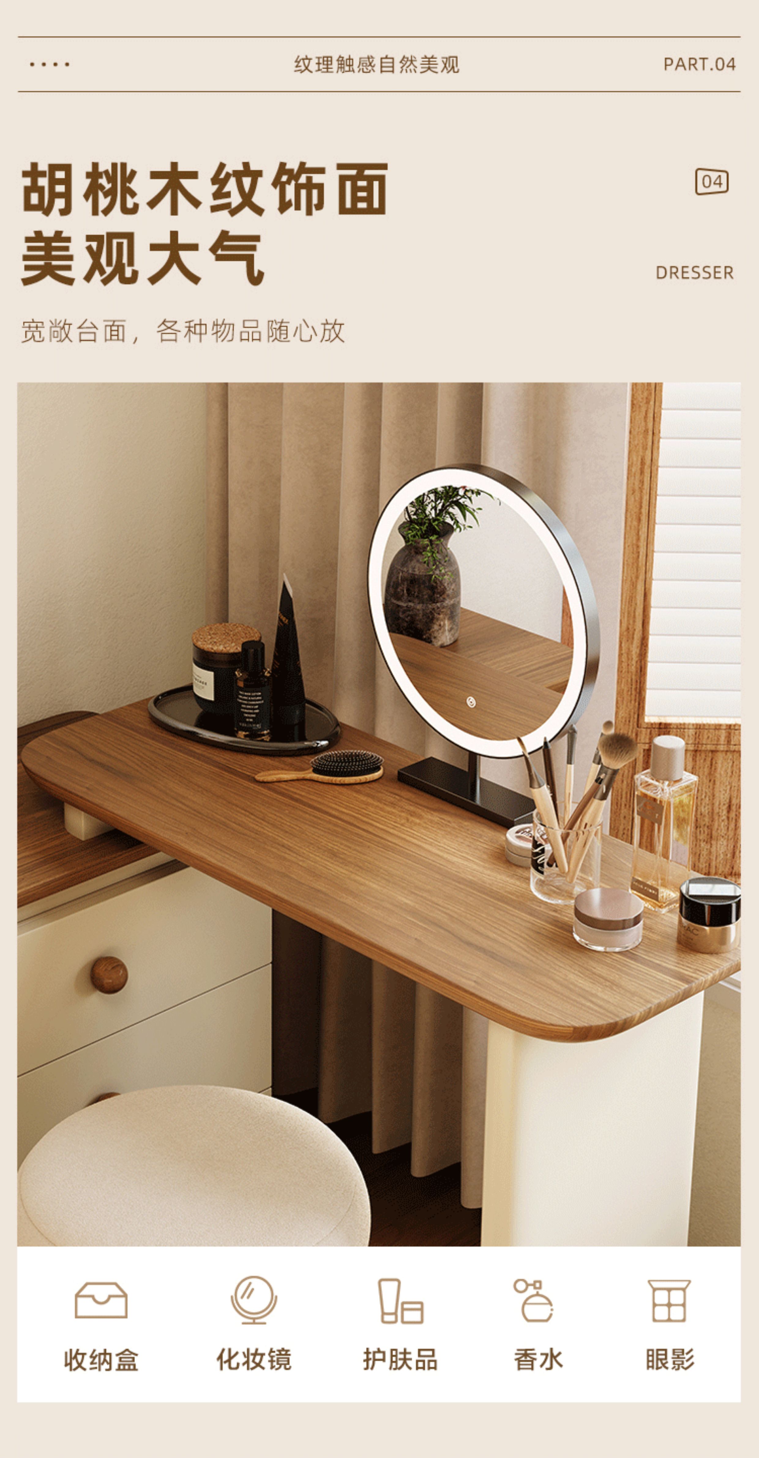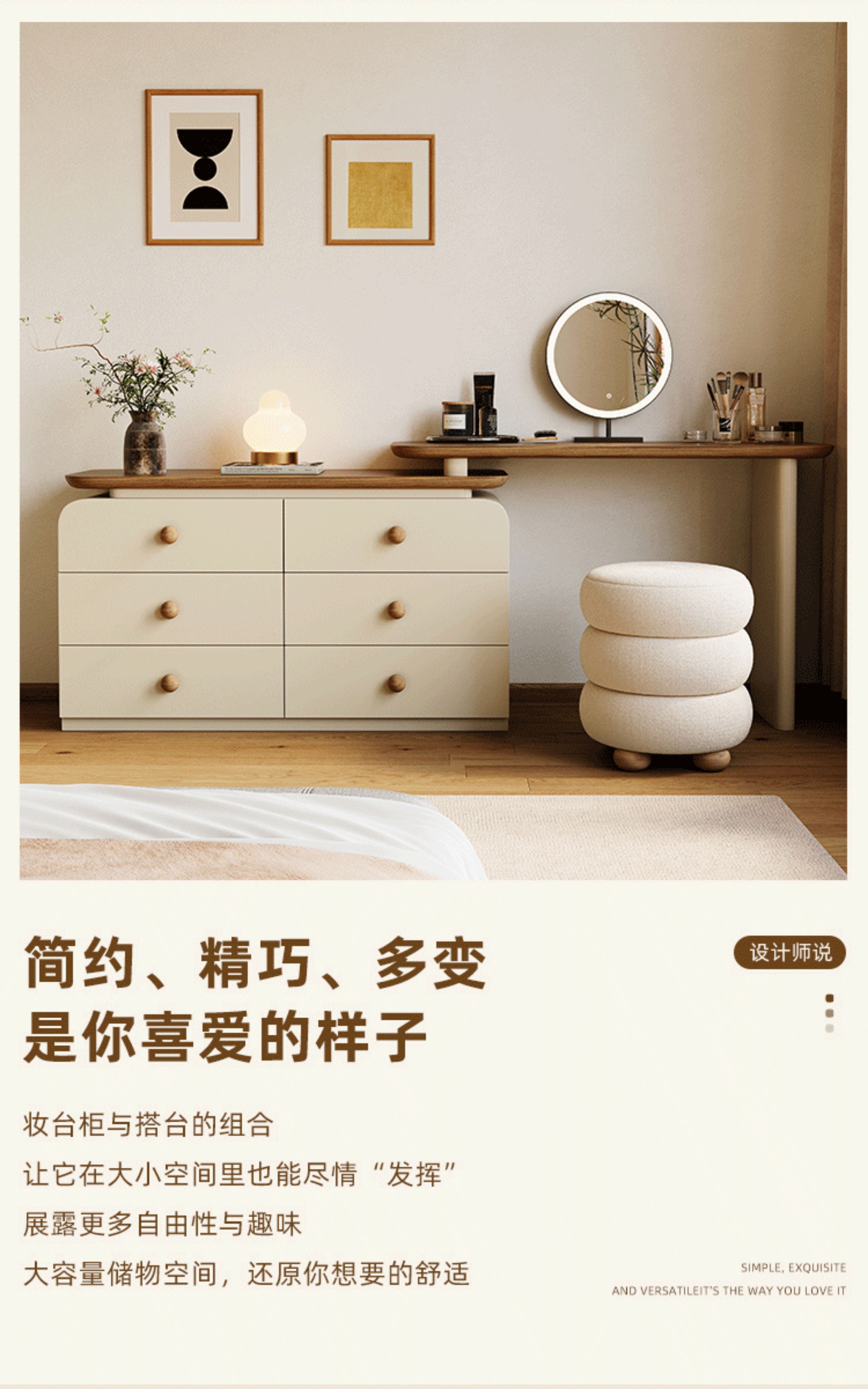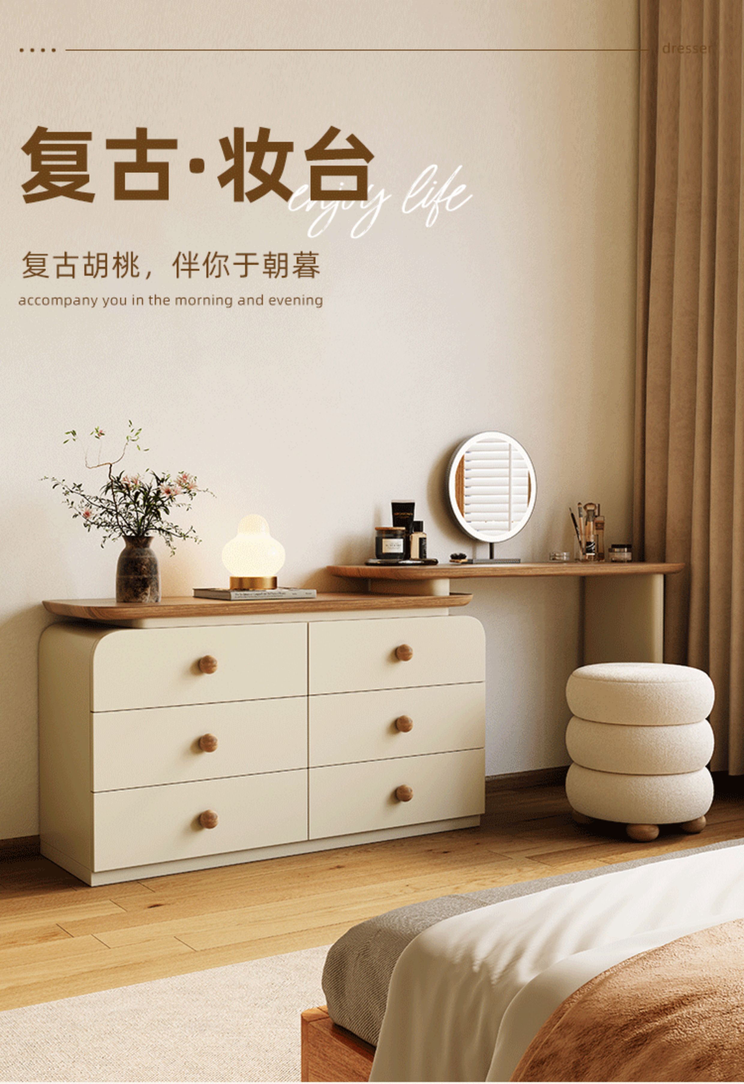 Solid wood dresser, modern bedroom, simple chest of drawers, integrated dressing table, small dressing table, black walnut storage cabinet