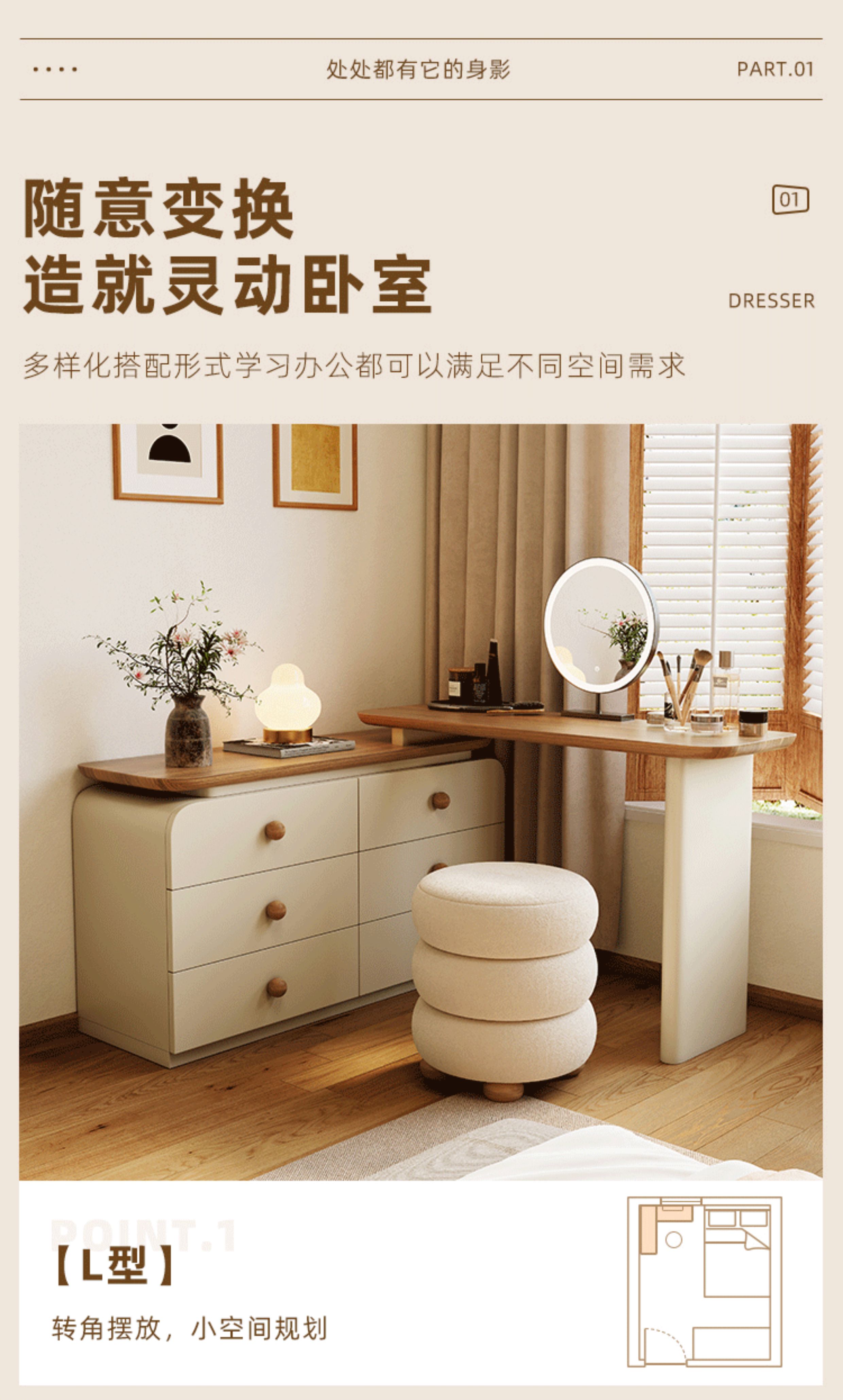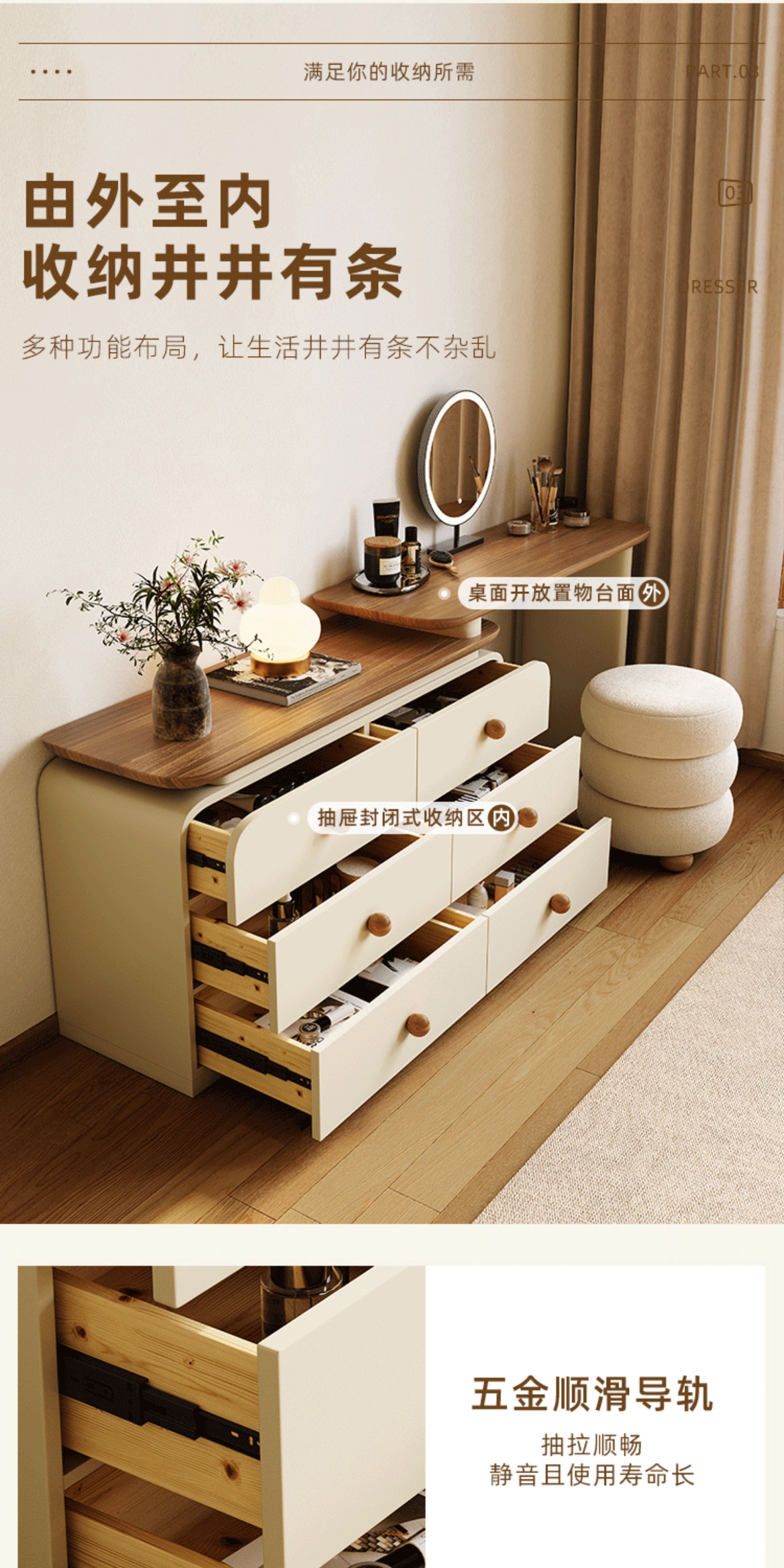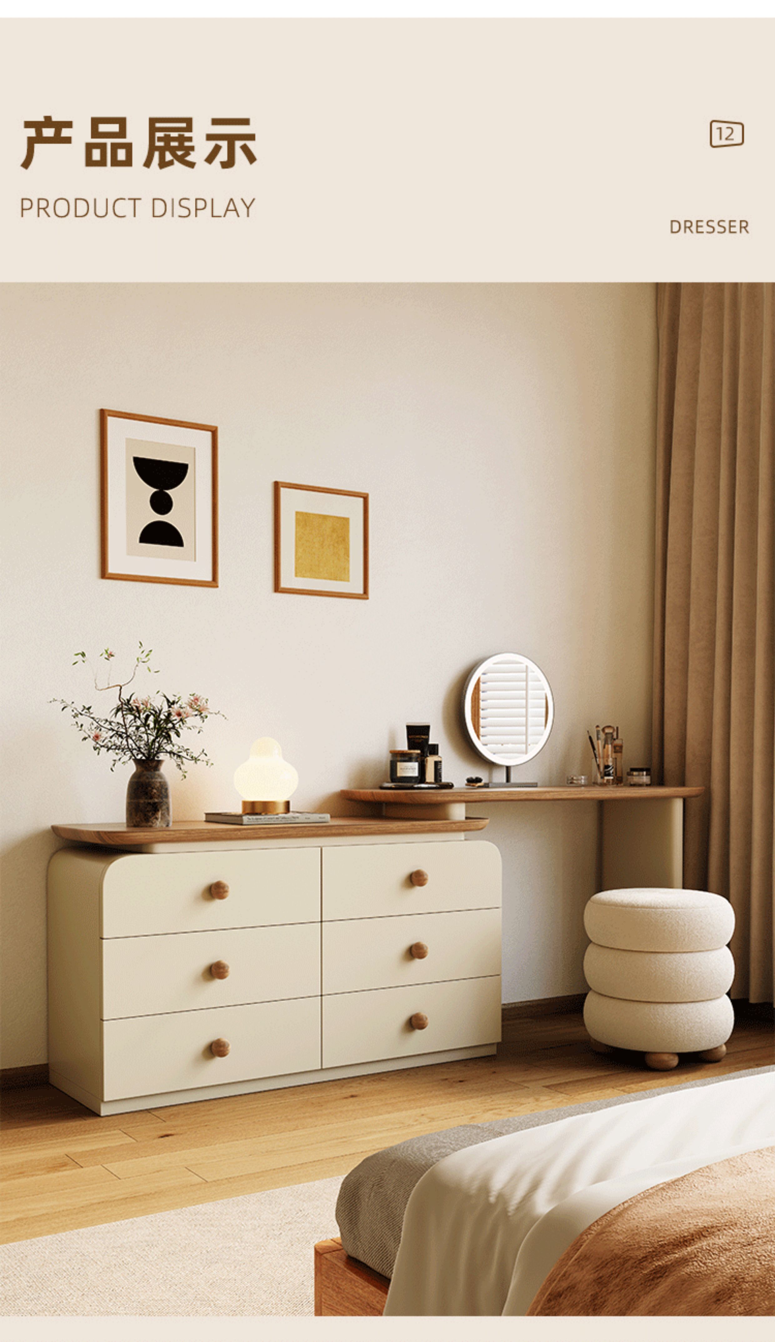 Solid wood dresser, modern bedroom, simple chest of drawers, integrated dressing table, small dressing table, black walnut storage cabinet
