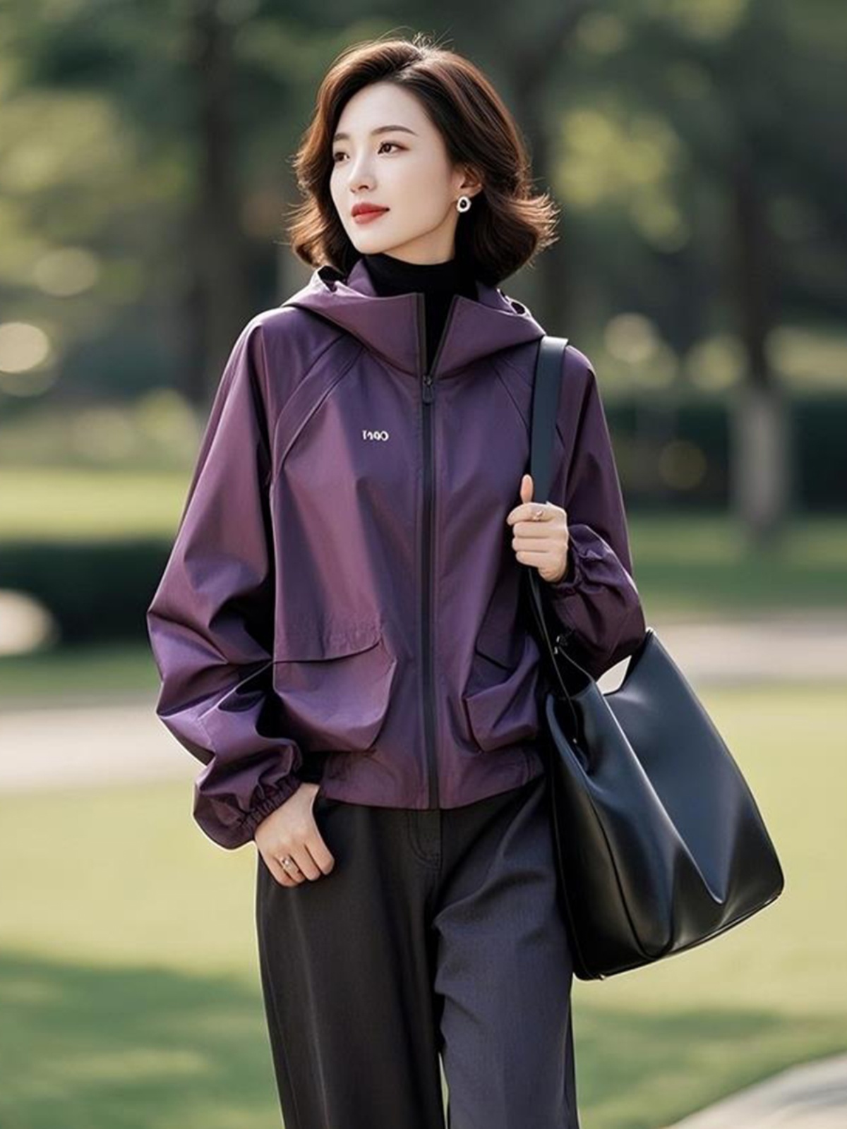 High-end 2025 autumn women's clothing This year's popular casual and versatile purple tops and noble temperament short coats