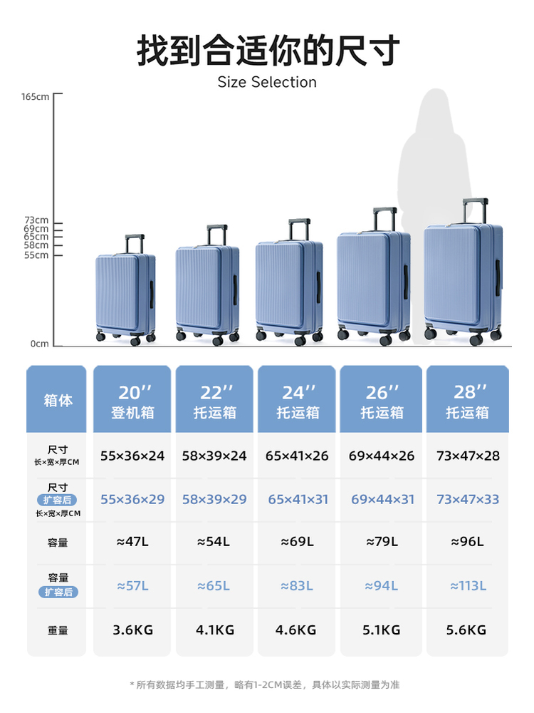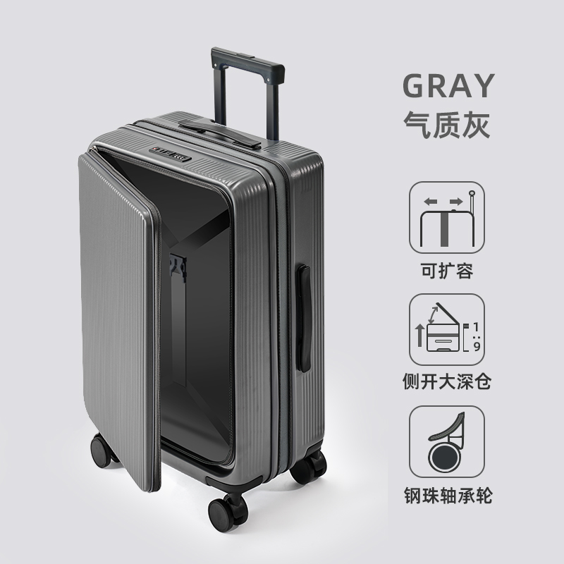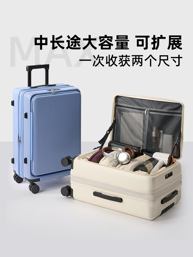 Large capacity suitcase 28 inch 2025 new durable trolley case with front opening with extended code suitcase for men and women