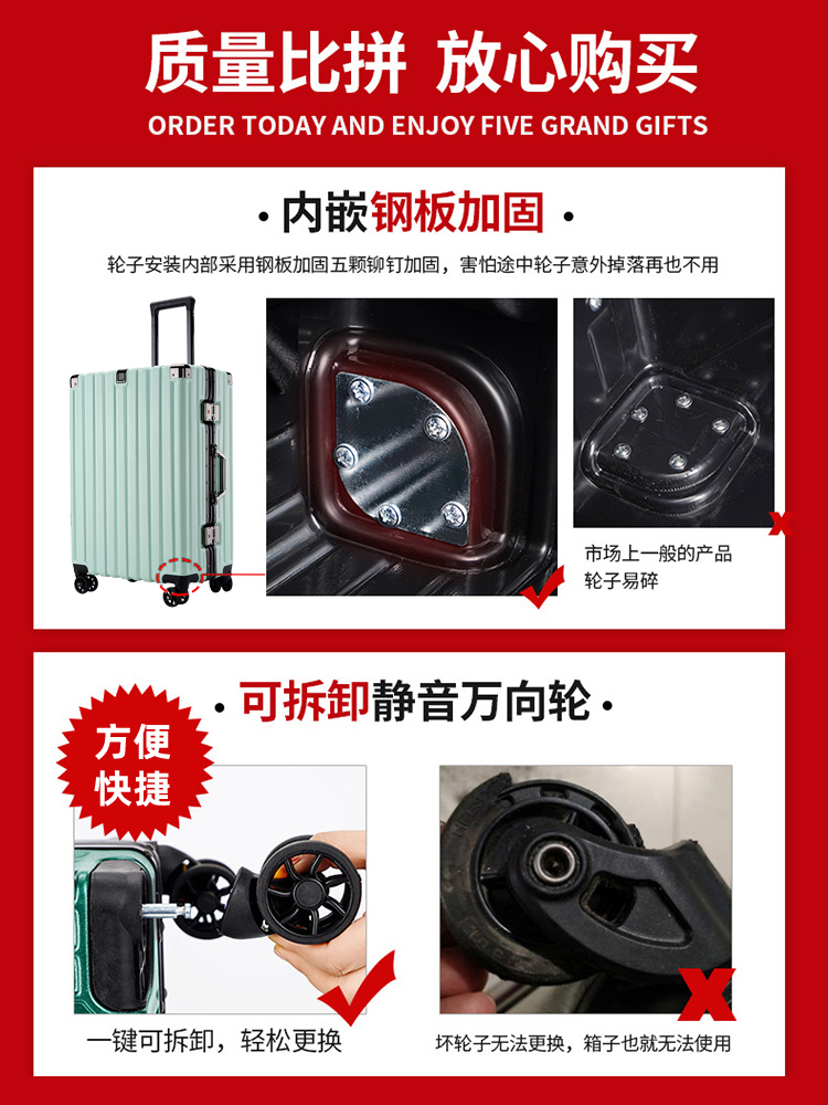 Kangaroo Suitcase Girls 2025 New Sturdy and Durable Thickened 20 Inch Silent Trolley Code Travel Suitcase 24