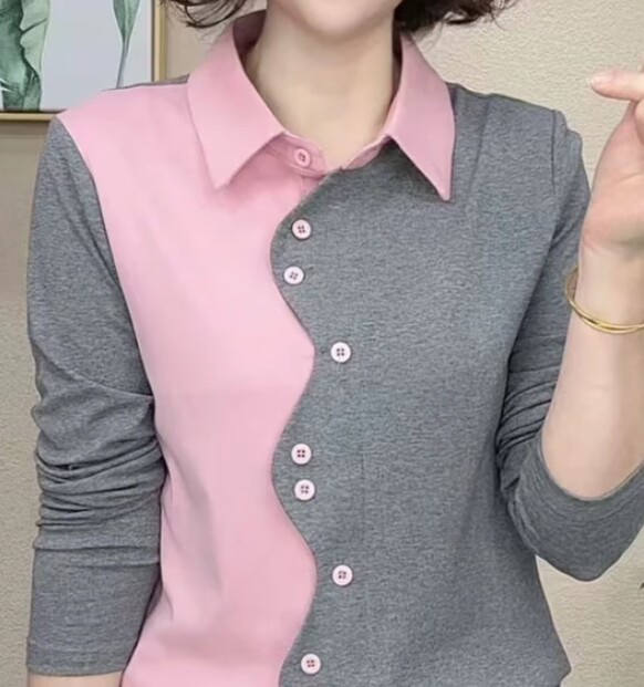 Fashionable mom wear long sleeve loose shirt women's 2025 spring and autumn new versatile casual lapel color-blocked cotton top