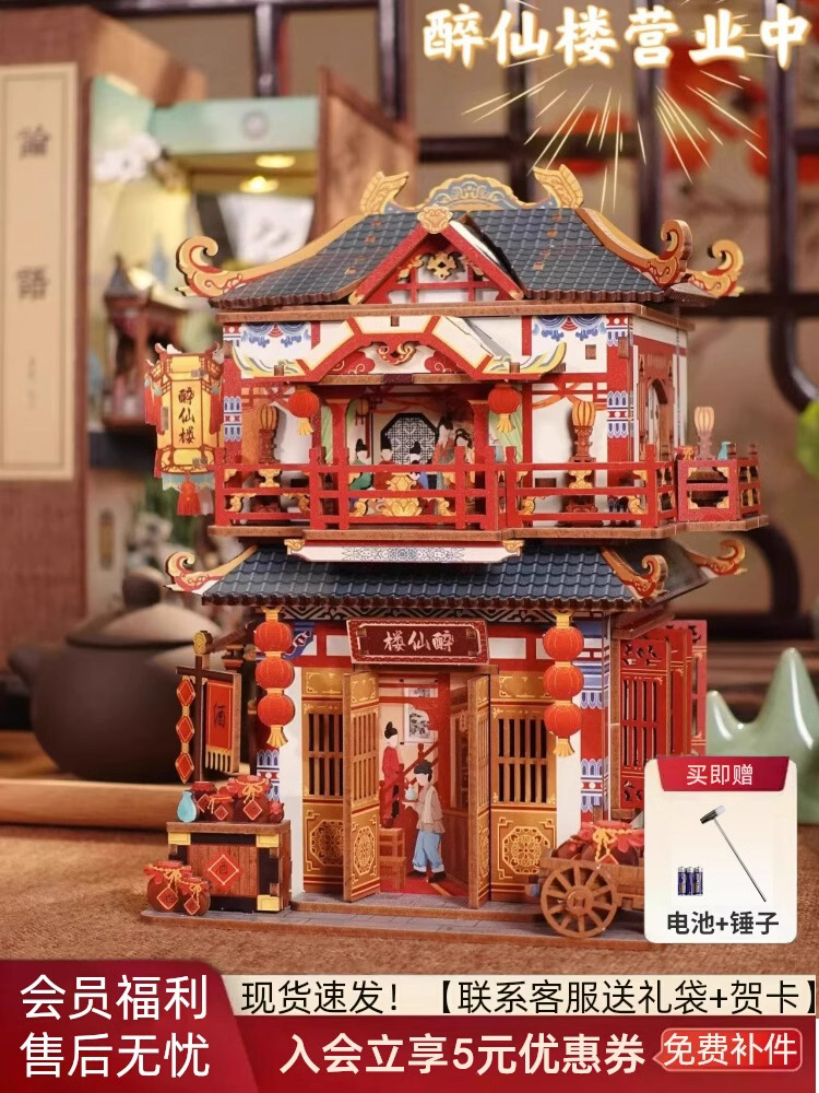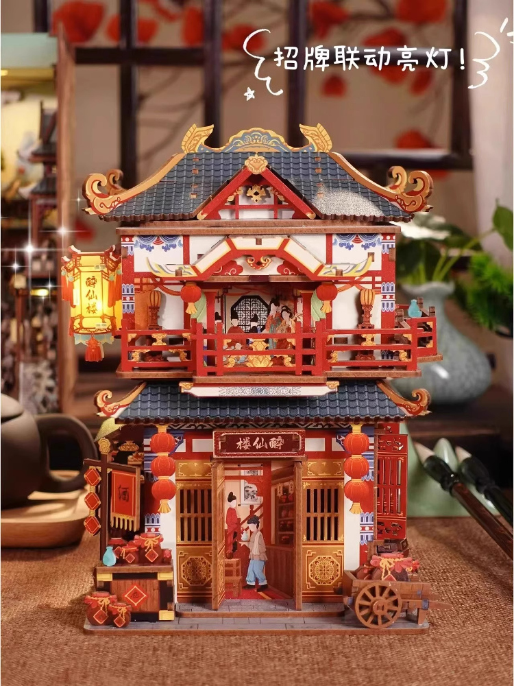 Drunken Immortal House DIY Mini Mini Mini Zoo Fun Induction Cottage Handmade Assembled Building Block Model Toys Gifts