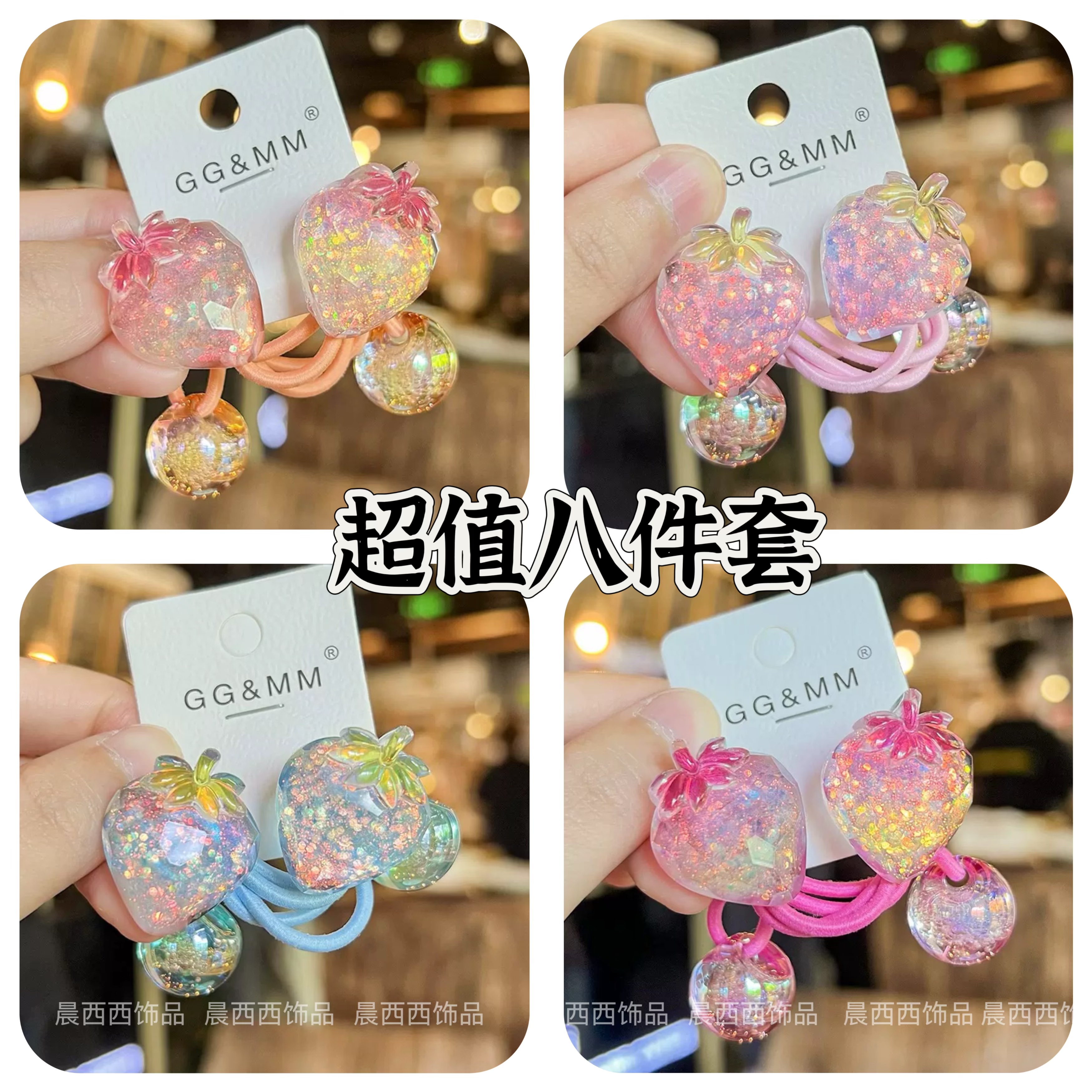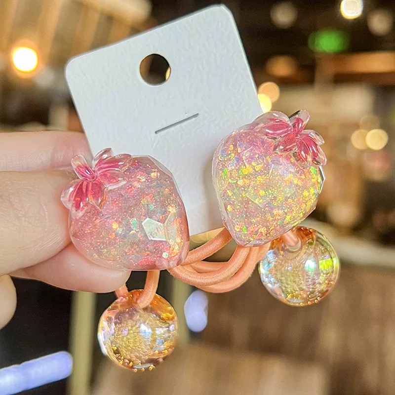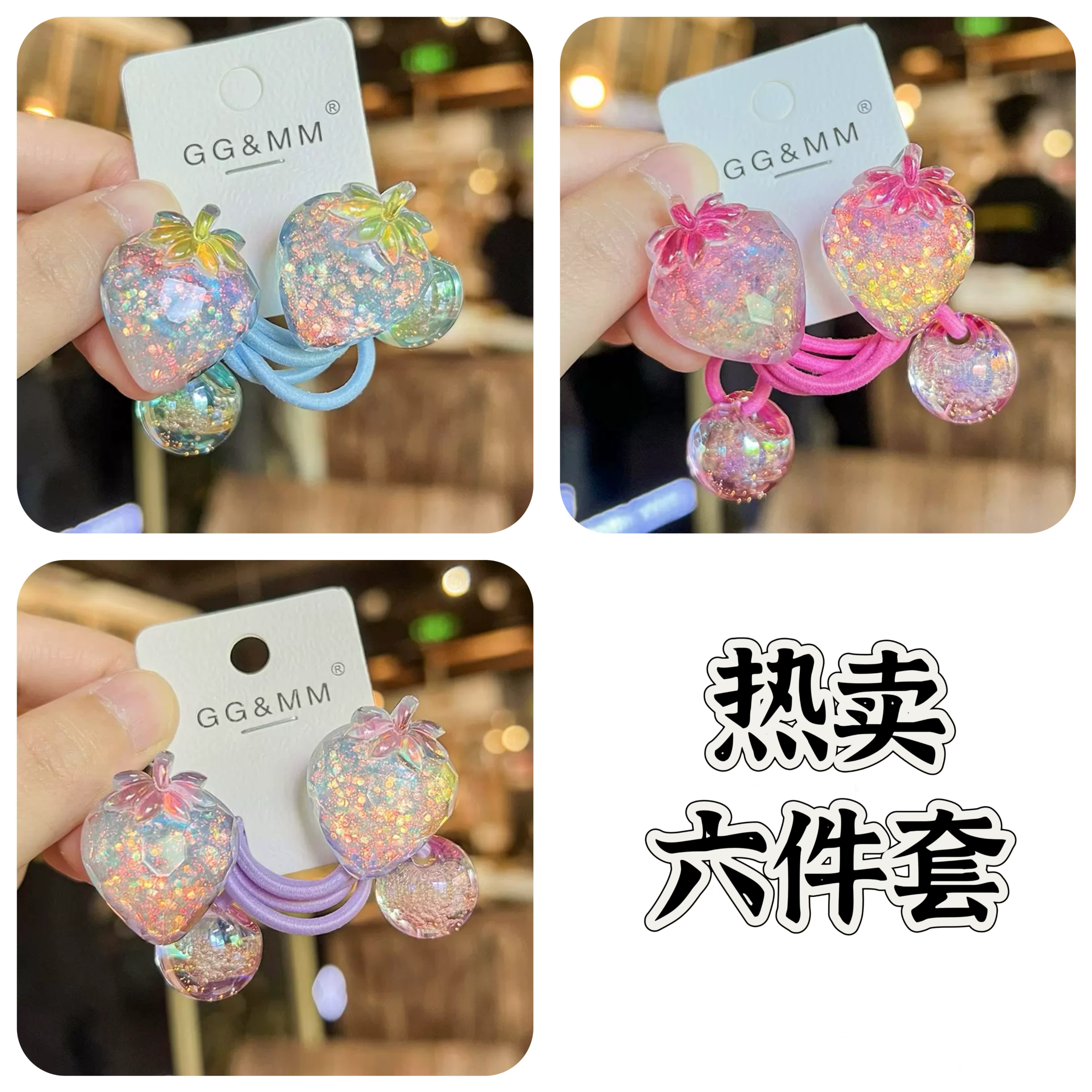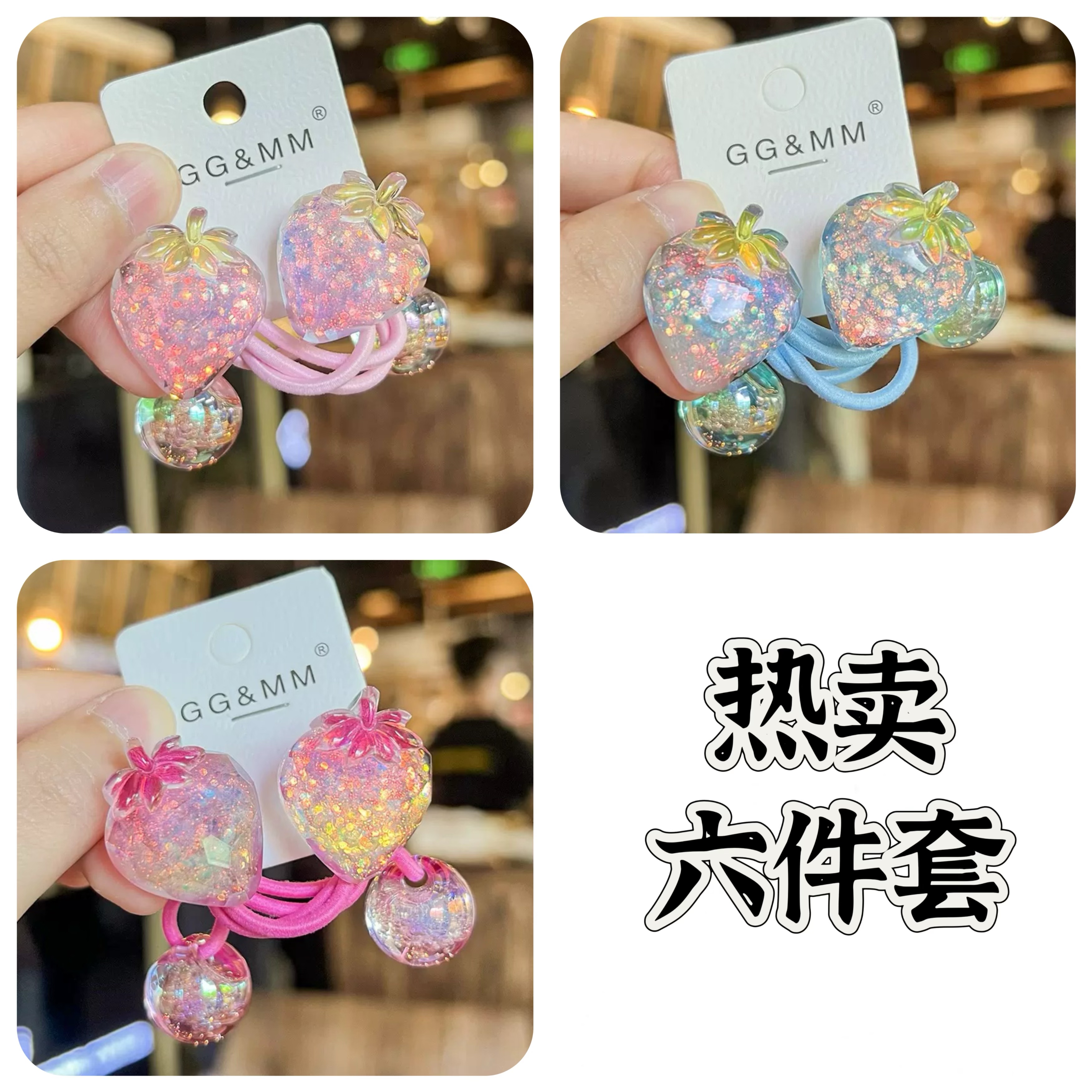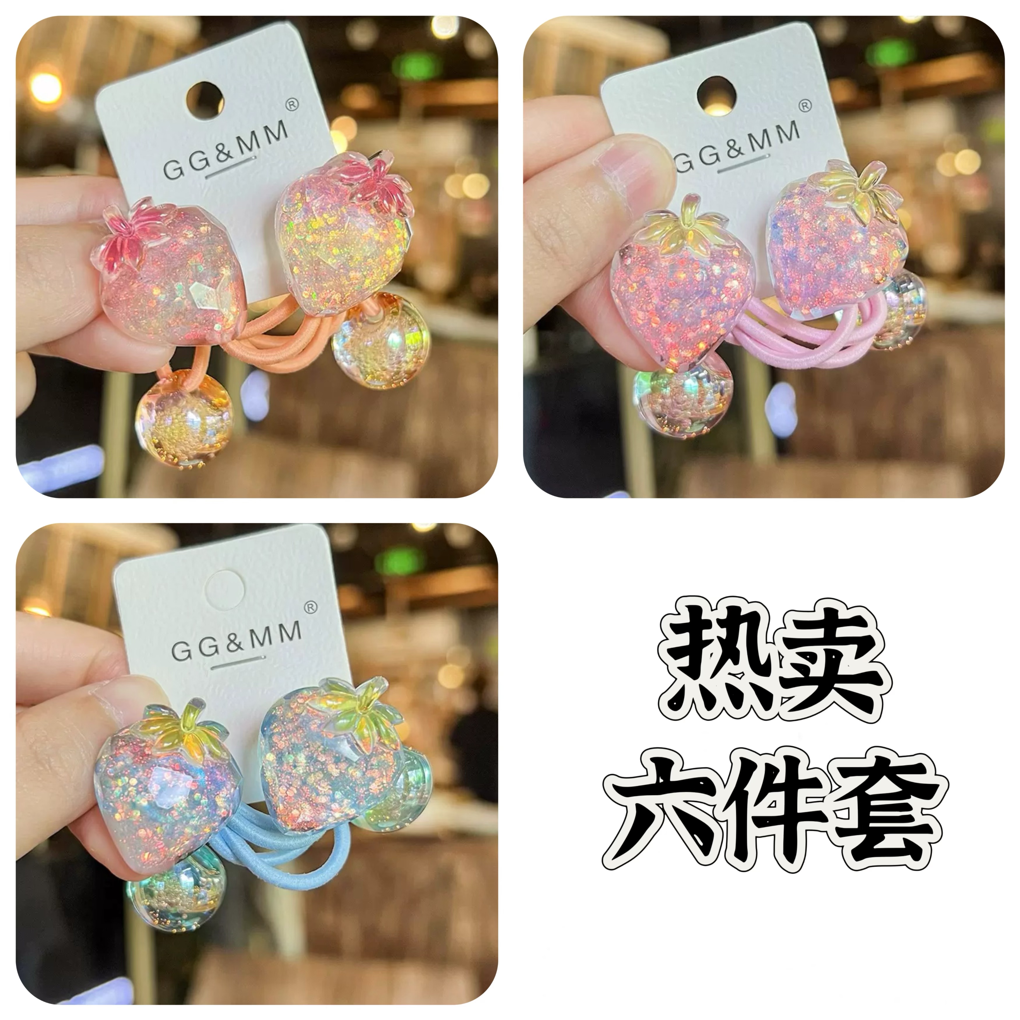Strawberry hair rope Korean version gradient children's cartoon rubber band hair ornament bubble beads around the girl's head rope head ornament