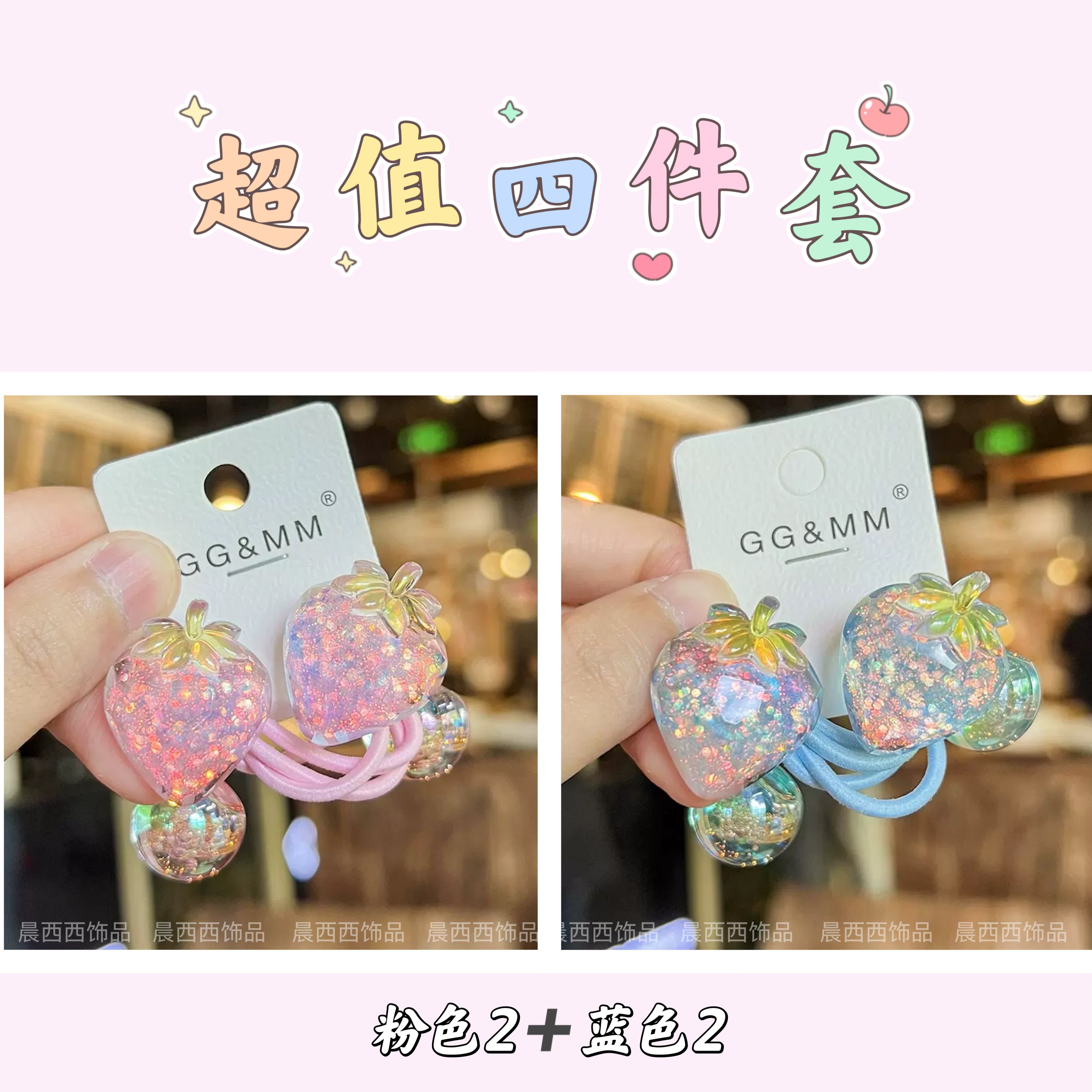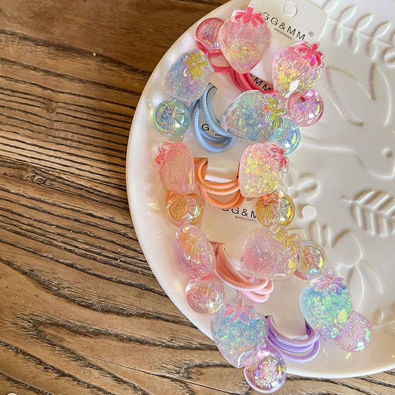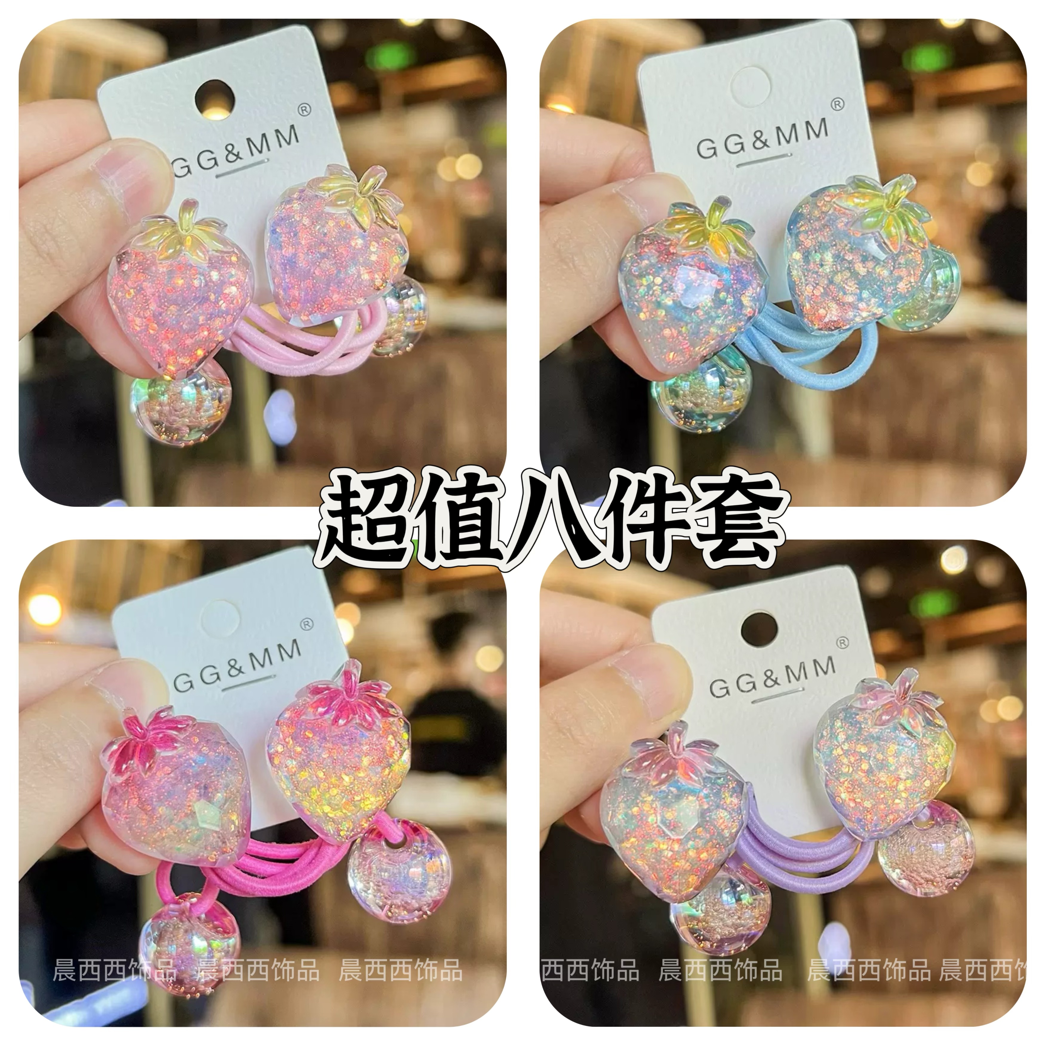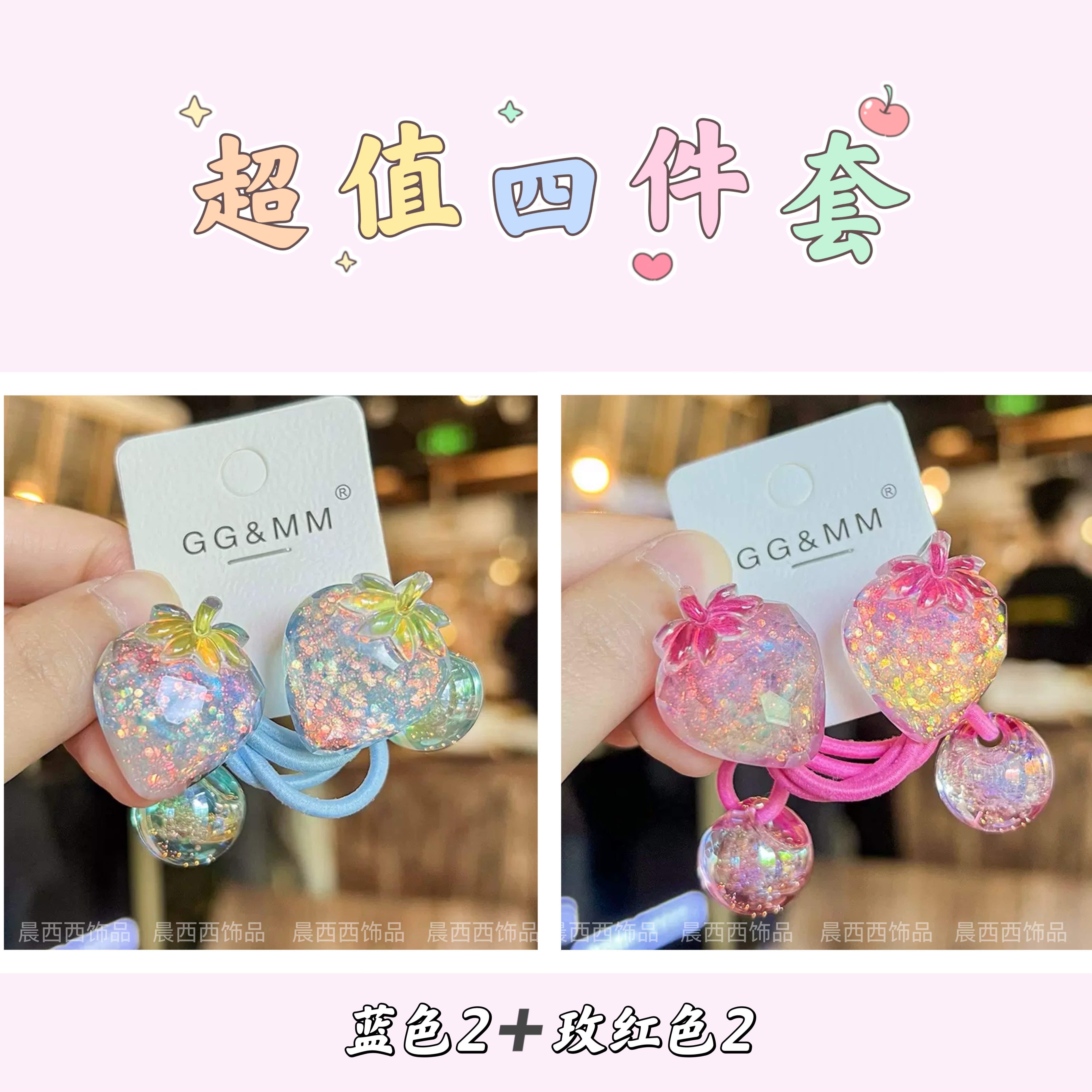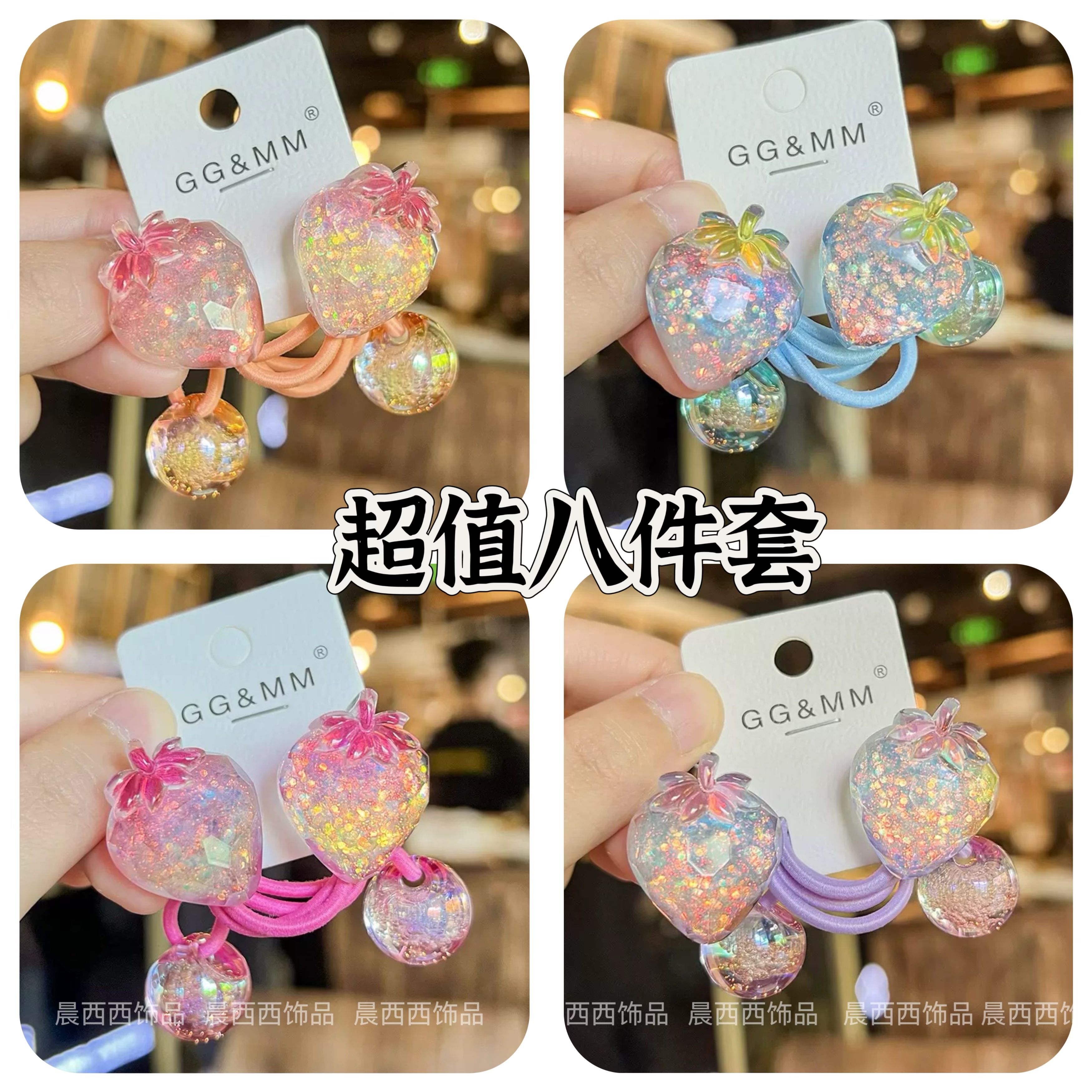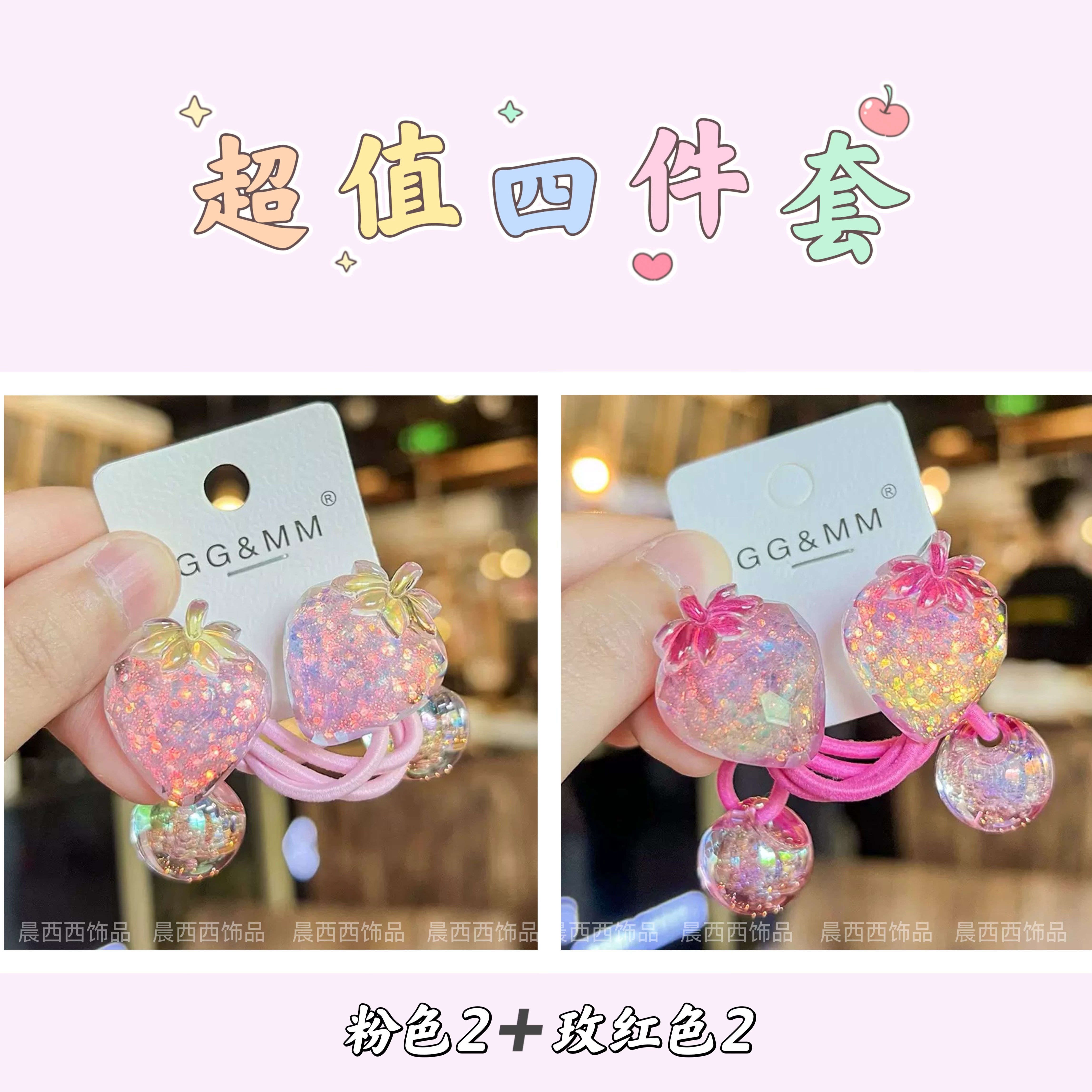 Strawberry hair rope Korean version gradient children's cartoon rubber band hair ornament bubble beads around the girl's head rope head ornament