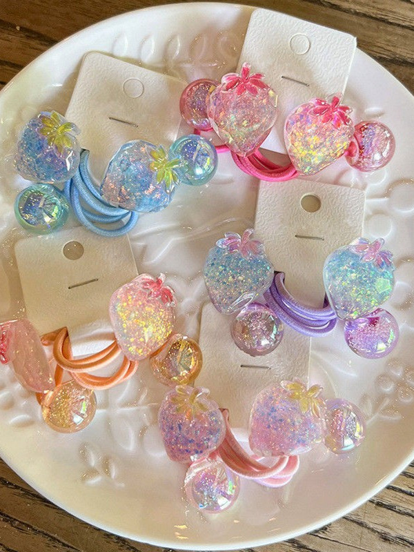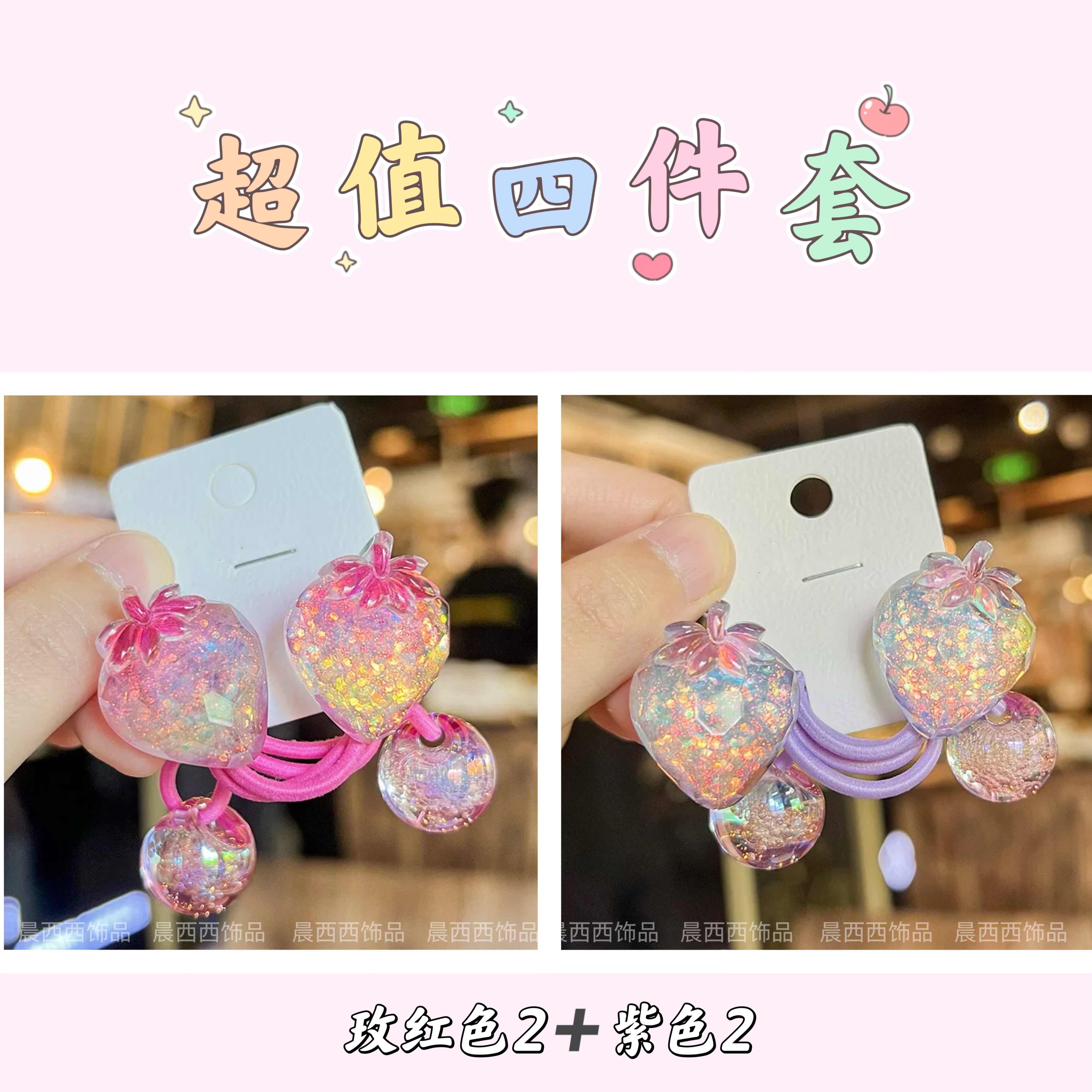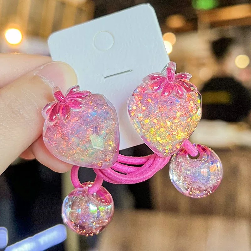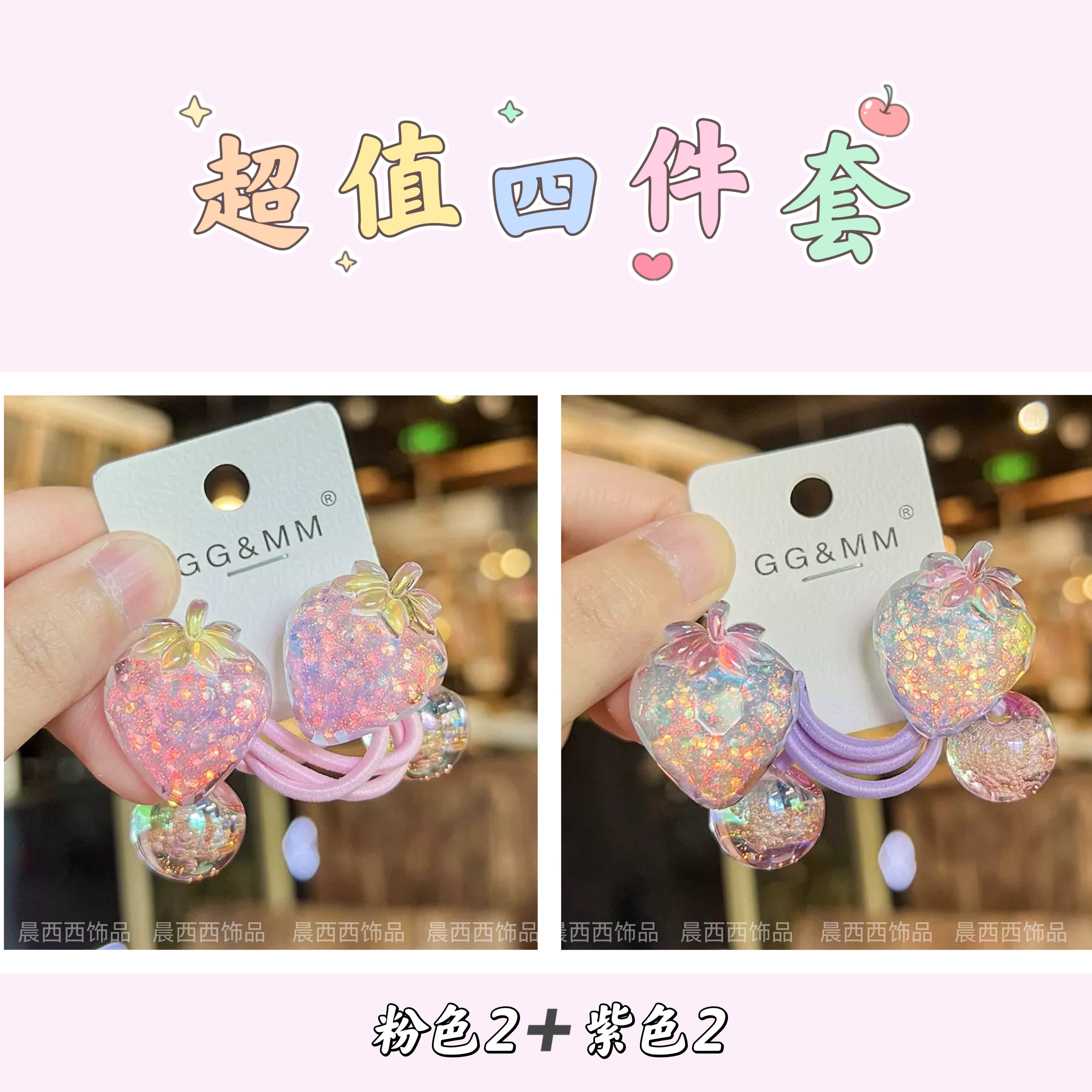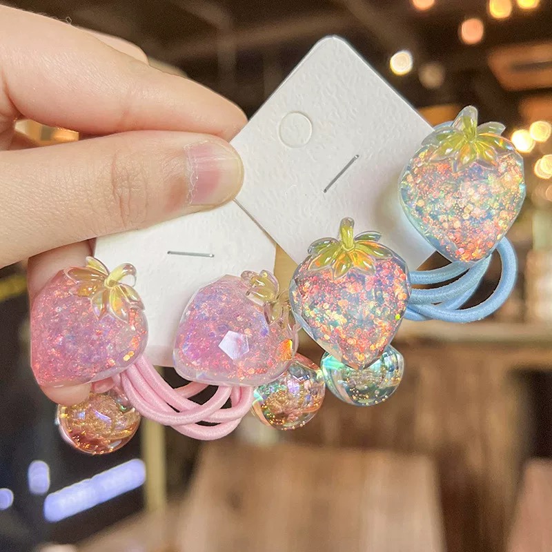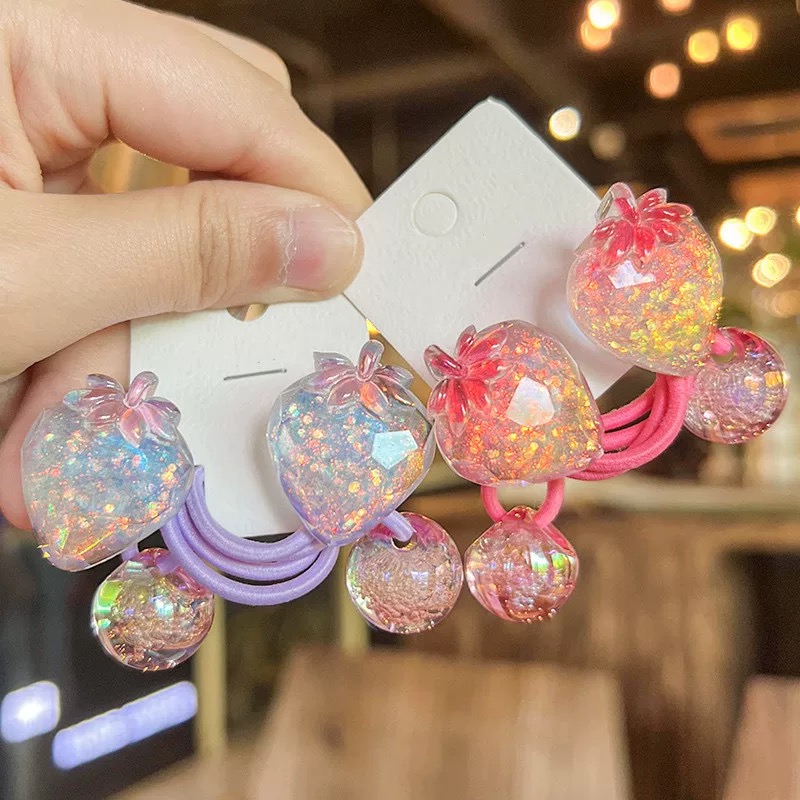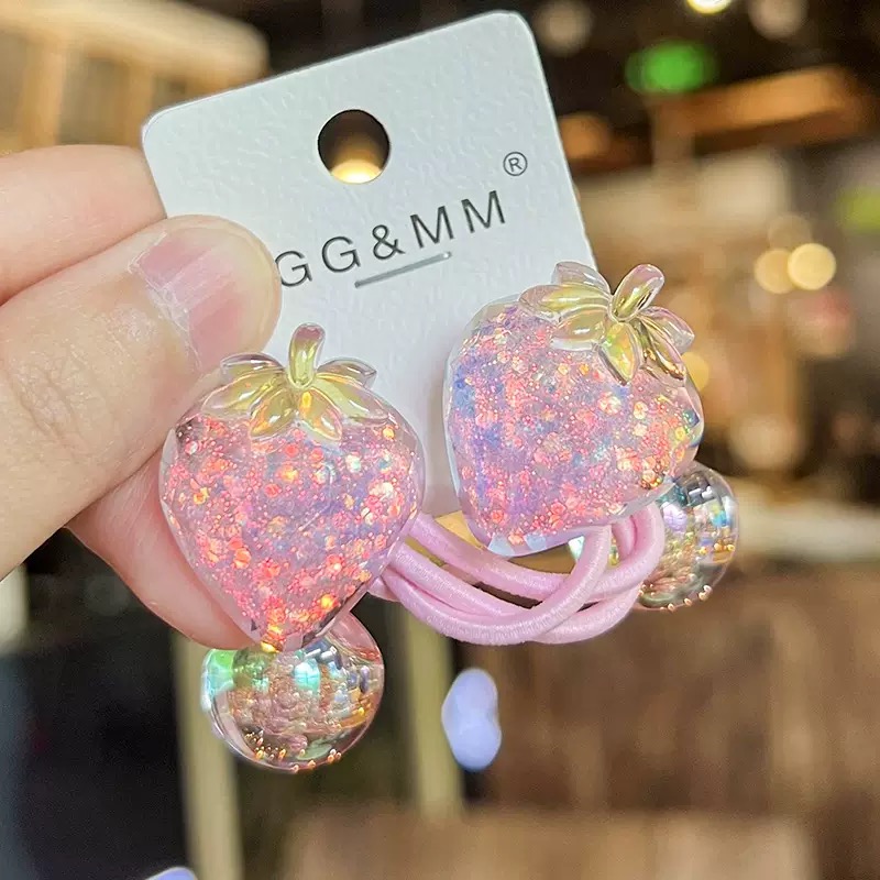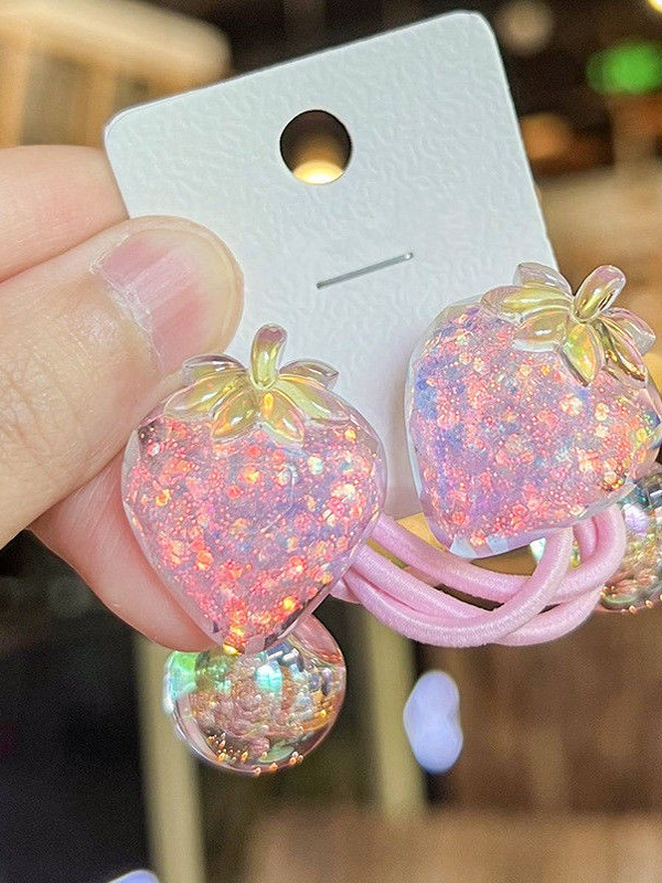 Strawberry hair rope Korean version gradient children's cartoon rubber band hair ornament bubble beads around the girl's head rope head ornament