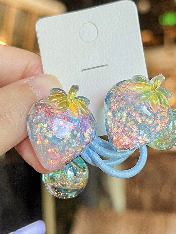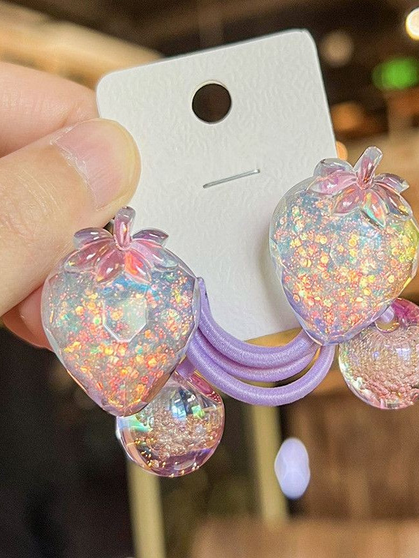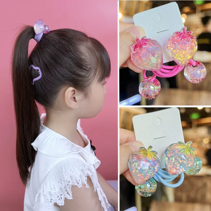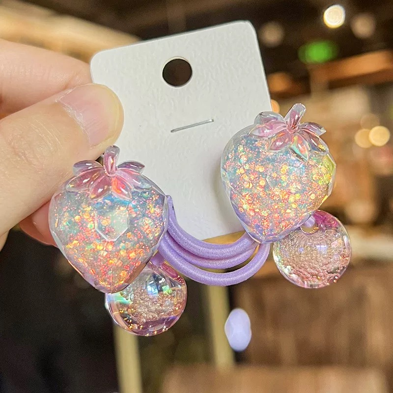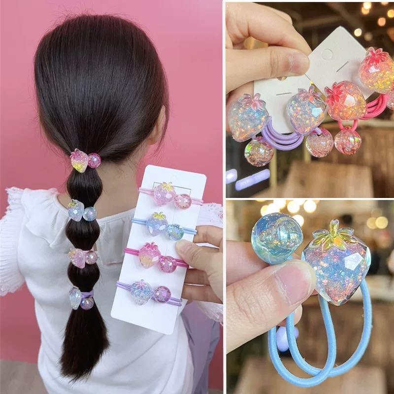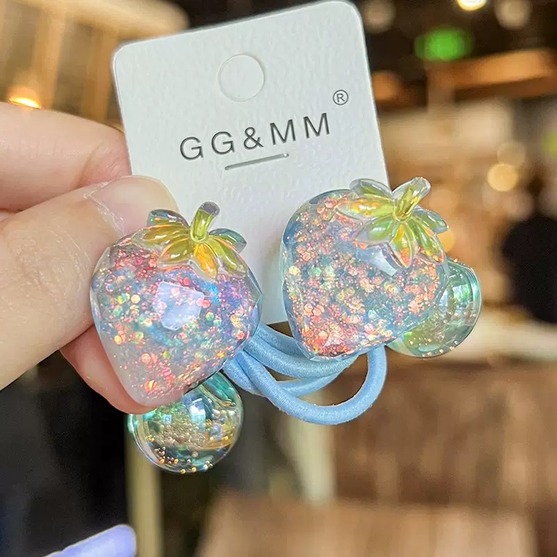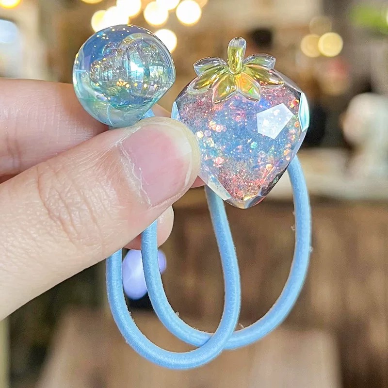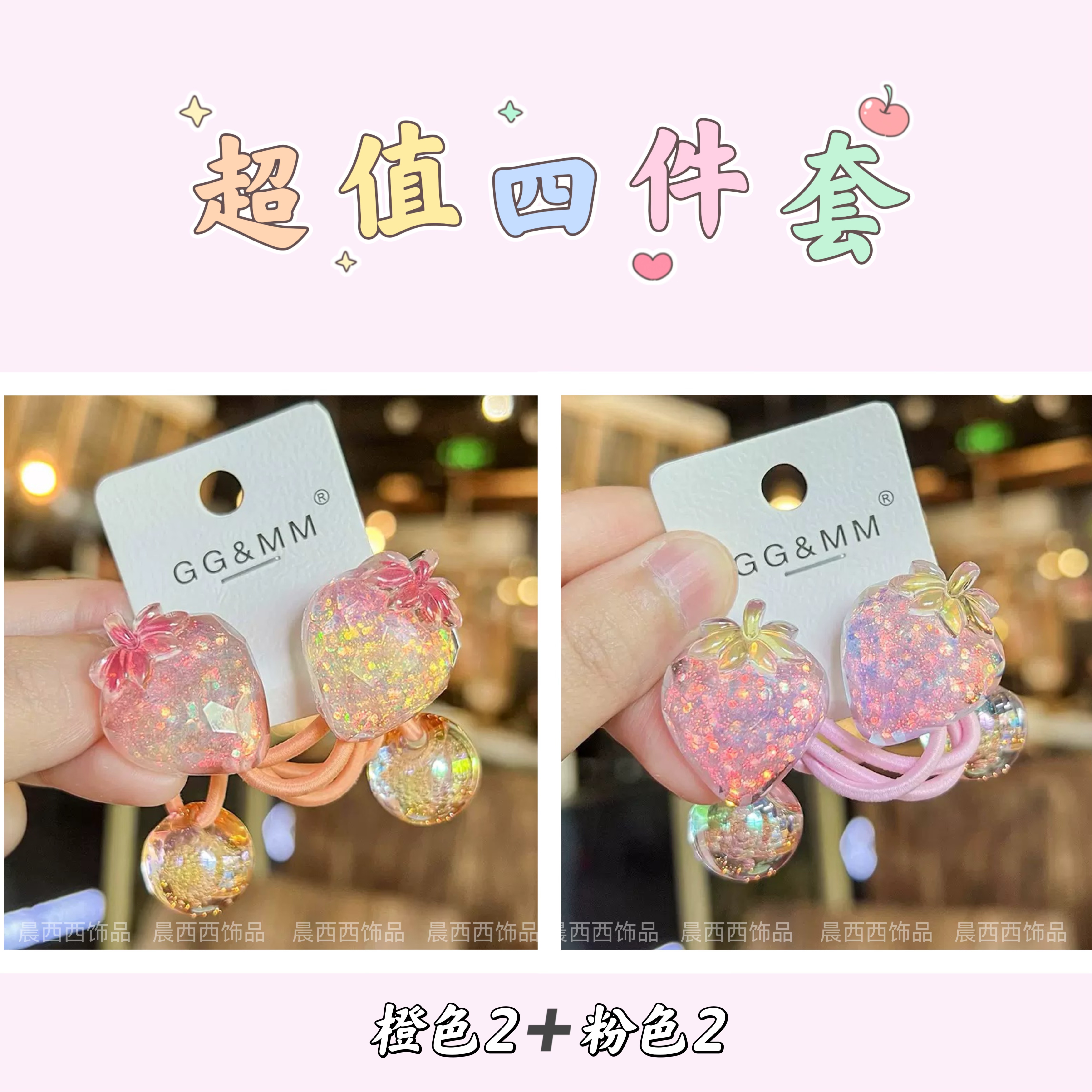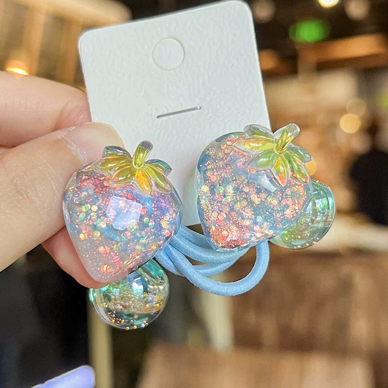 Strawberry hair rope Korean version gradient children's cartoon rubber band hair ornament bubble beads around the girl's head rope head ornament