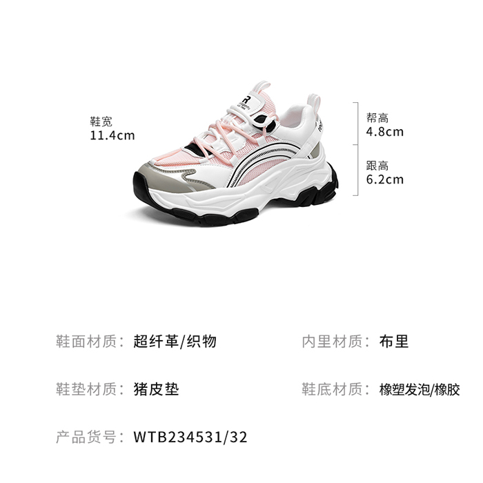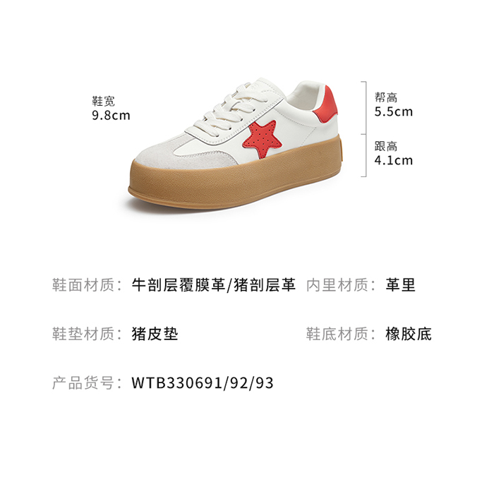 [Brand Clearance Special] Red Dragonfly Athletic Casual Dad Shoes Women's Tide Platform Shoes Single Shoes Small White Shoes Women