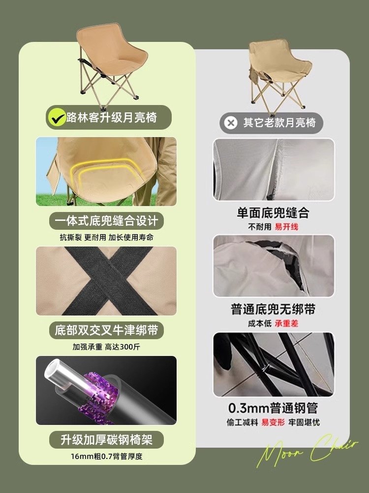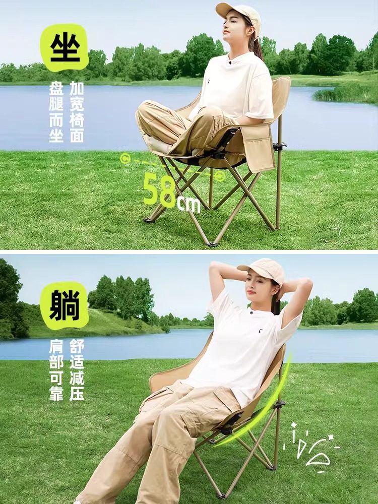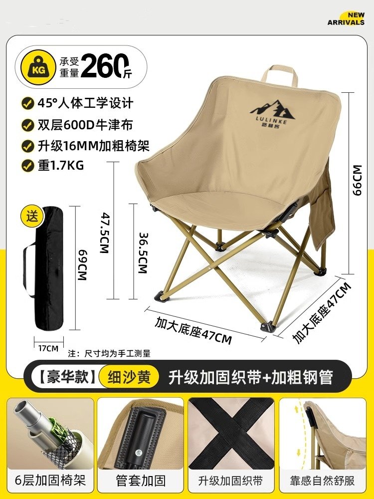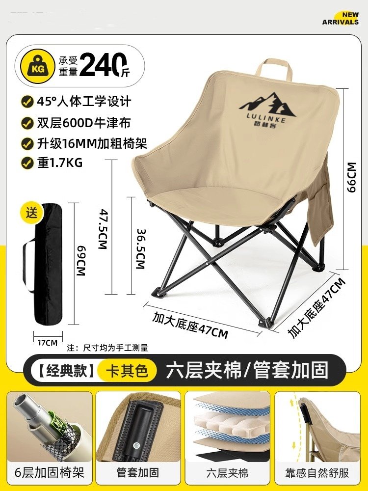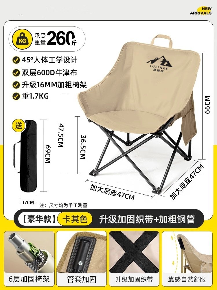 Lulinker moon chair, camping chair, outdoor folding chair, portable deck chair, fishing bench, beach chair, picnic table chair