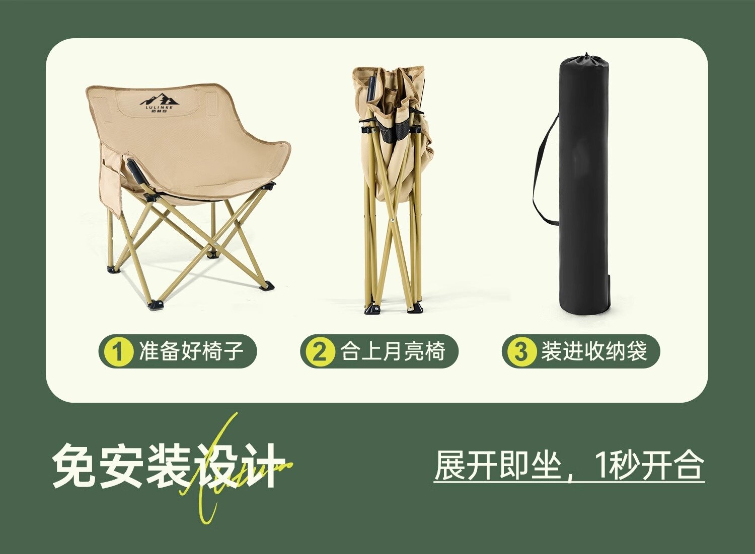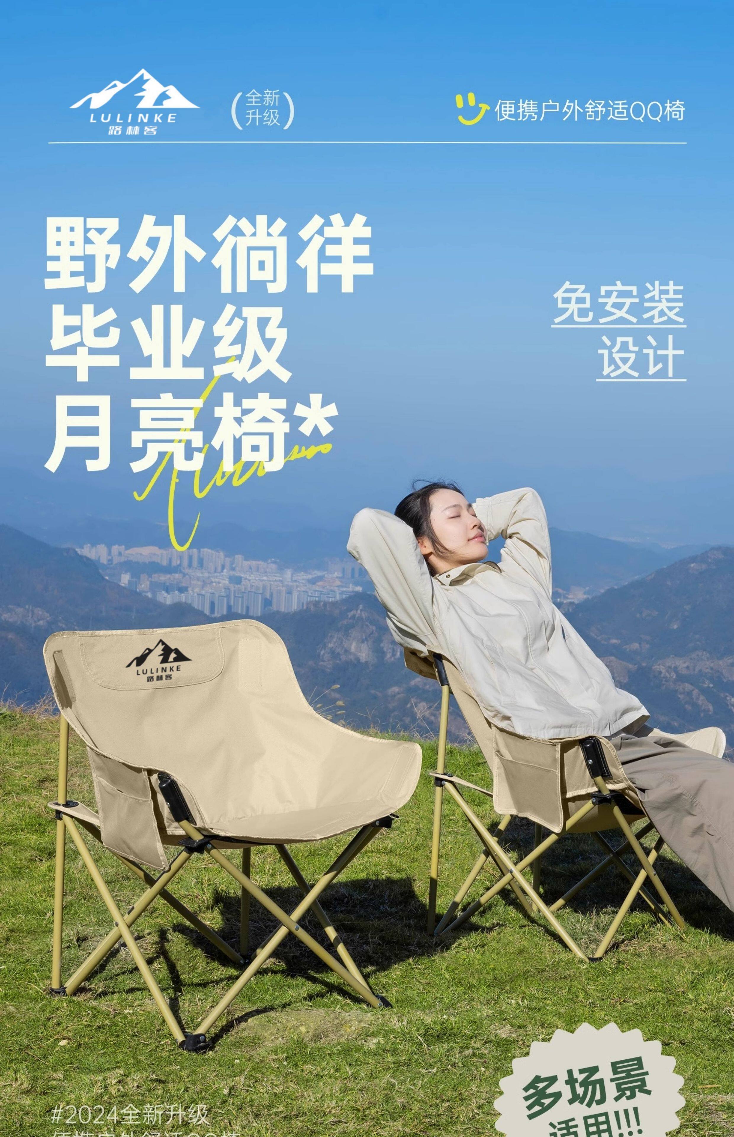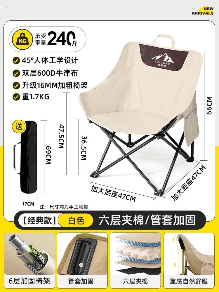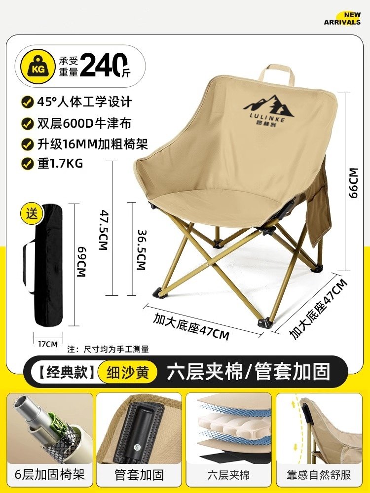 Lulinker moon chair, camping chair, outdoor folding chair, portable deck chair, fishing bench, beach chair, picnic table chair