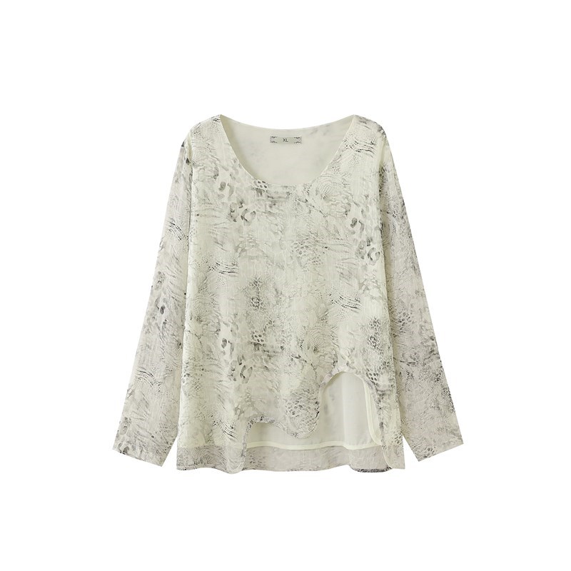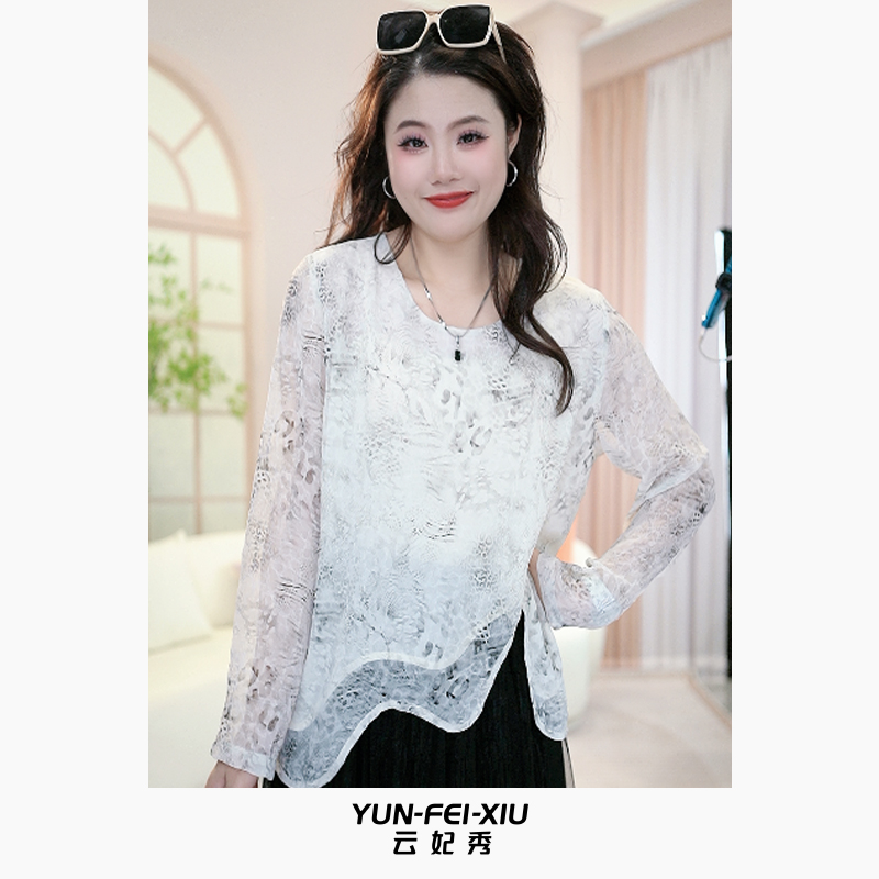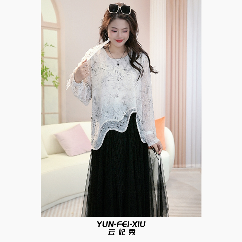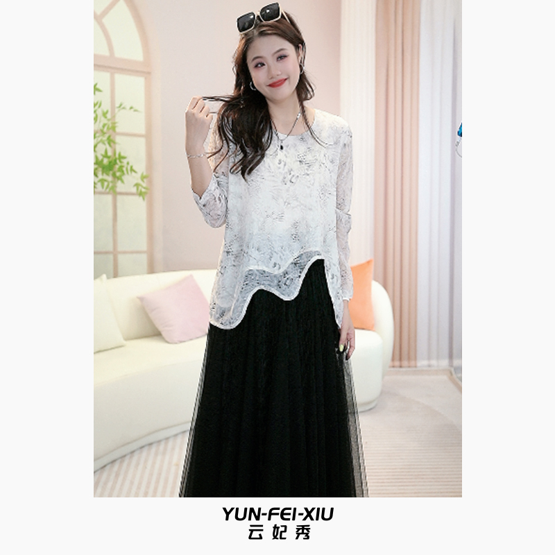 Yun Fei Xiu plus size women's T-shirt is fashionable and casual, loose and thin, slightly chubby, versatile, lace, simple top, summer