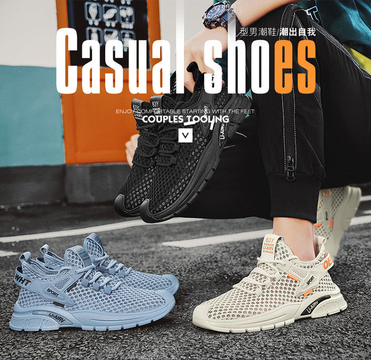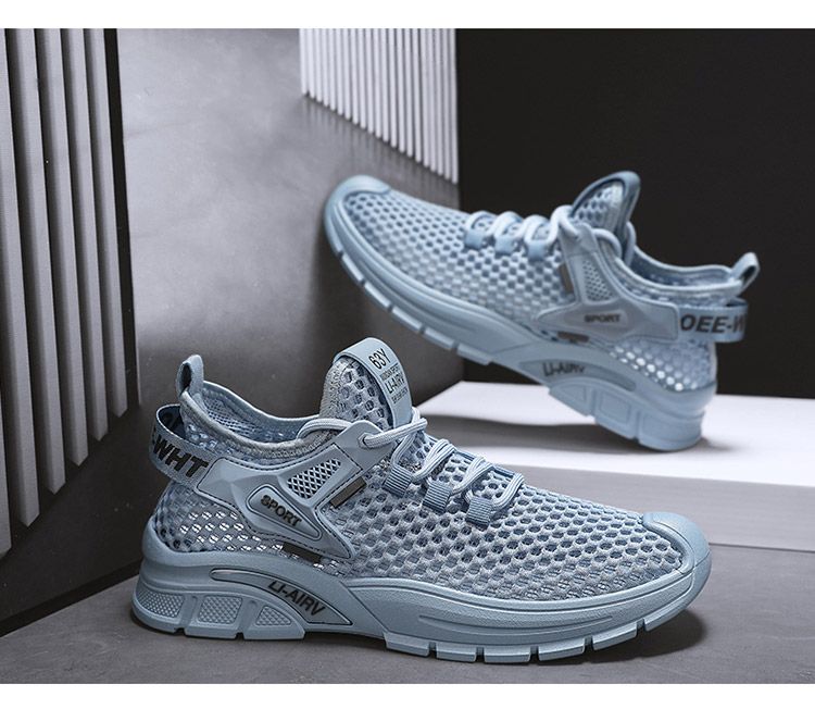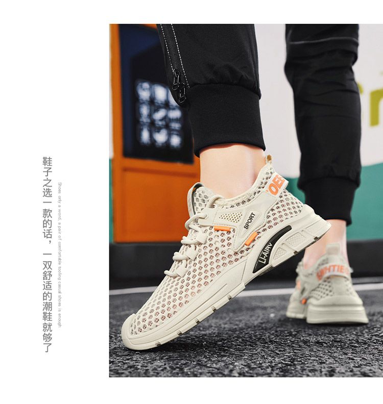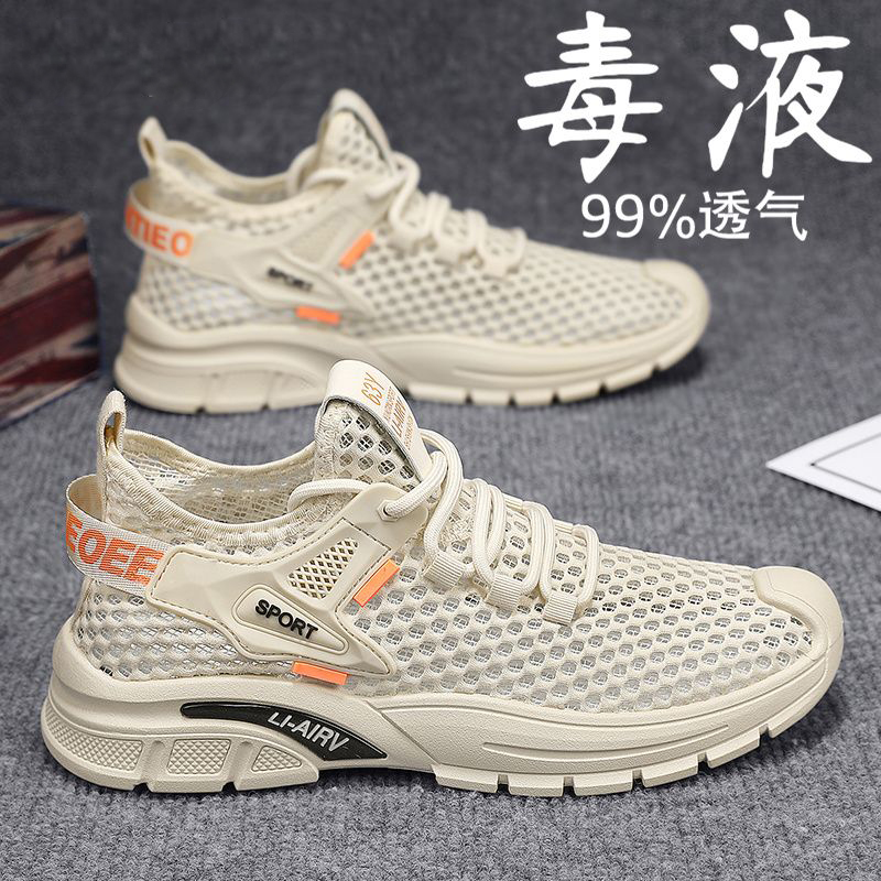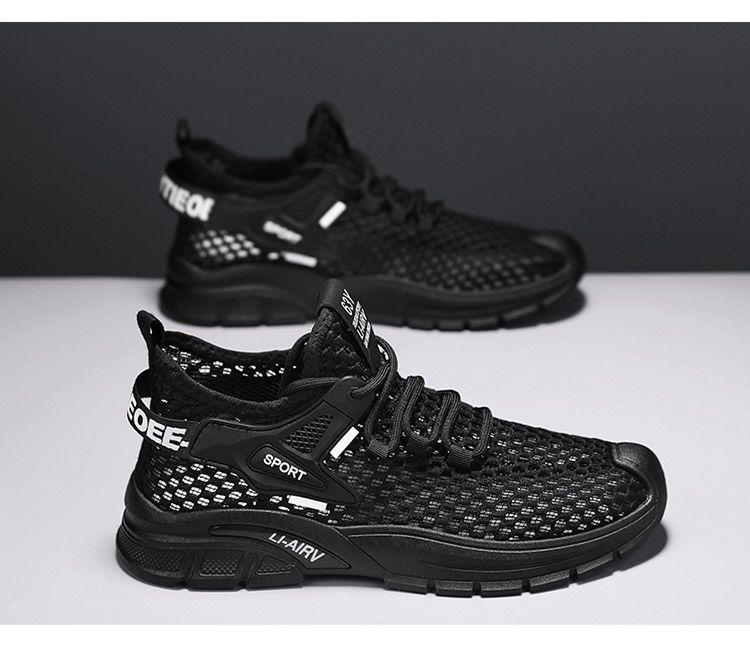 Broken code men's shoes, breathable hollow anti-odor sports casual mesh shoes in summer, outdoor anti-slip wear-resistant lightweight mesh shoes